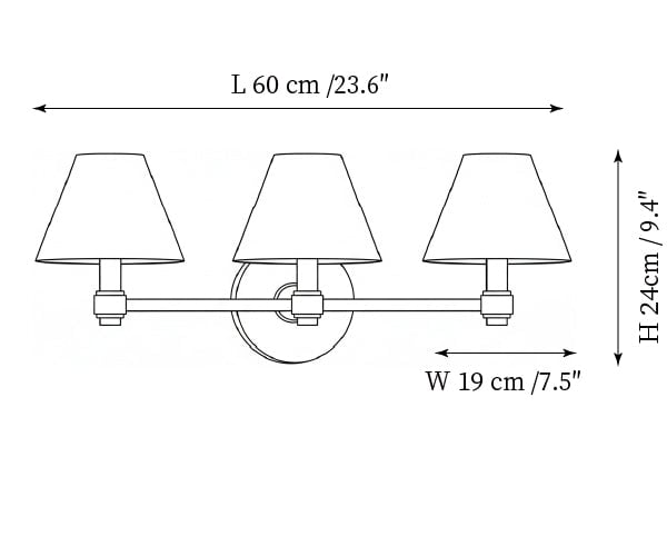 - 3-Lights Size: L 60cm x W 19cm x H 24cm / L 23.6″ x W 7.5″ x H 9.4″