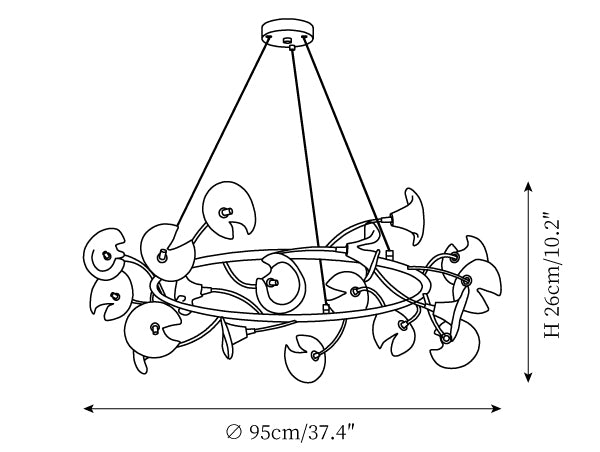 - 12-Lights Size: Dia 73cm x H 26cm / ∅ 28.7″ x H 10.2"