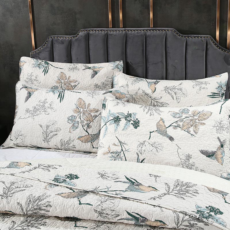 Cheerful Bird Cotton Quilt with Pillowcase