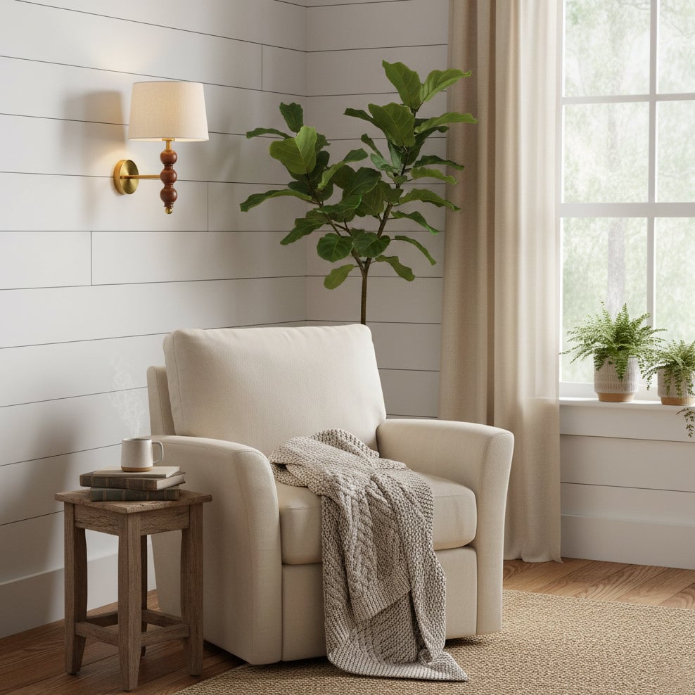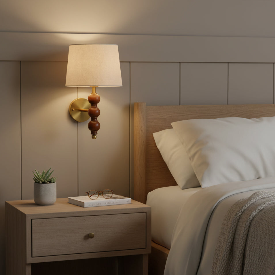 The Chelsom Wall Lamp from Mooijane blends industrial-rustic charm with modern elegance. Crafted from durable metal and wood, with a linen fabric accent, it provides warm, inviting illumination while adding texture, style, and personality to living rooms, bedrooms, or hallways.