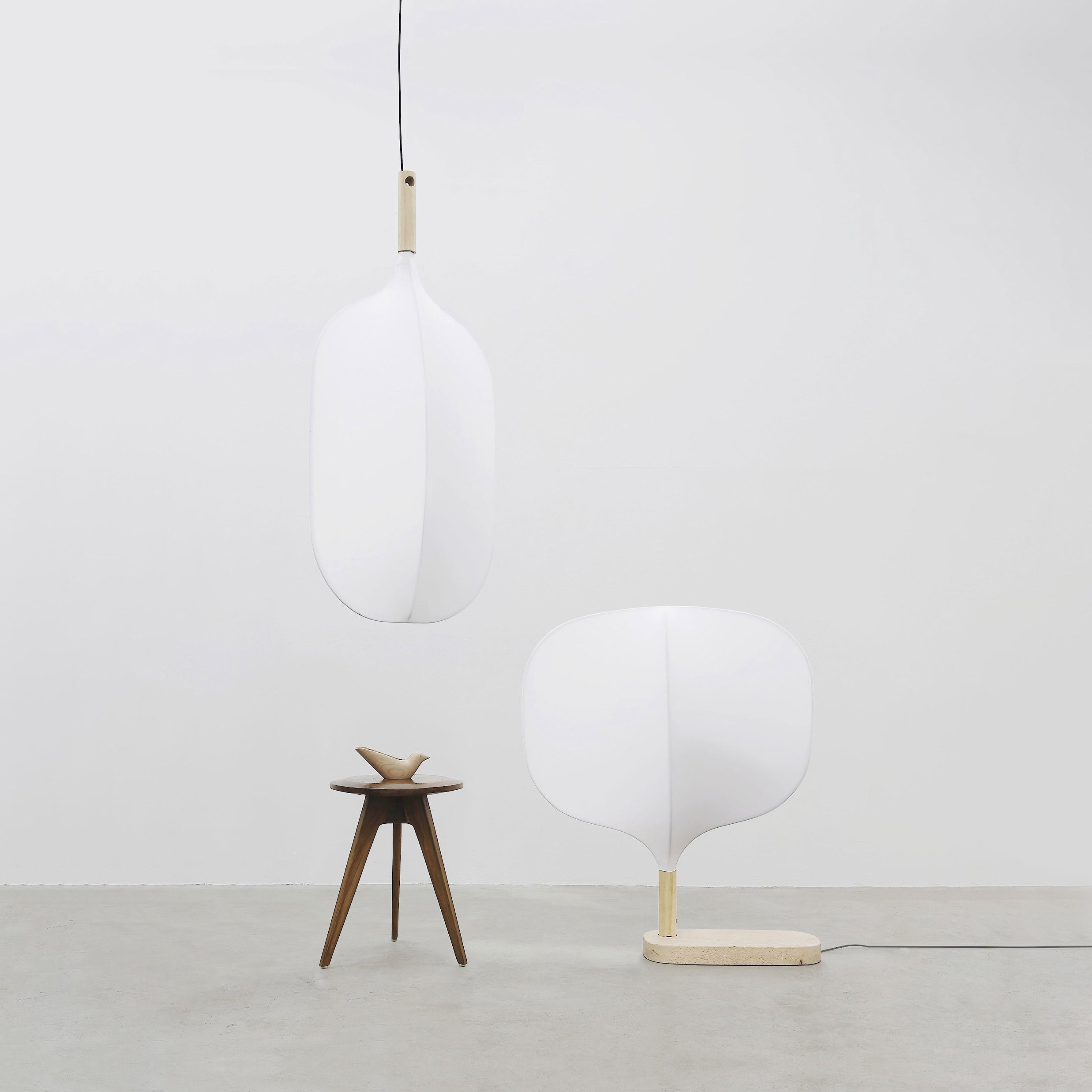 The Chimney Lighting is a warm and ambient light that enhances its beauty with the help of Lycra. Inspired by the chimney and its color and soft feeling, the wooden handle features the form of a simplified chimney. The hole on the Handle has its reasons, for example, it can be hung on a hook or at the end of the string from the ceiling. A leather strap on the back face of the lighting adds a more analog feeling to it. A neat style to integrate into a roomy space.
