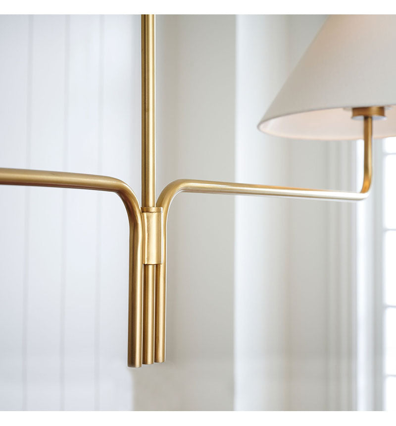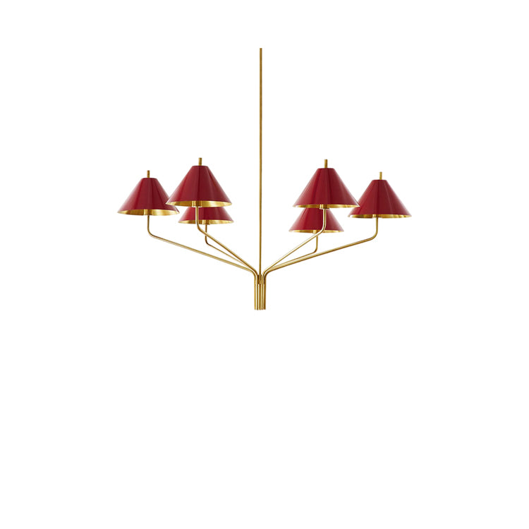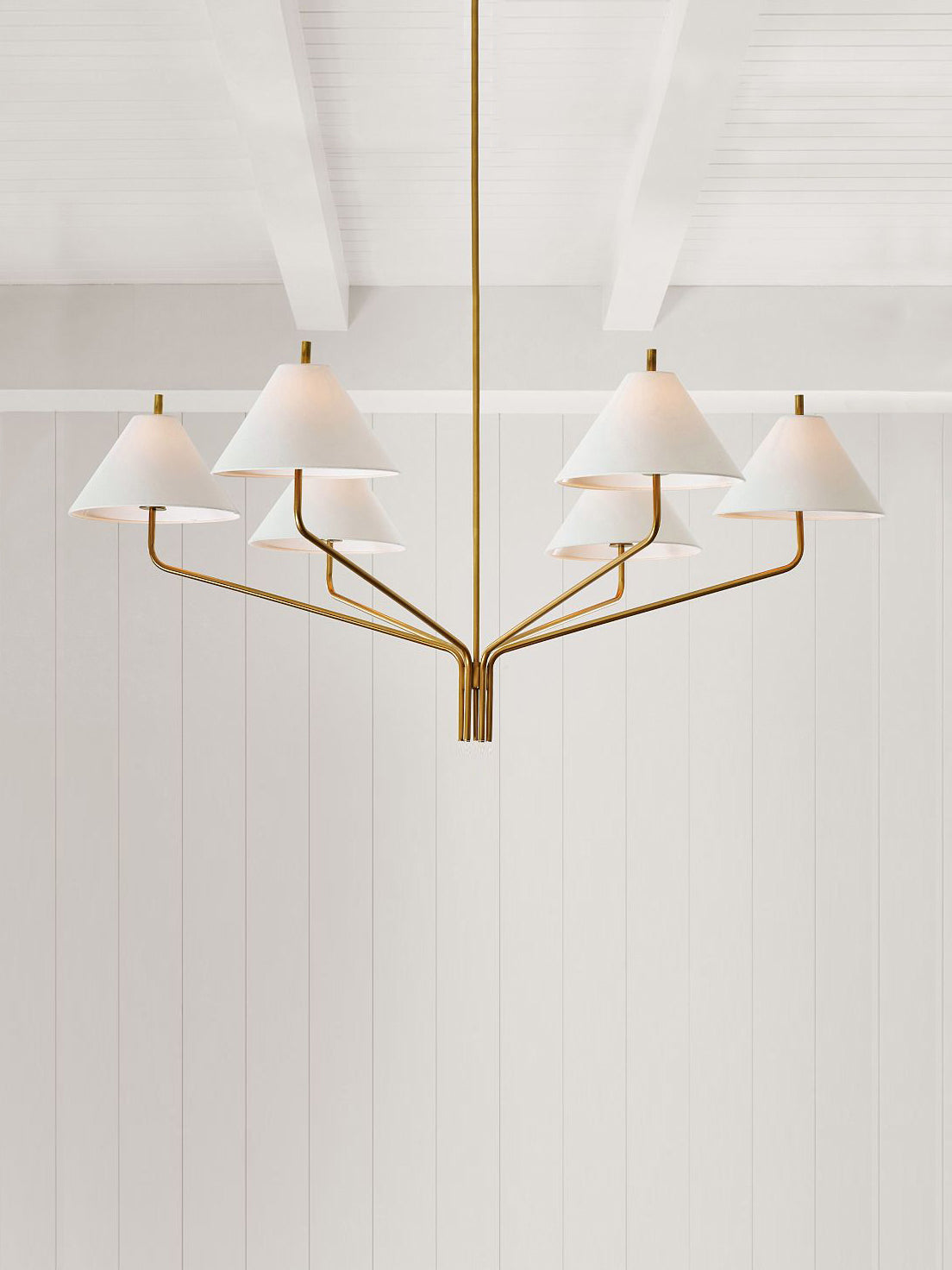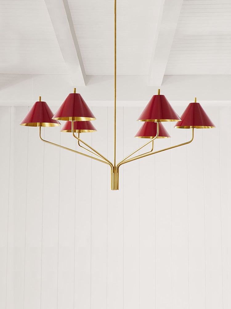 The Chris Loves Julia Edie Chandelier is a stunning blend of modern elegance and timeless design. Its sleek branching structure, paired with soft conical shades, casts a warm, inviting glow, making it the perfect centerpiece for any contemporary dining room or living space. Crafted with a sophisticated gold finish, this chandelier adds a touch of luxury to your home, effortlessly elevating the ambiance of any room.