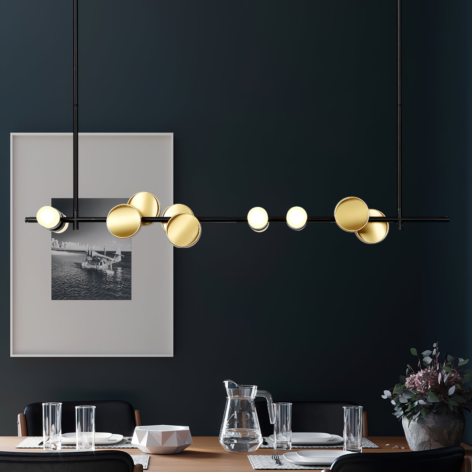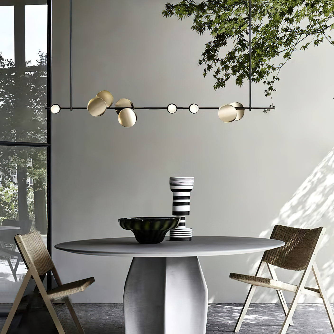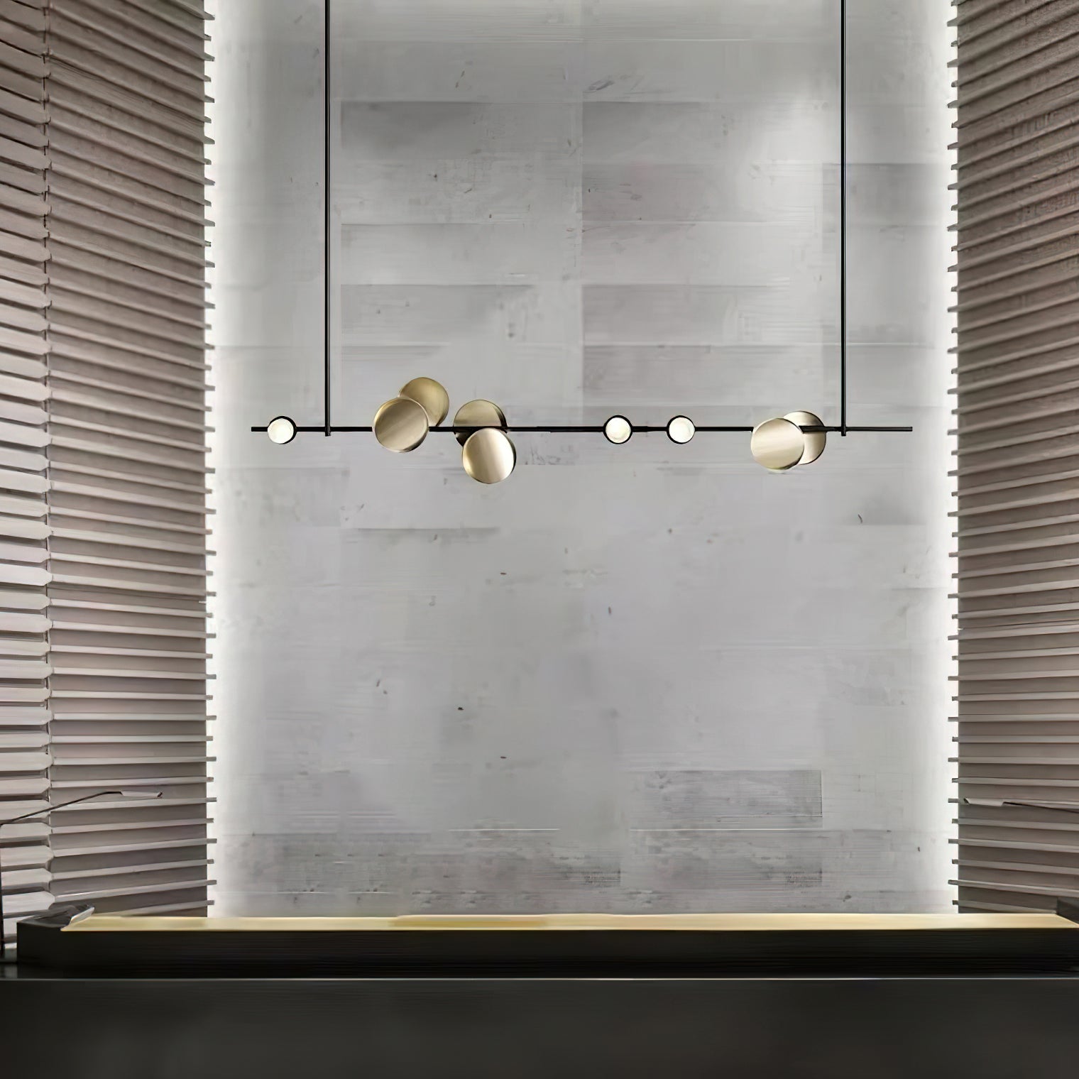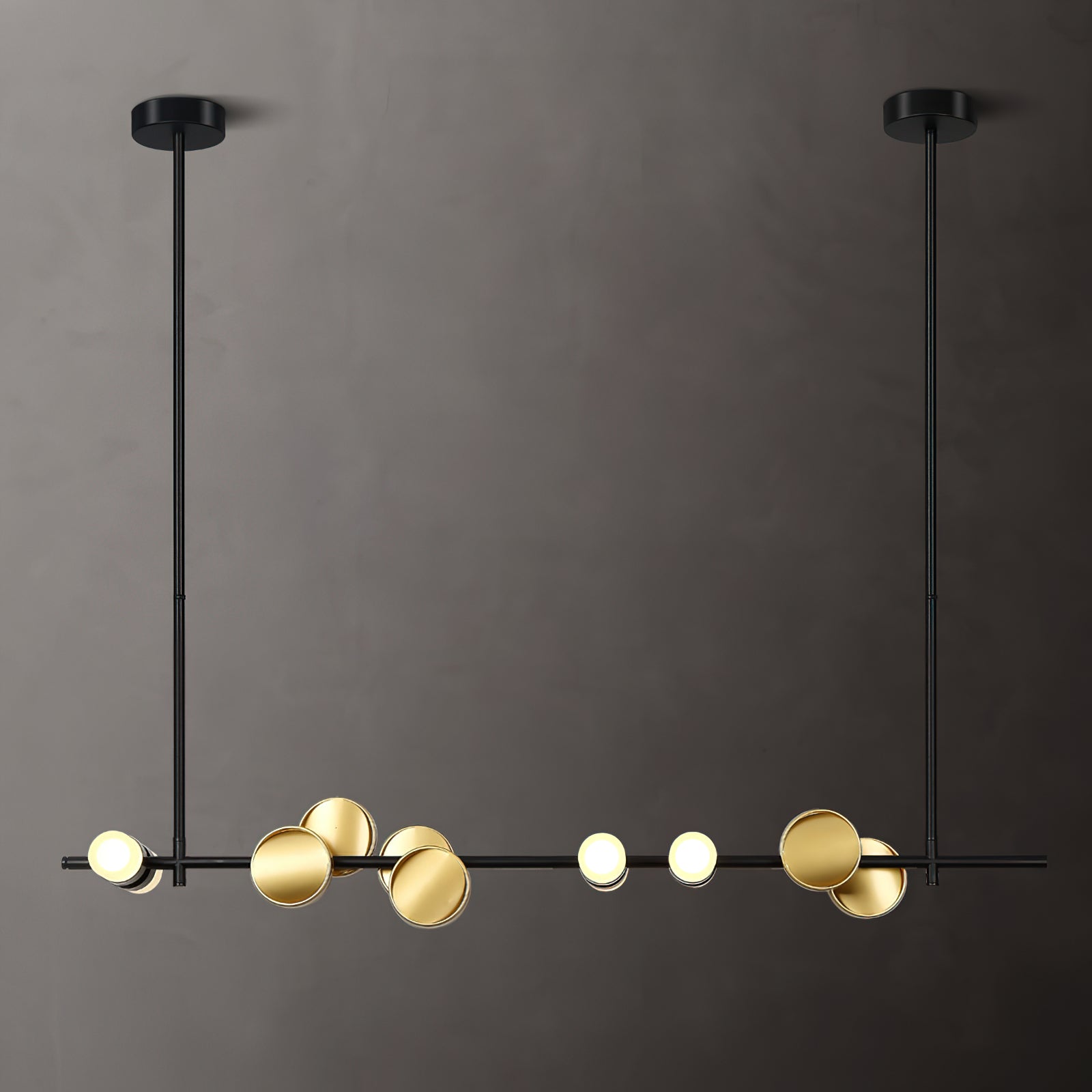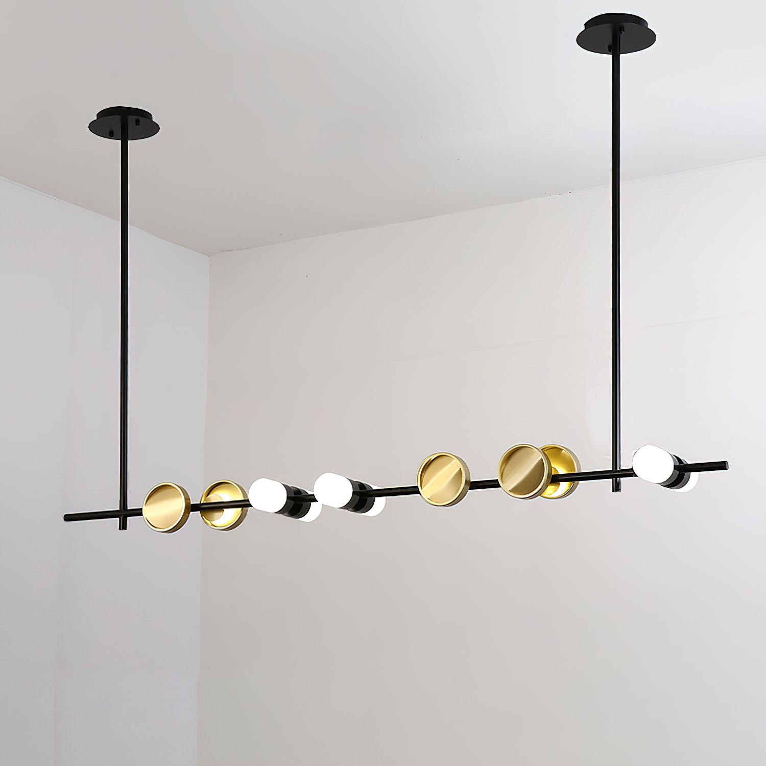 The Cilon Disc Chandelier is a sophisticated design that features a sleek combination of cylinders to create a visually stunning and versatile lighting feature. When installed in pairs, the lamp is both functional and aesthetic, enhancing any room with its unique reflective properties.