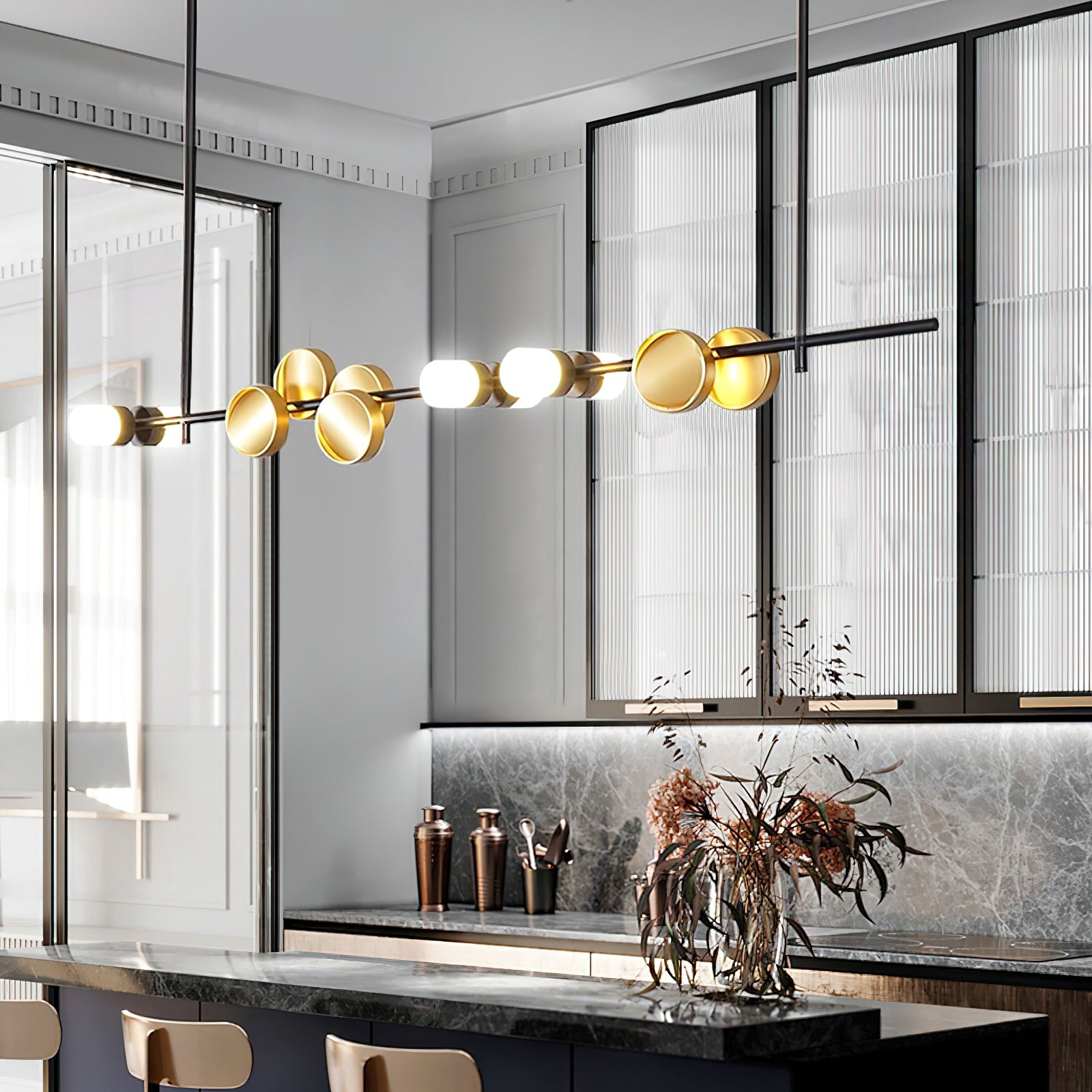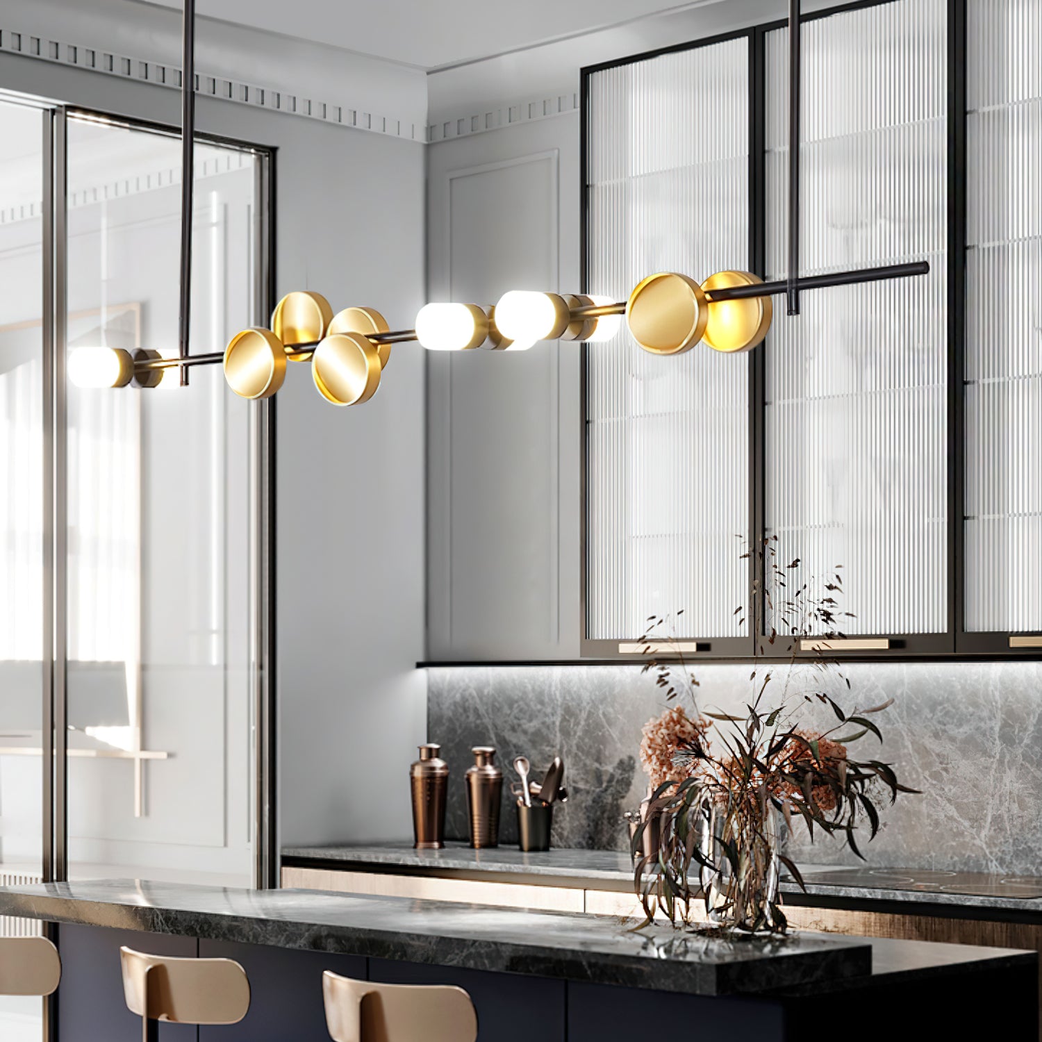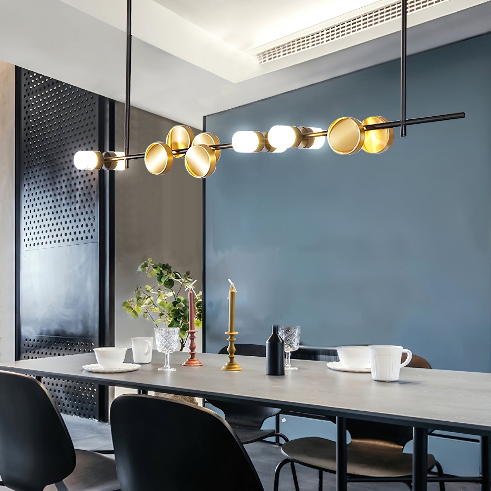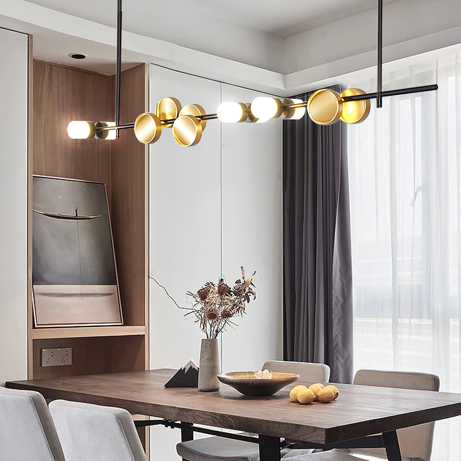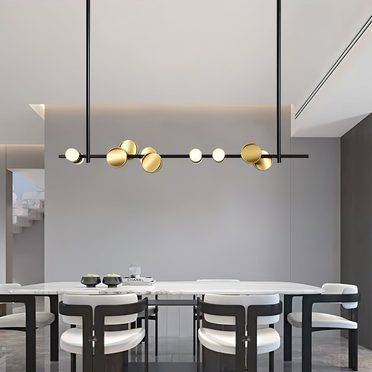 The Cilon Disc Chandelier is a sophisticated design that features a sleek combination of cylinders to create a visually stunning and versatile lighting feature. When installed in pairs, the lamp is both functional and aesthetic, enhancing any room with its unique reflective properties.
