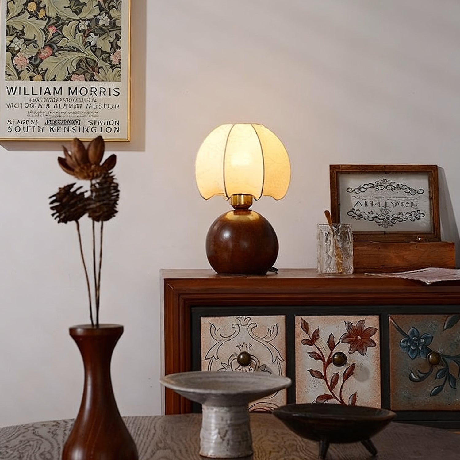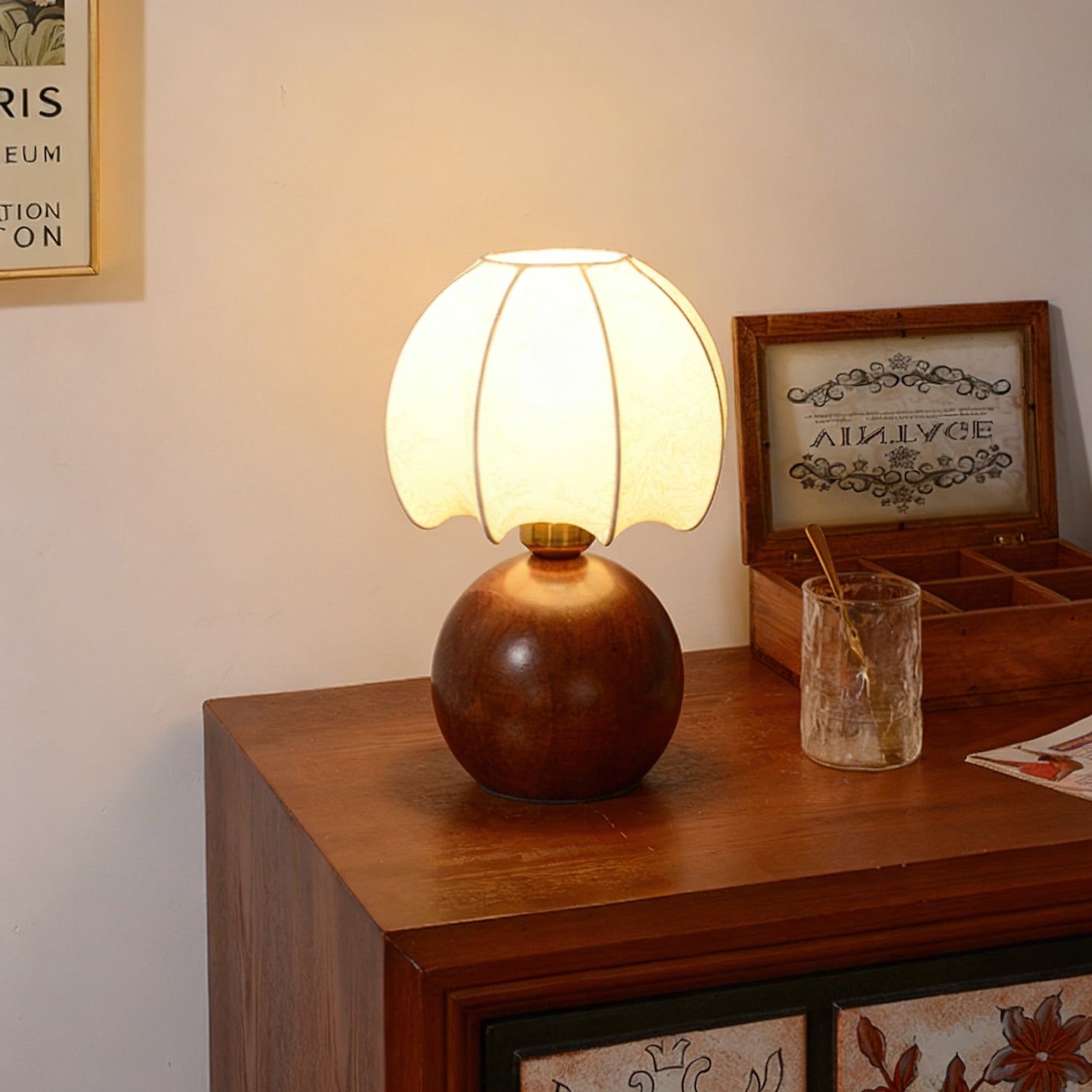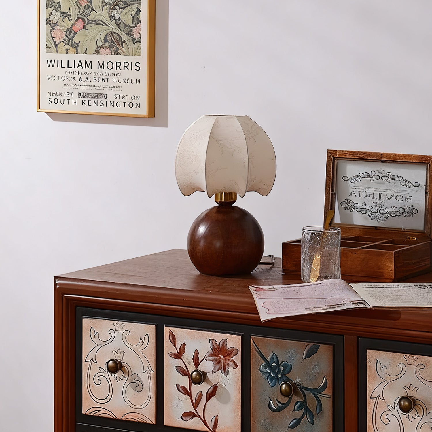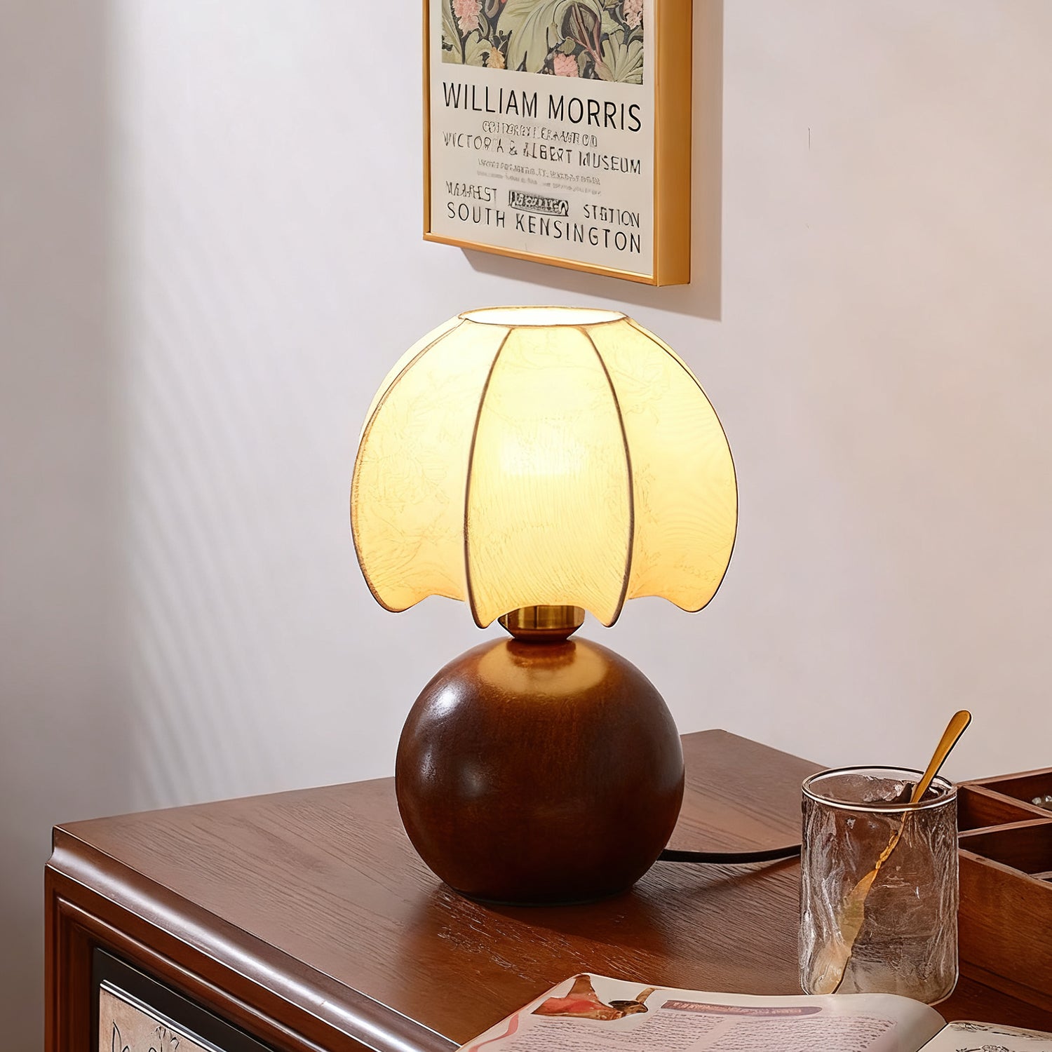 The Clancy Table Lamp from Mooijane combines timeless elegance with refined craftsmanship. Its finely crafted wooden base supports a peony-inspired lampshade that casts a soft, inviting glow. Perfect for creating a warm and serene ambiance, this lamp enhances any bedroom, living room, or study with understated sophistication.