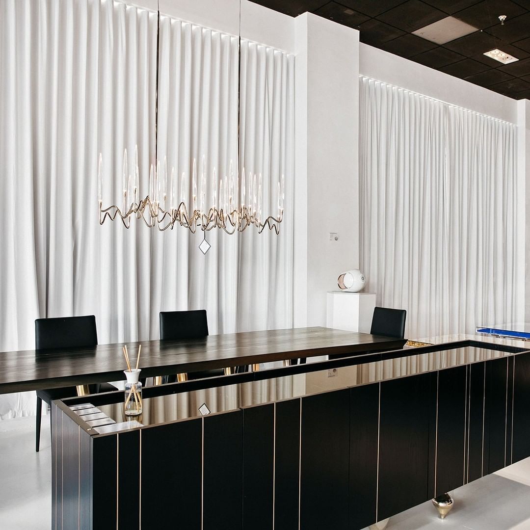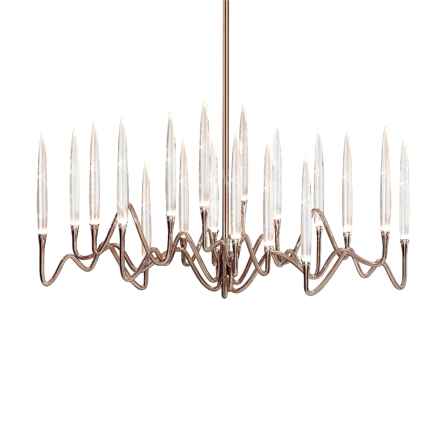 Inspired by Arabic calligraphic art and the icon of the classical candelabrum is candles, a collection of lamps with a hand-forged brass structure and elegant “candles” crafted from the clearest solid crystal. The candles are illuminated using the latest LED technology, creating a sophisticated and romantic light.