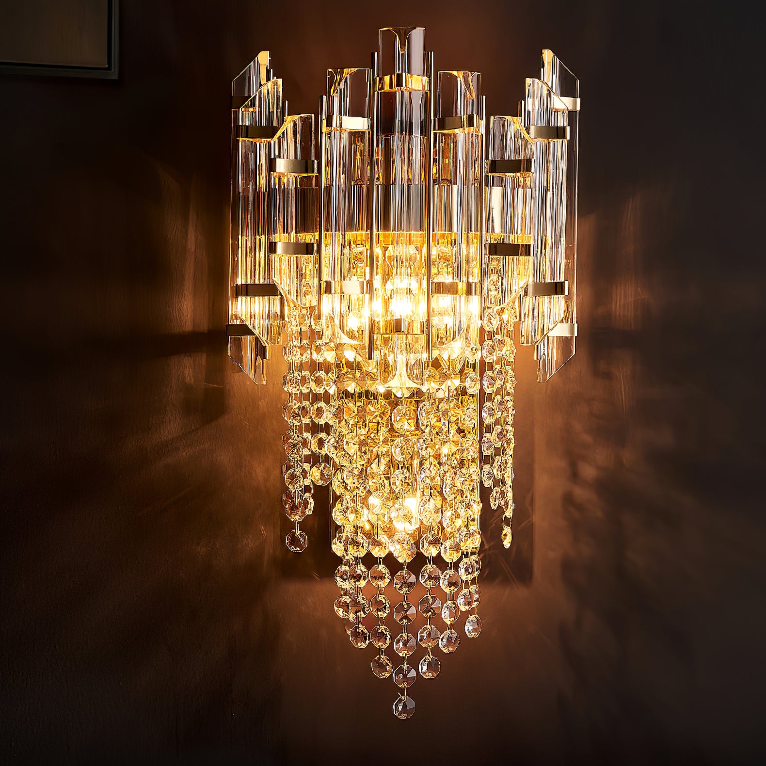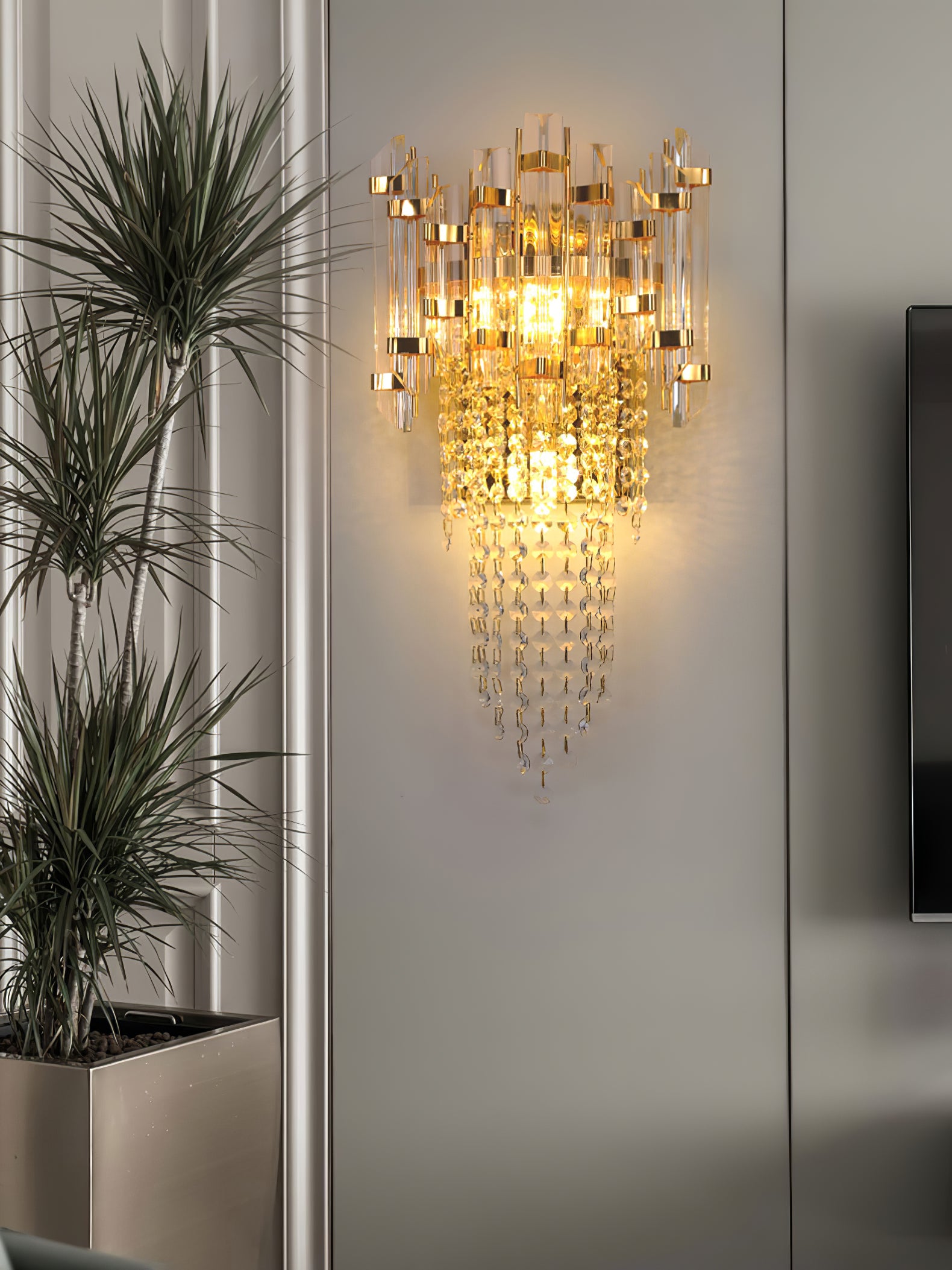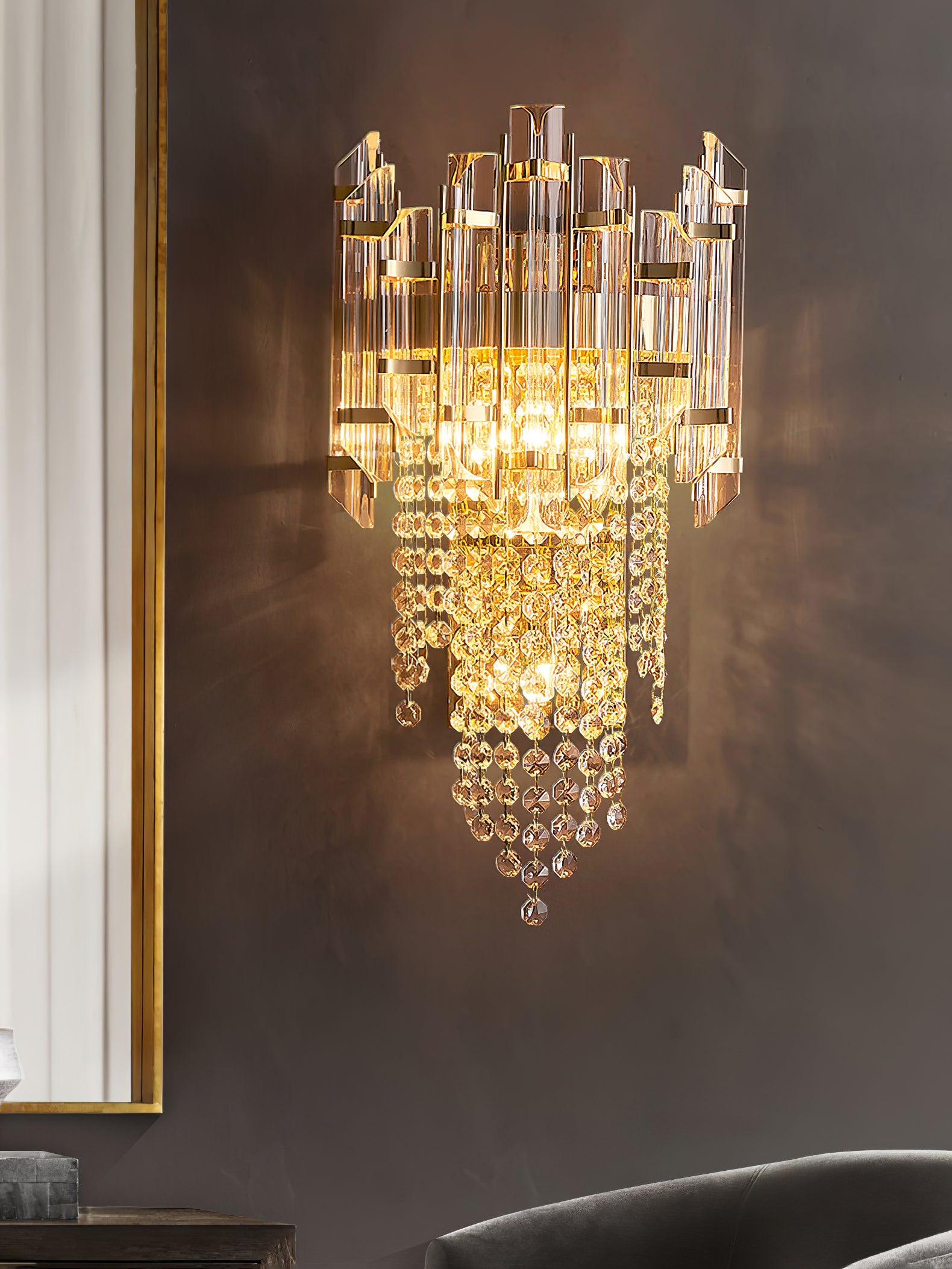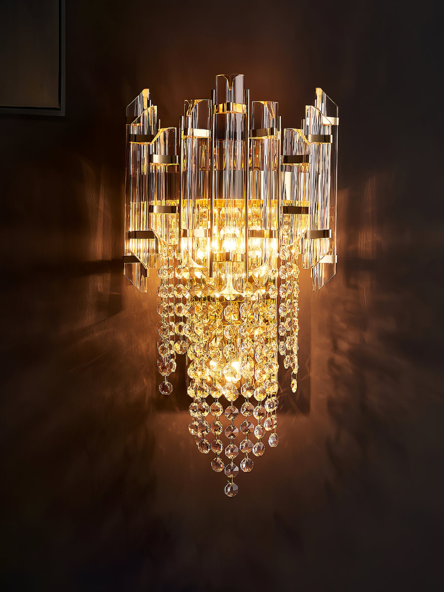 Illuminate your interior with this modern wall lamp. This draws inspiration from the decorative lighting from the early 20th century. This striking design is sleek yet exquisitely detailed. The precise dimensions and angles of each piece diffuse and reflect light around the room creating a welcoming ambiance. to create a cool vintage vibe that has endless designer appeal.