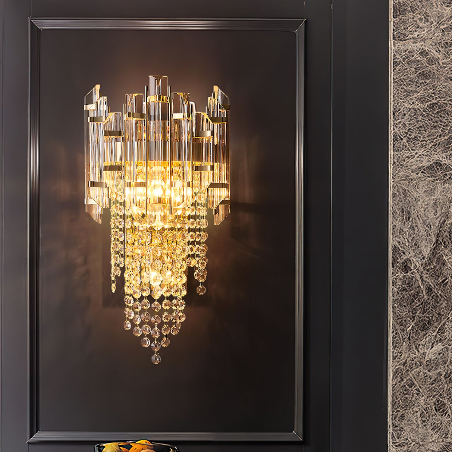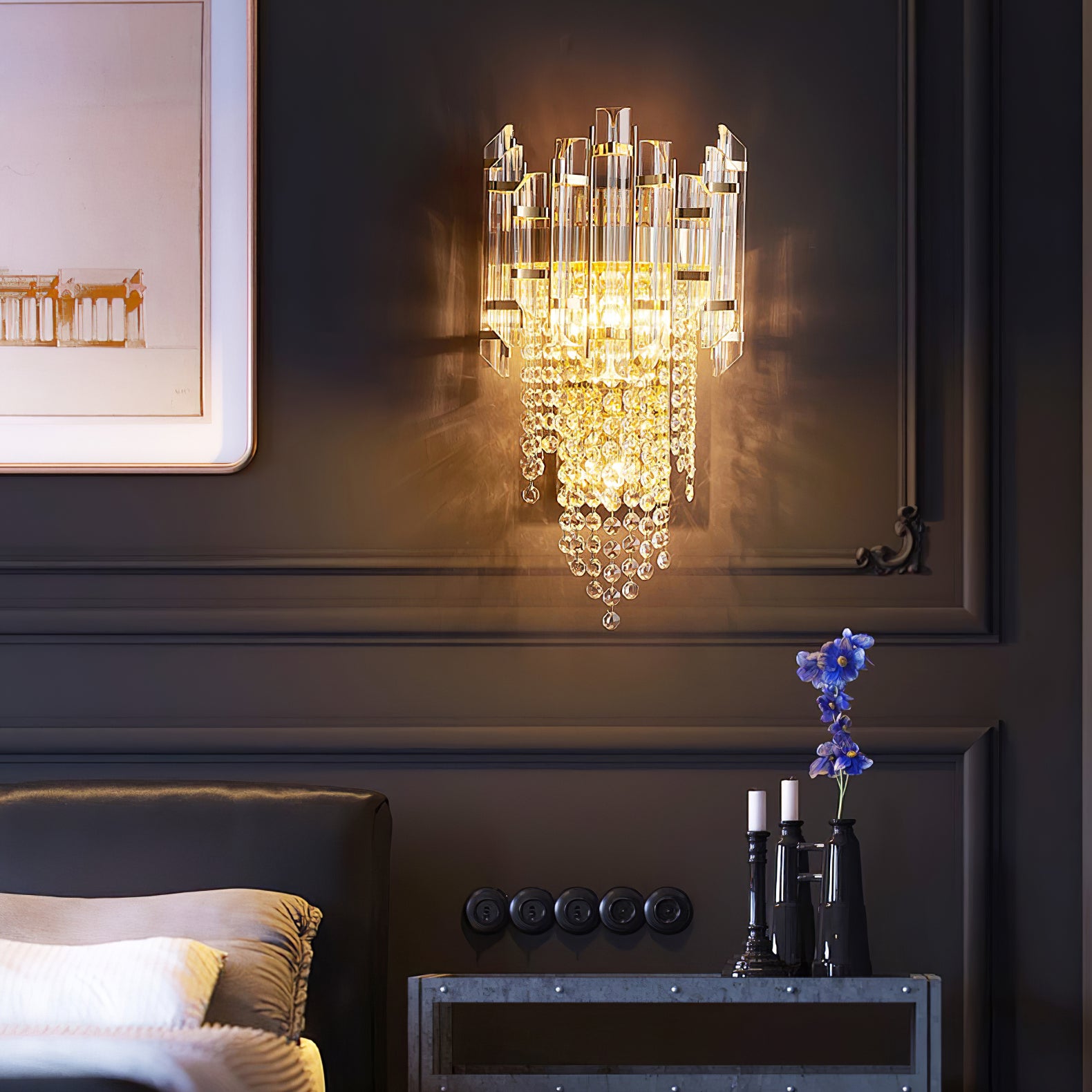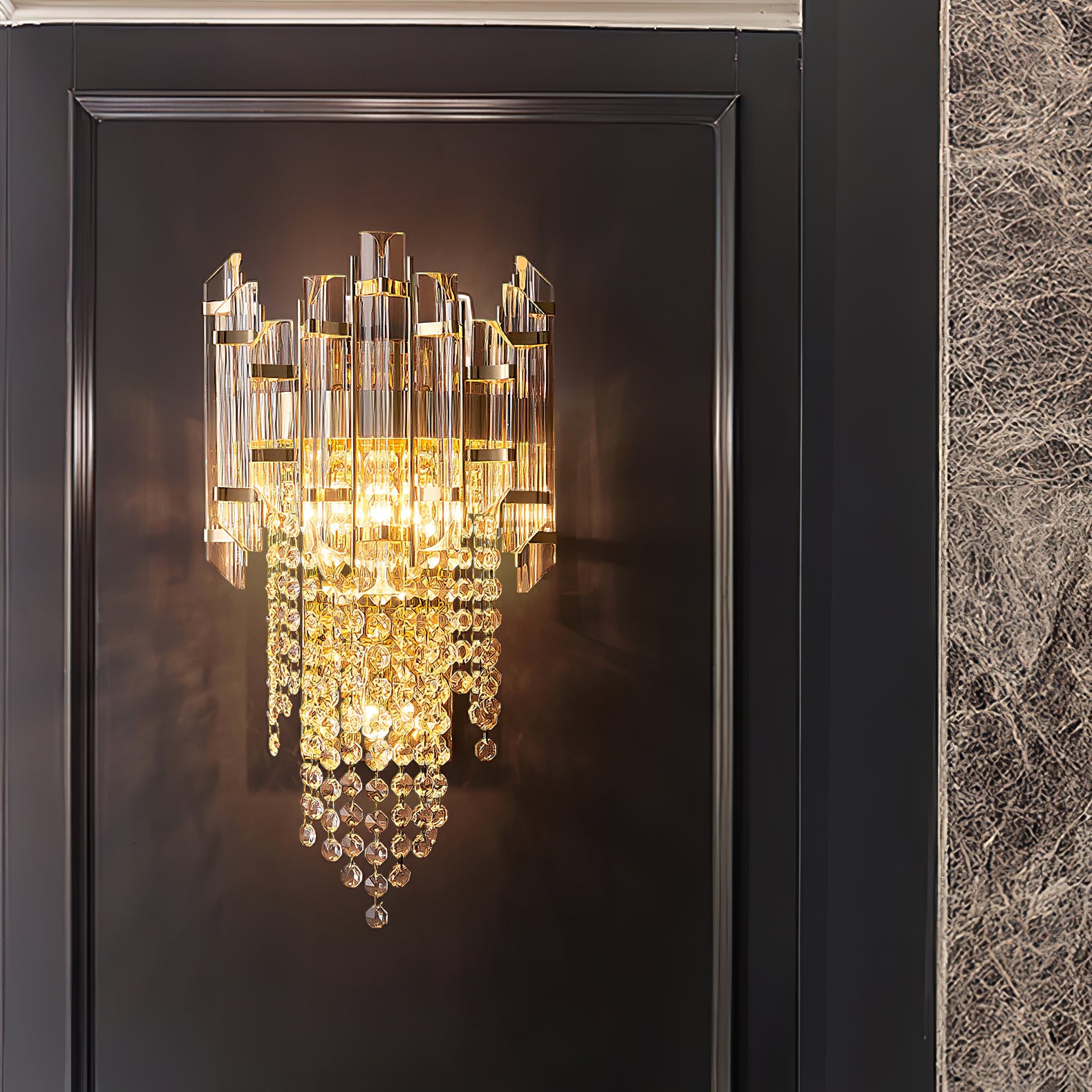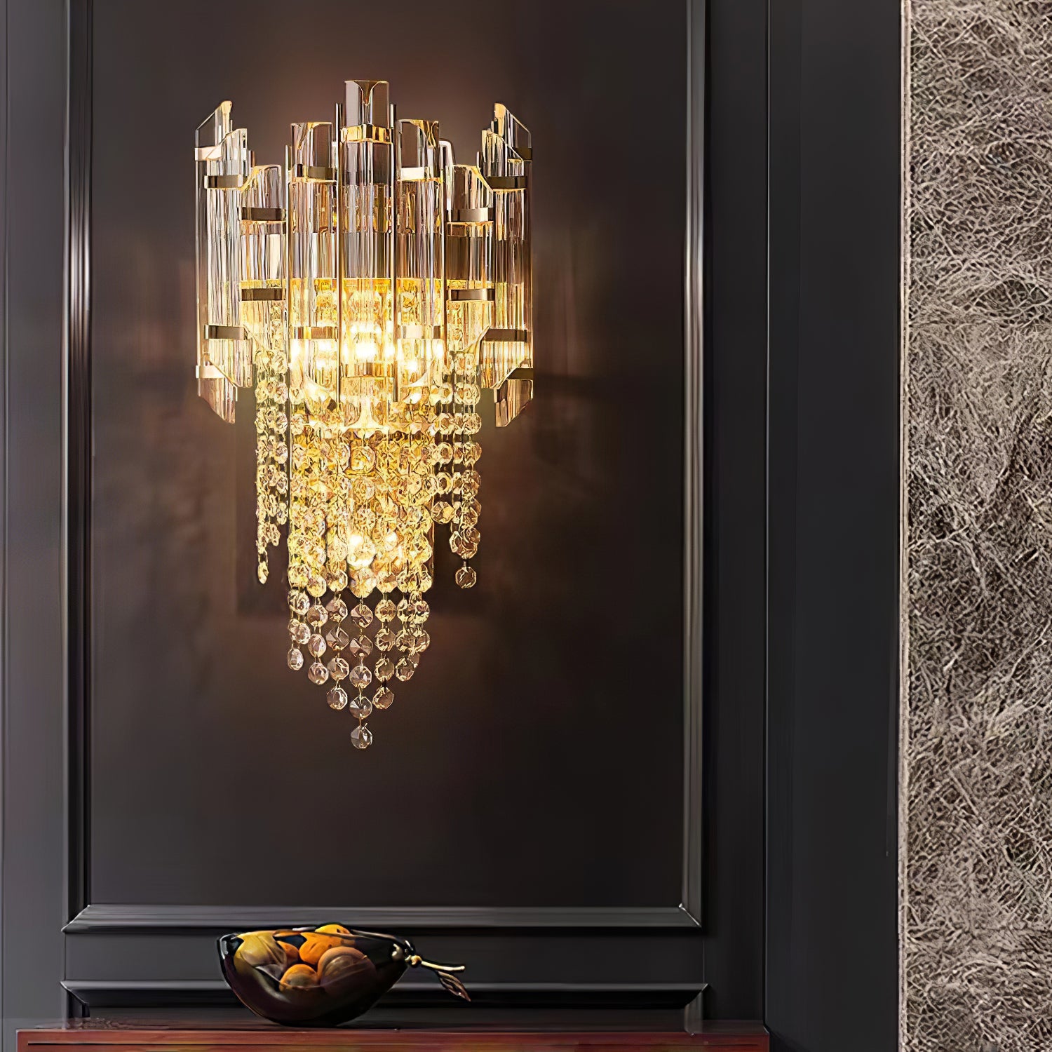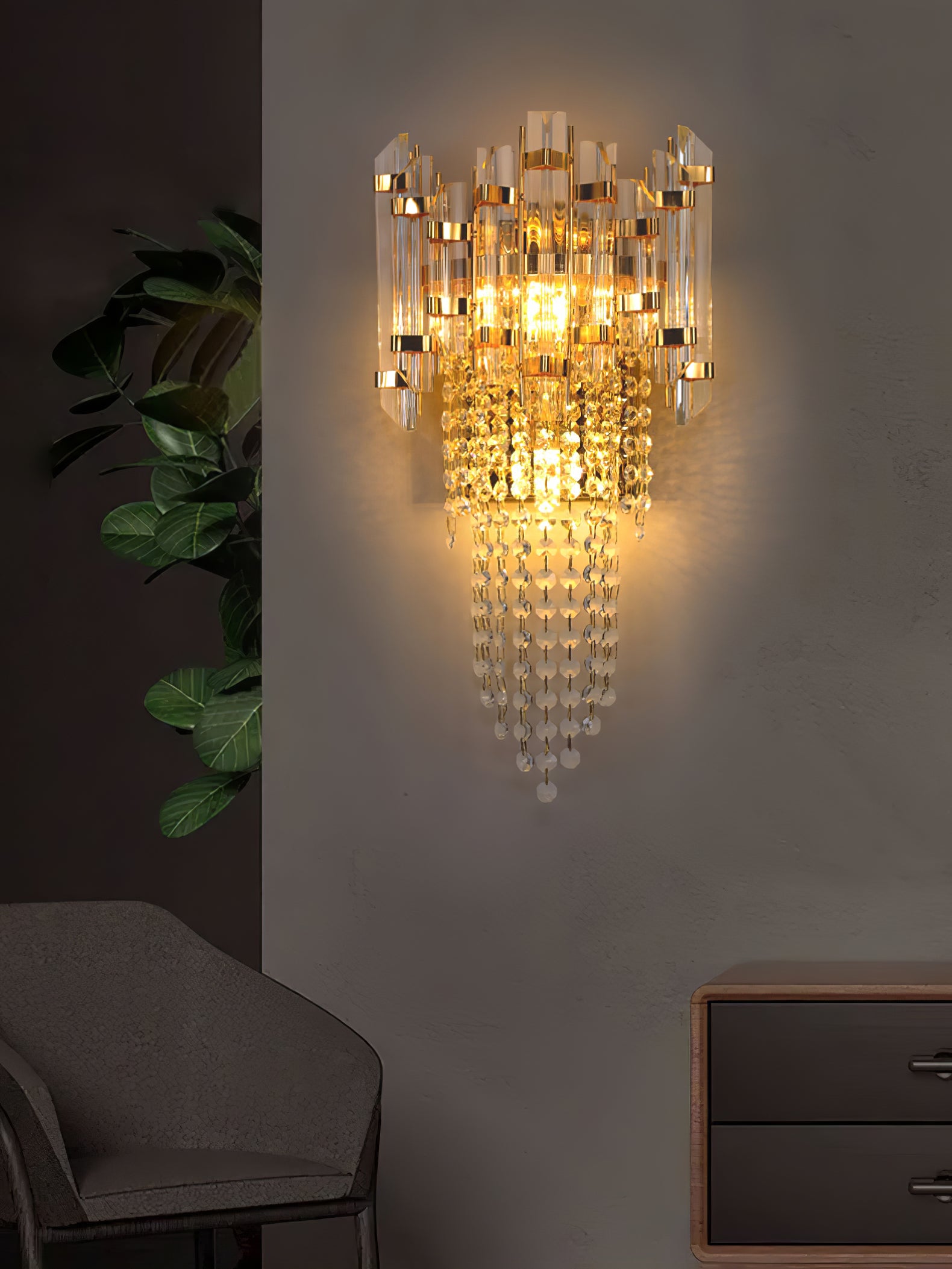 Illuminate your interior with this modern wall lamp. This draws inspiration from the decorative lighting from the early 20th century. This striking design is sleek yet exquisitely detailed. The precise dimensions and angles of each piece diffuse and reflect light around the room creating a welcoming ambiance. to create a cool vintage vibe that has endless designer appeal.
