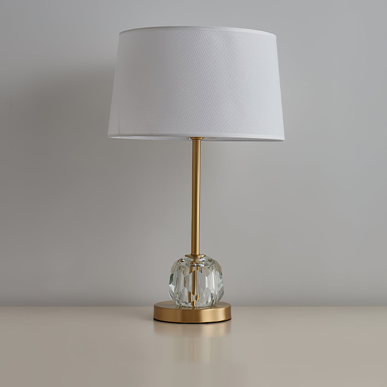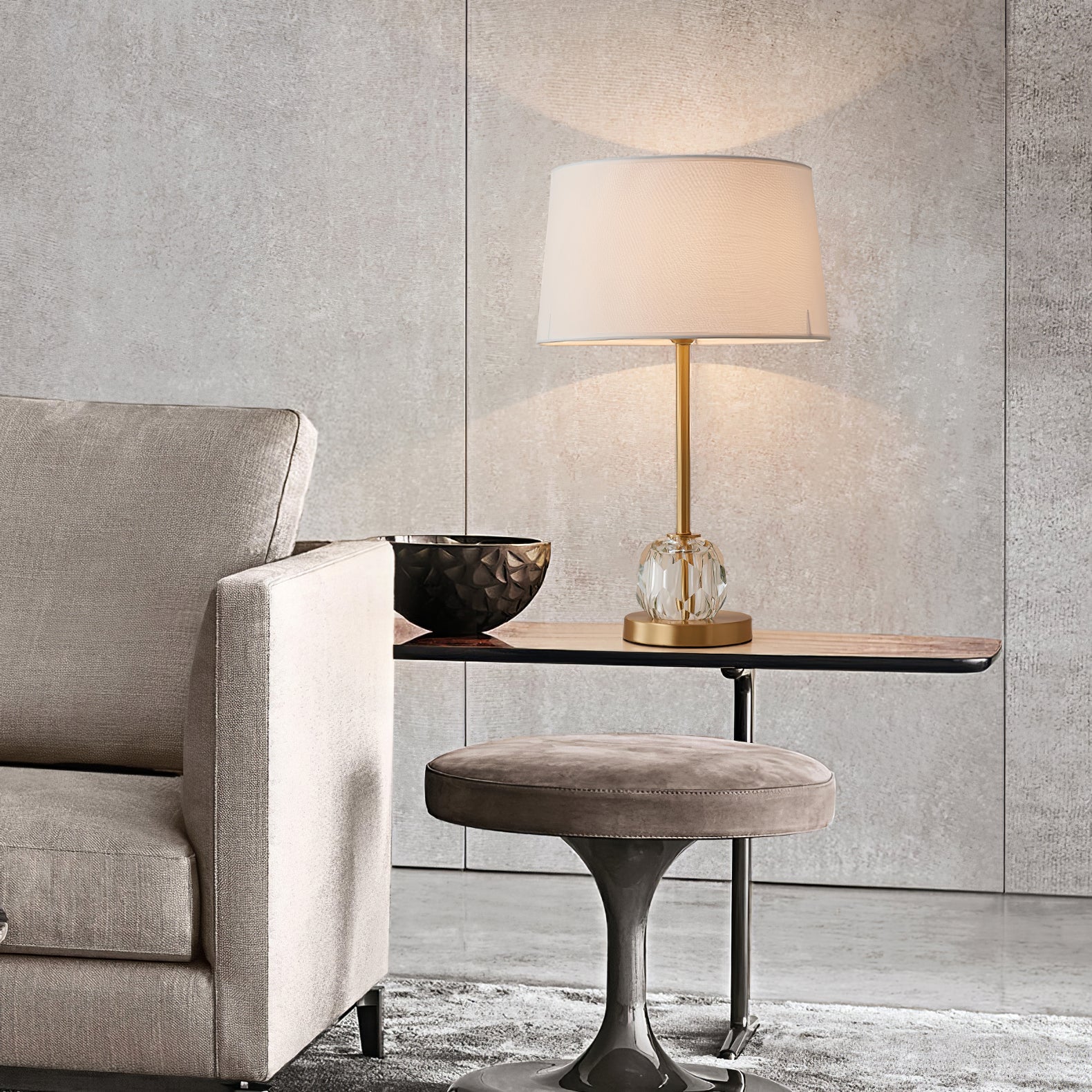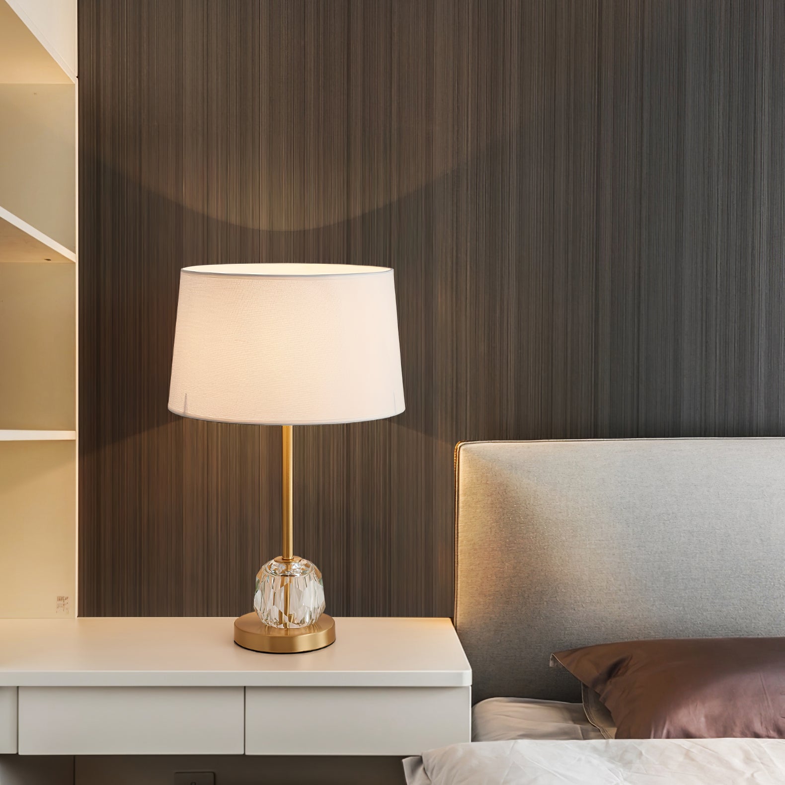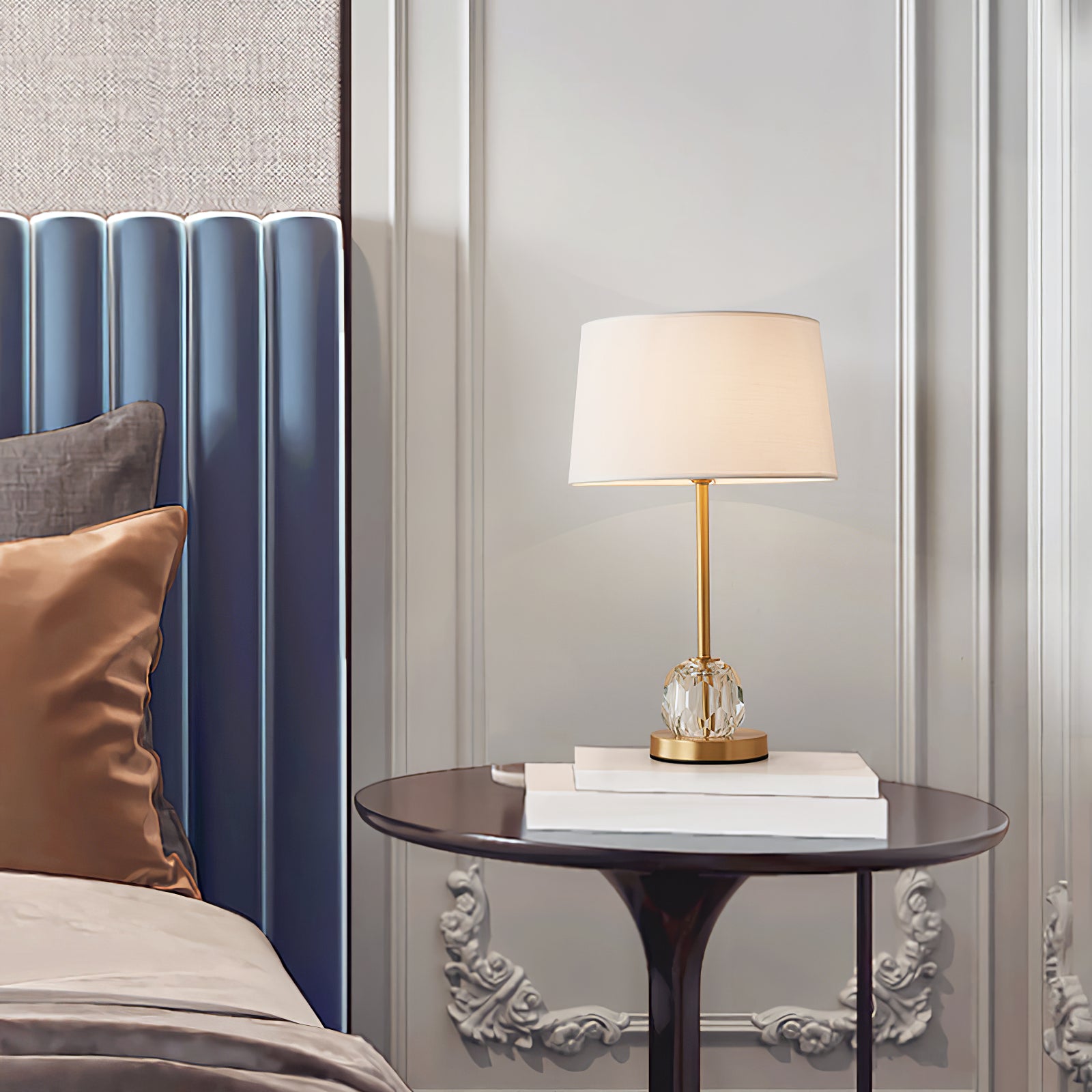 Square-type cotton shade is ultra-chic with a stunning crystal base and brass gold finish, This table lamp set works beautifully by the bedside on a nightstand, console table, in the home office, living room, or dining area.
