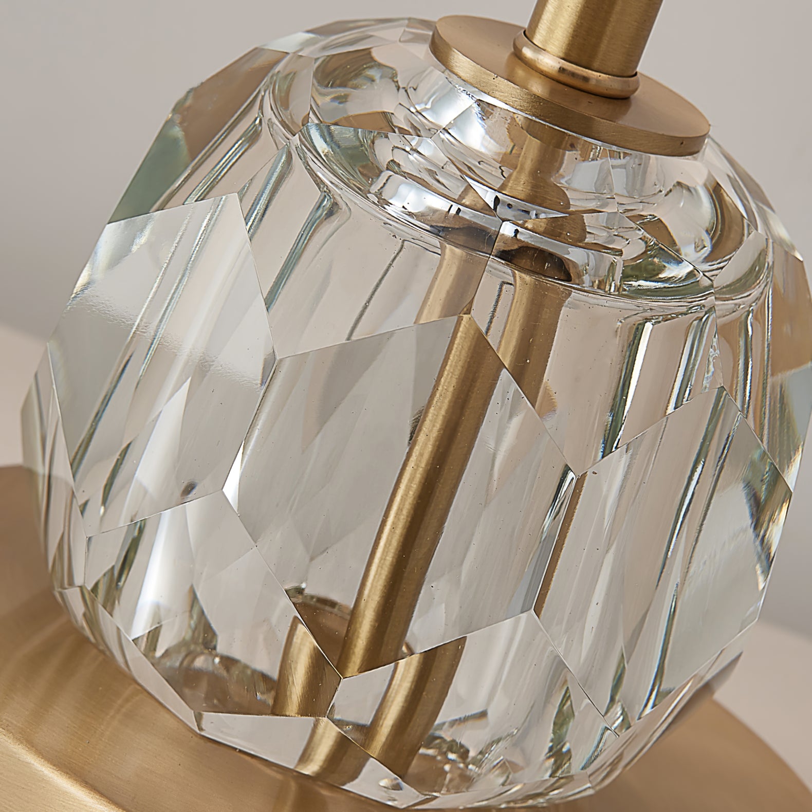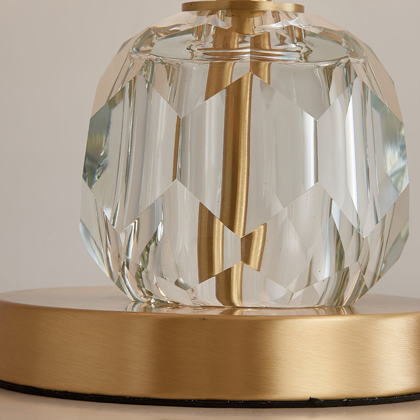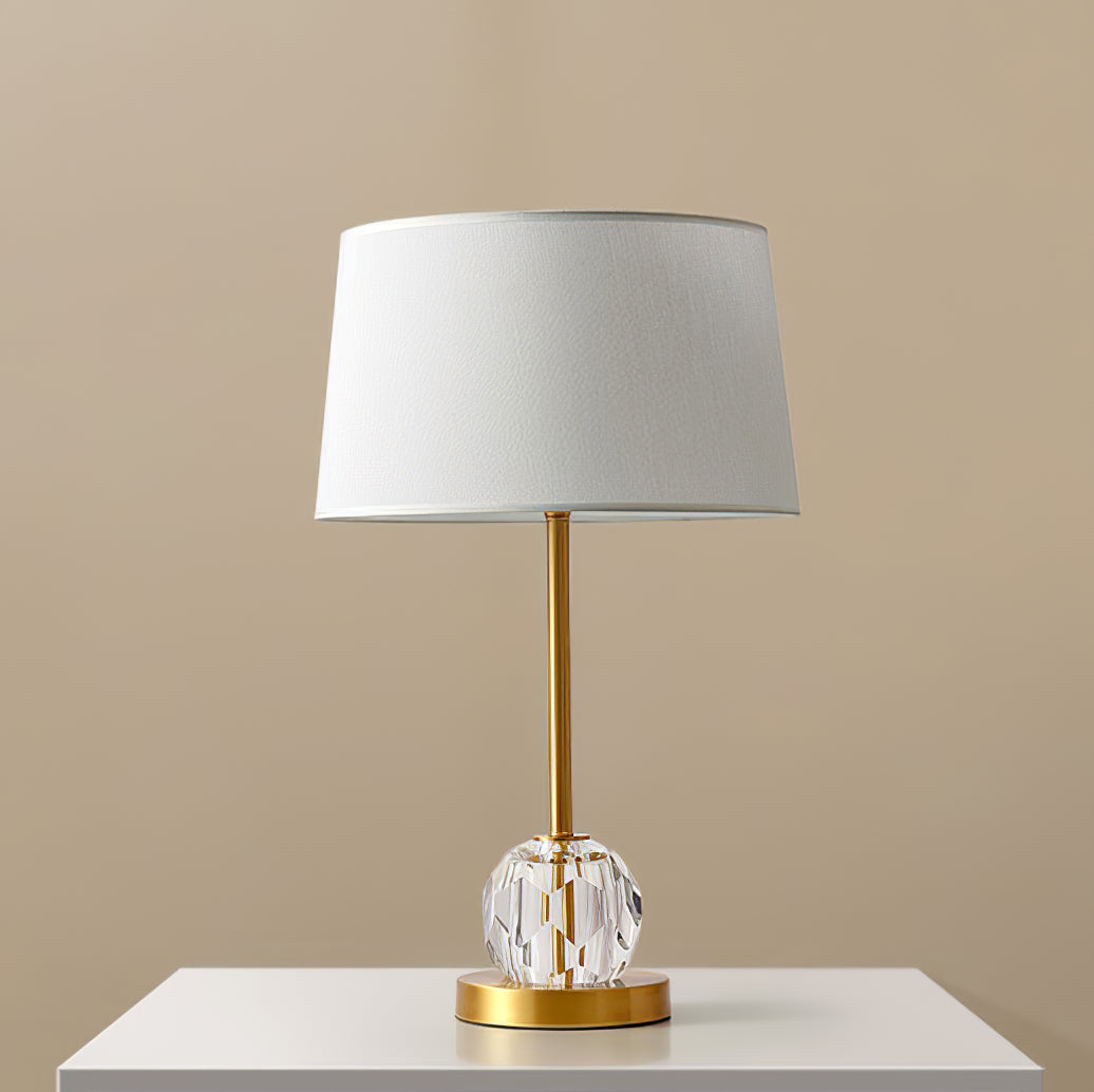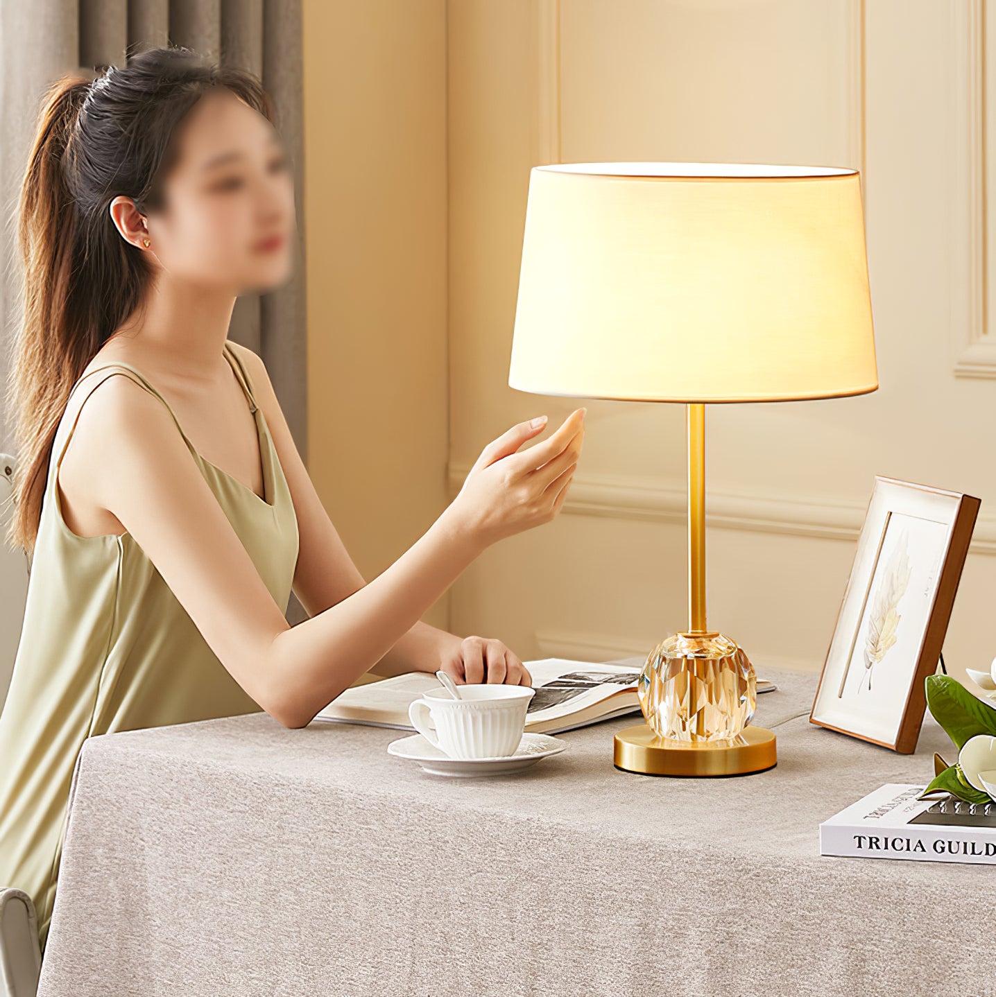 Square-type cotton shade is ultra-chic with a stunning crystal base and brass gold finish, This table lamp set works beautifully by the bedside on a nightstand, console table, in the home office, living room, or dining area.