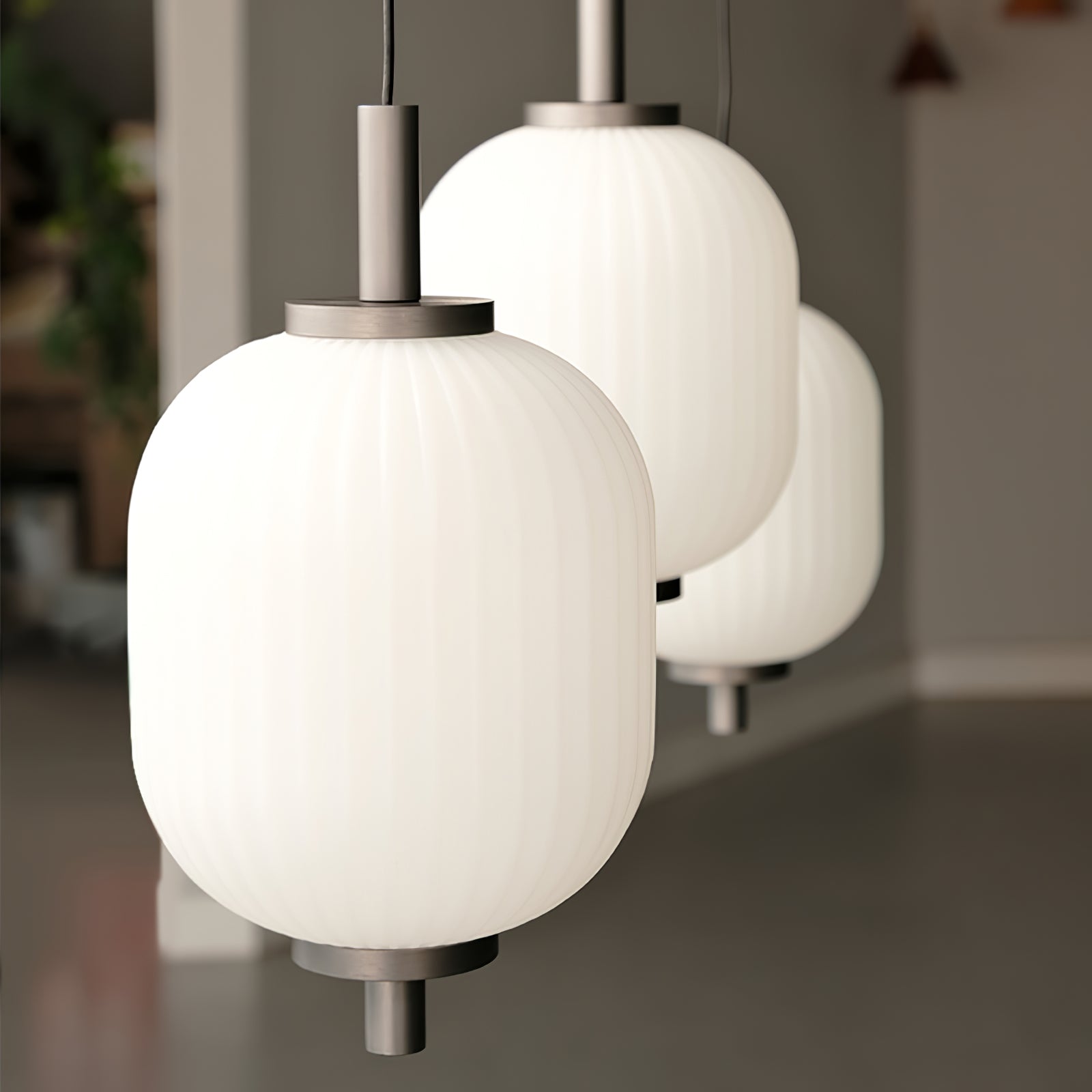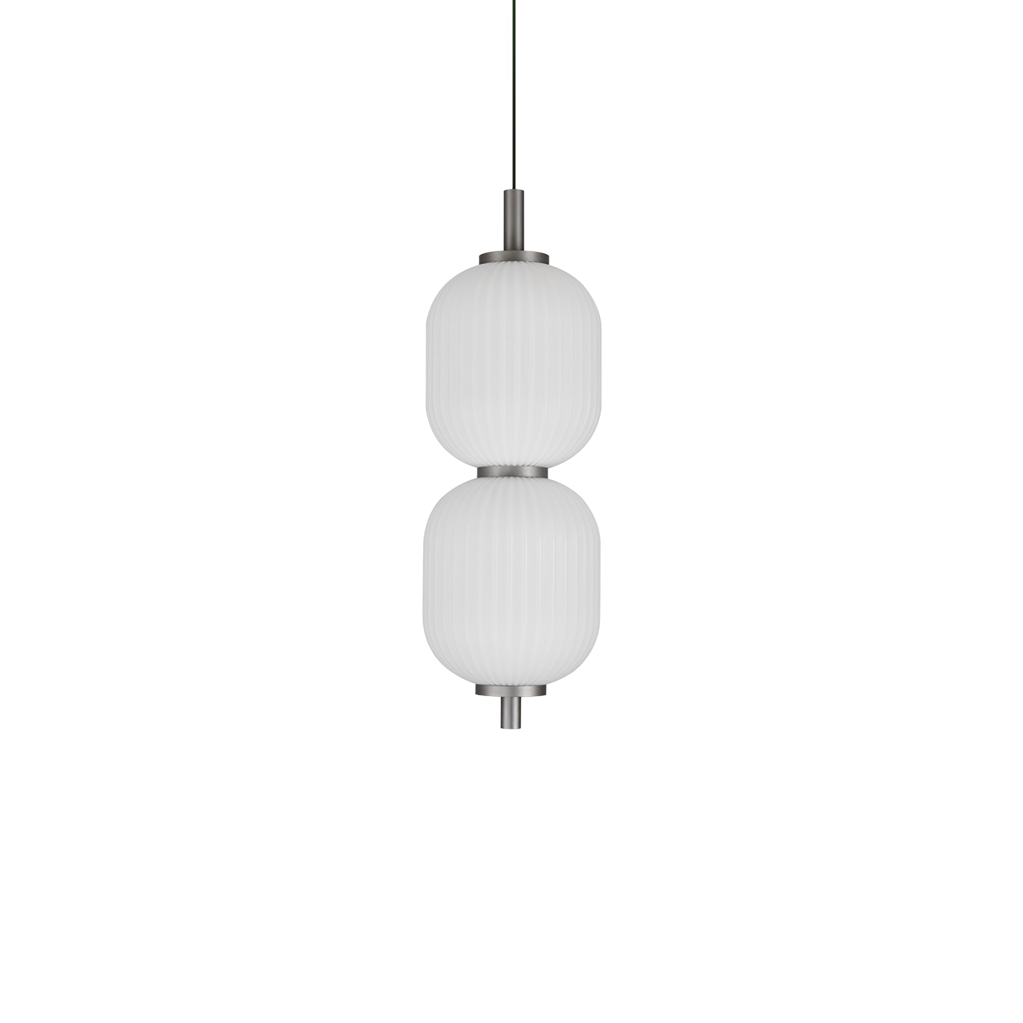 The original hand-blown glass globes are reminiscent of the floats and buoys that decorate the river. the lamp with PE lampshade with details and metal in a grey, matte finish.