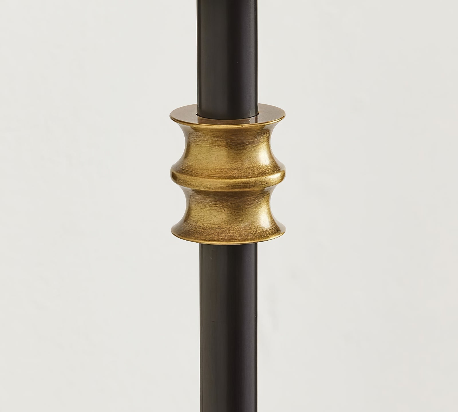 This elegant Collins Shaded Wall Light features a sleek black metal arm with a graceful curve, supporting a classic white fabric shade. The combination of matte black and subtle brass accents adds a touch of sophistication, making it a versatile addition to both modern and traditional interiors. Ideal for bedside lighting or as an accent in living spaces, this wall lamp provides a soft, warm glow, enhancing the ambiance with its understated charm and refined design.