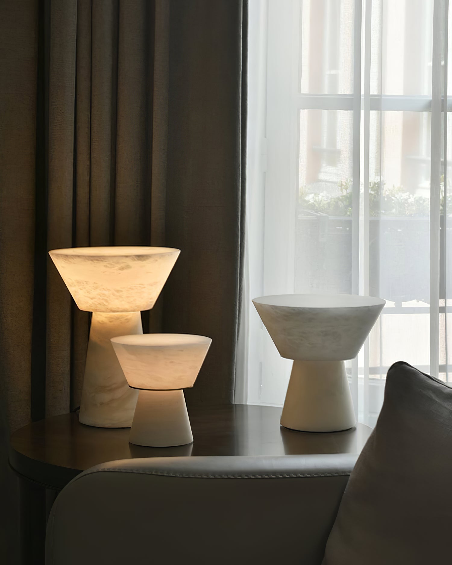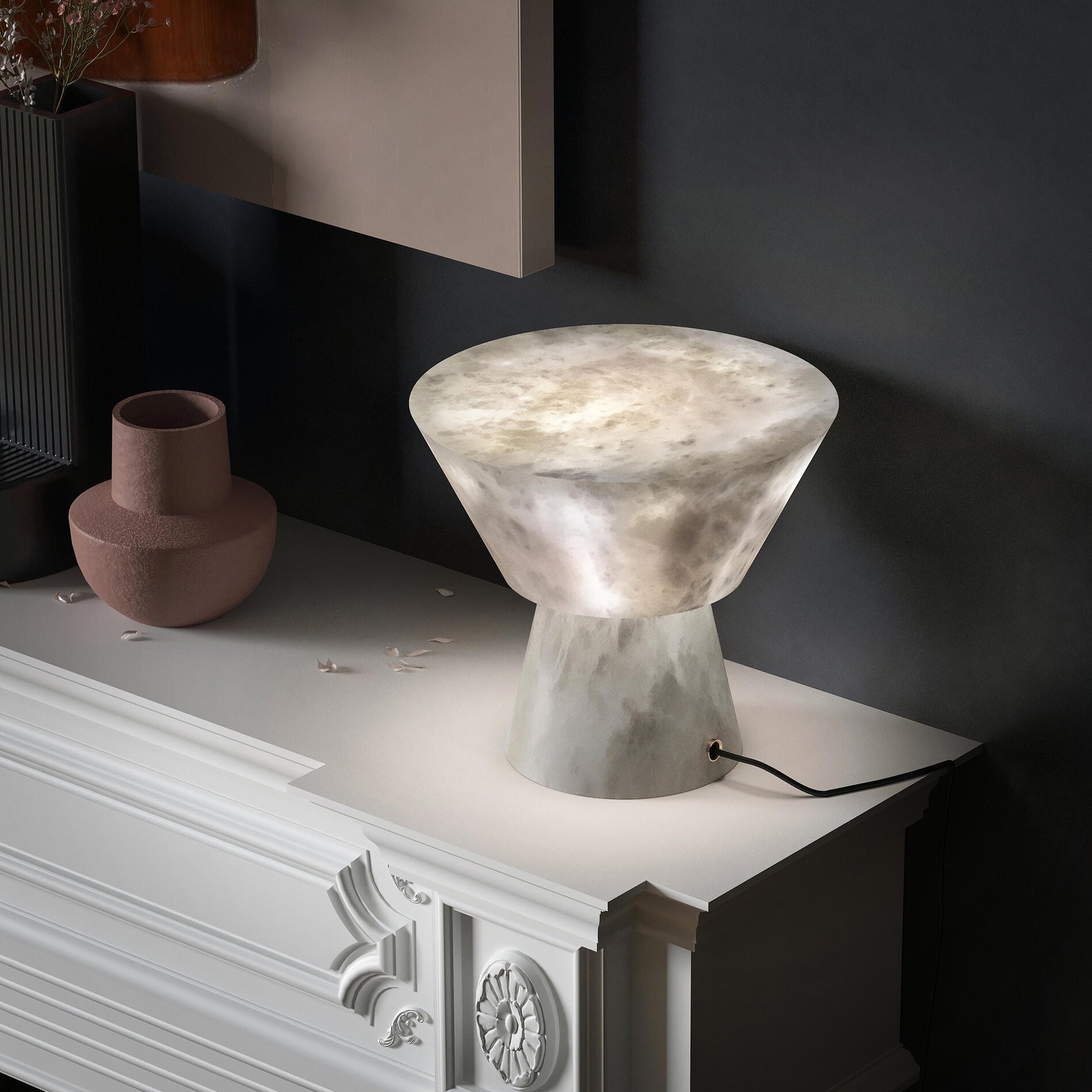 Add a touch of elegance to your home with the Conical Alabaster Table Lamp from liootrlamp. This unique lamp features a beautifully sculpted conical alabaster shade that emits a soft, warm glow. Perfect for contemporary and classic interiors, it enhances any space with its refined design and ambient lighting. Ideal for nightstands, desks, or side tables, this lamp combines functionality with sophisticated style, creating a serene and inviting atmosphere.