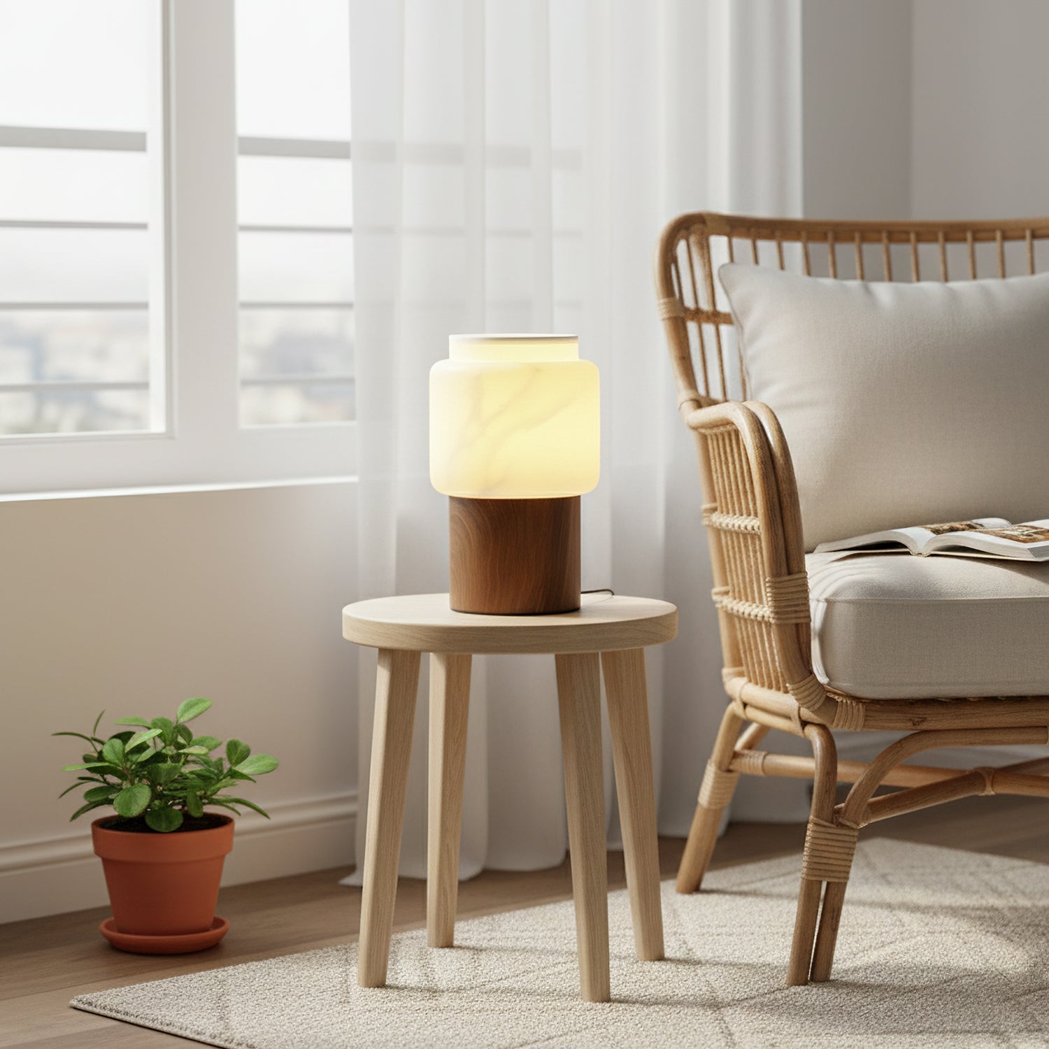 The Coprin Table Lamp from Mooijane is a modern design. It blends warm wood and alabaster to emit a soft, poetic glow, creating a cozy and tranquil atmosphere. Stable on a wooden base, this lamp perfectly integrates natural materials with modern design, making it an ideal addition to bedside tables, living rooms, or reading nooks, exuding elegance.