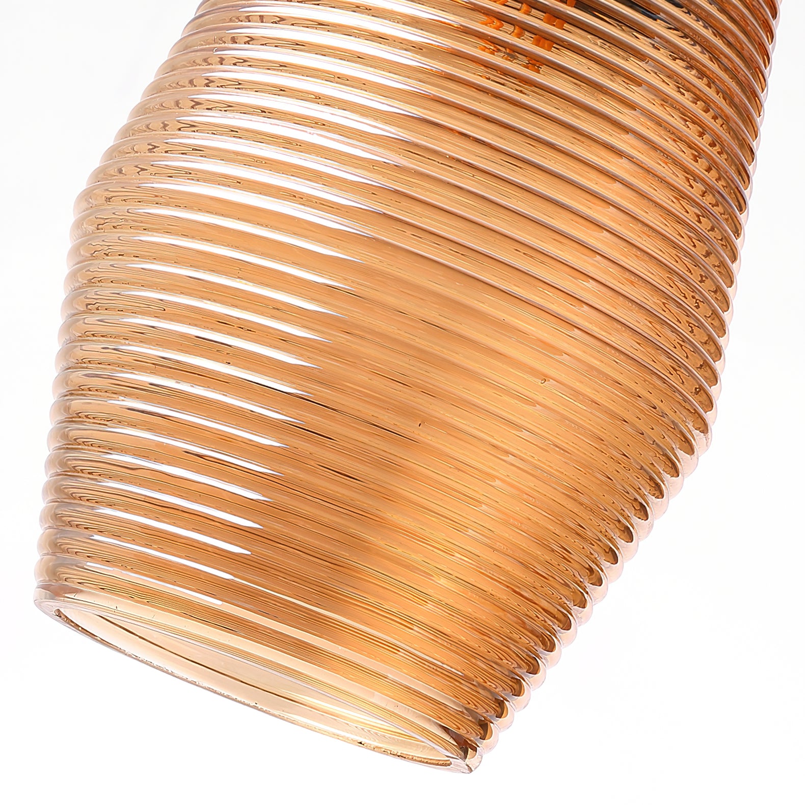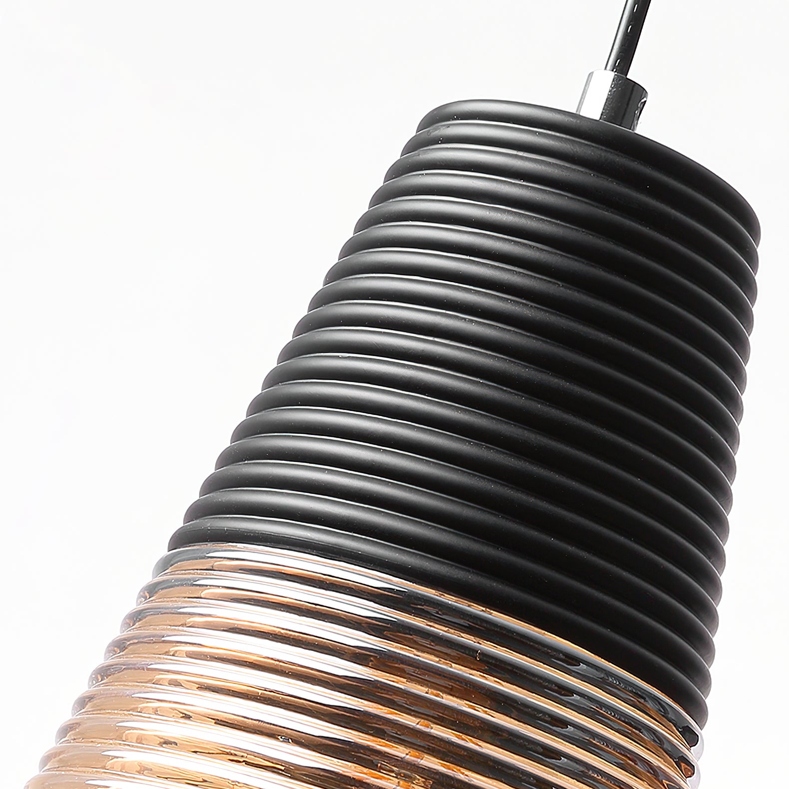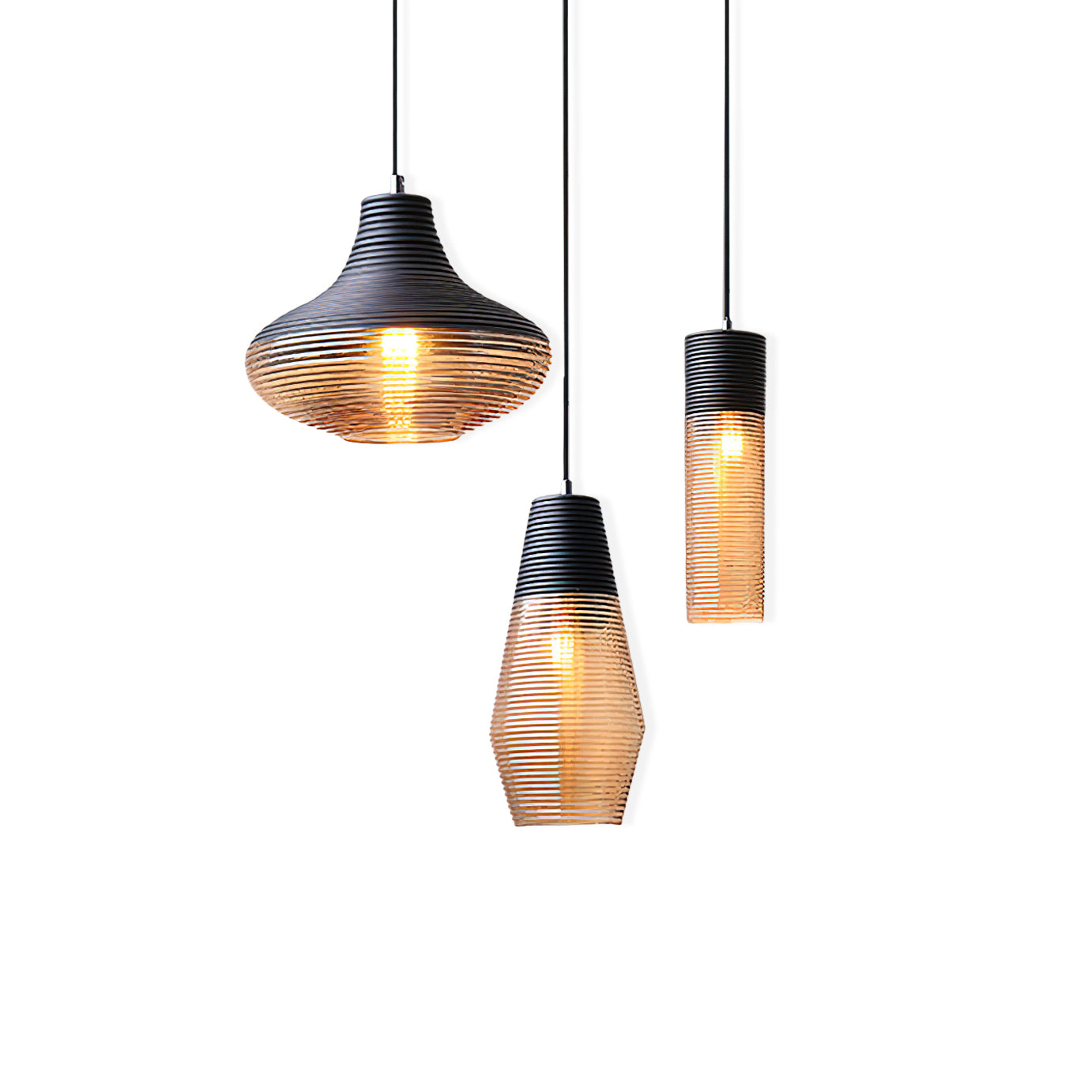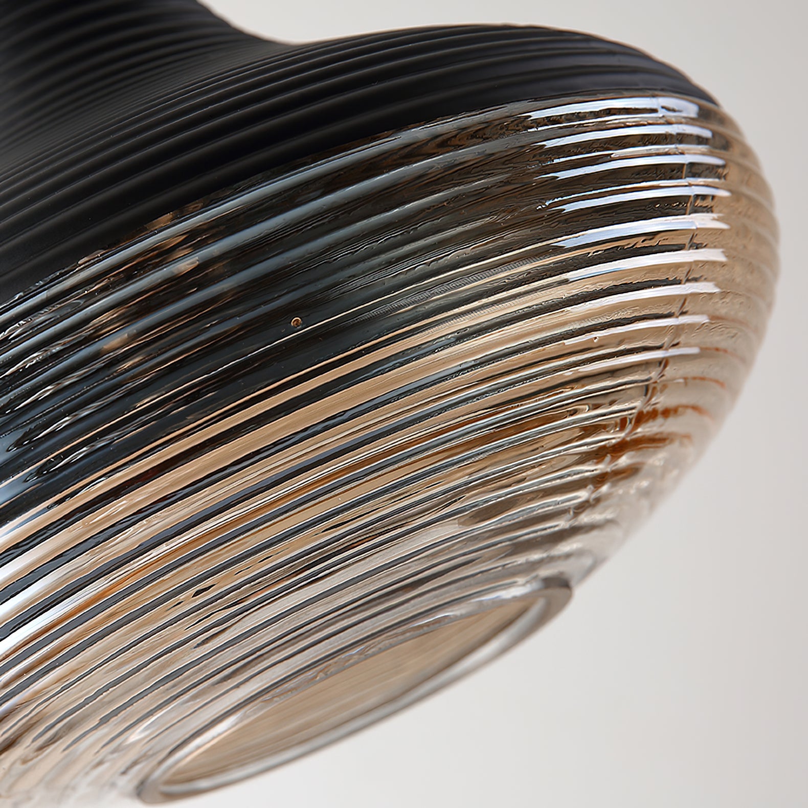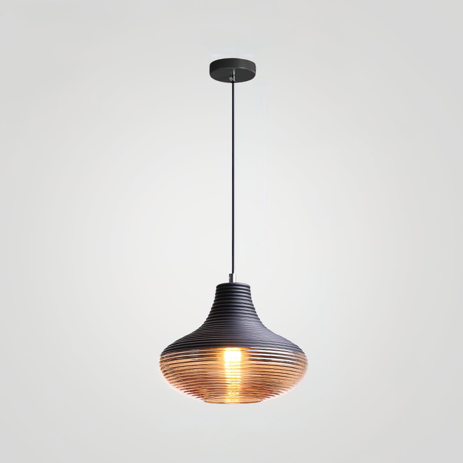 Create a luxurious atmosphere with this Corrugated Pendant Lamp. Its creative spiral pattern creates a unique display and its artificially blown glass cover creates a soft, artistic beauty. The combination of the simple design and brown tones is perfect for adding a fashionable touch of nature and agility to any home.