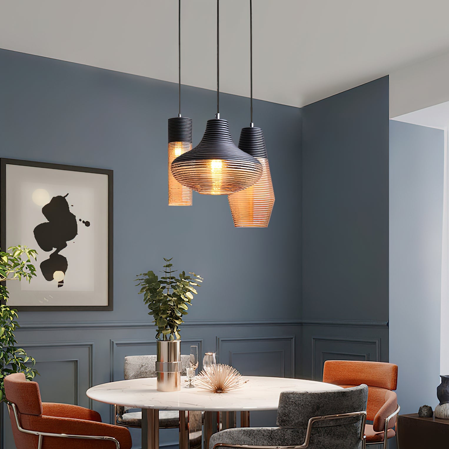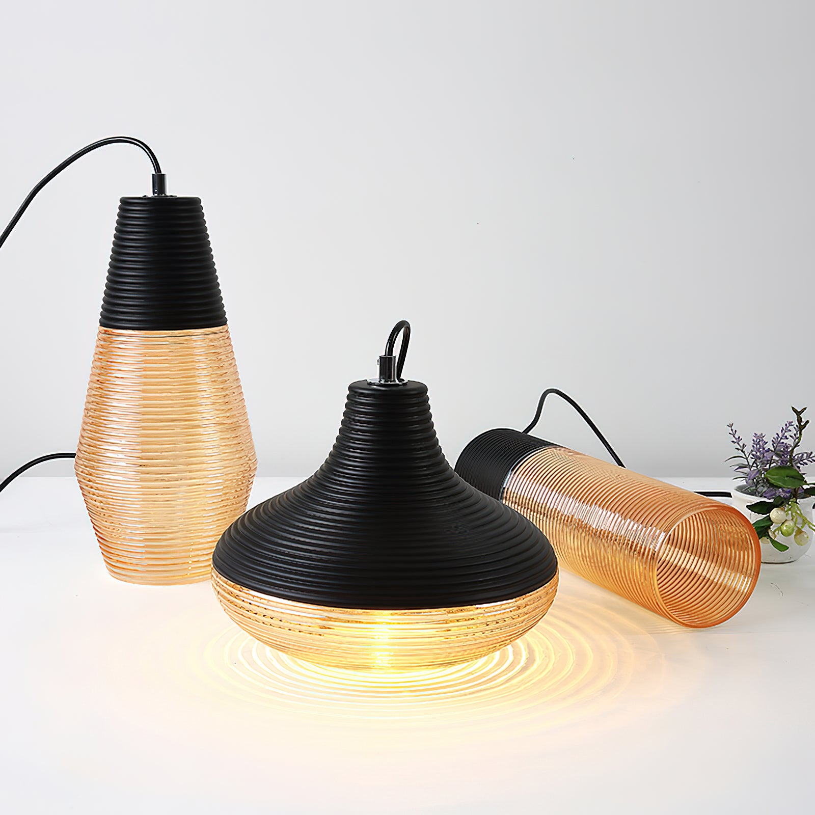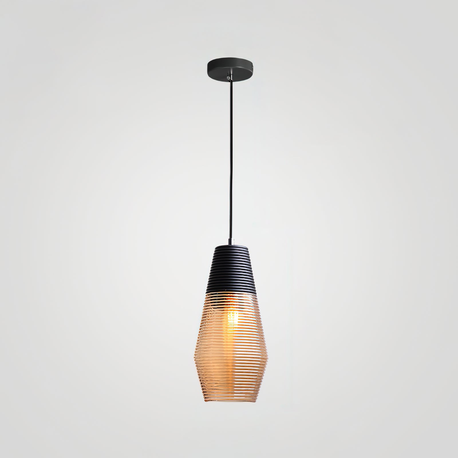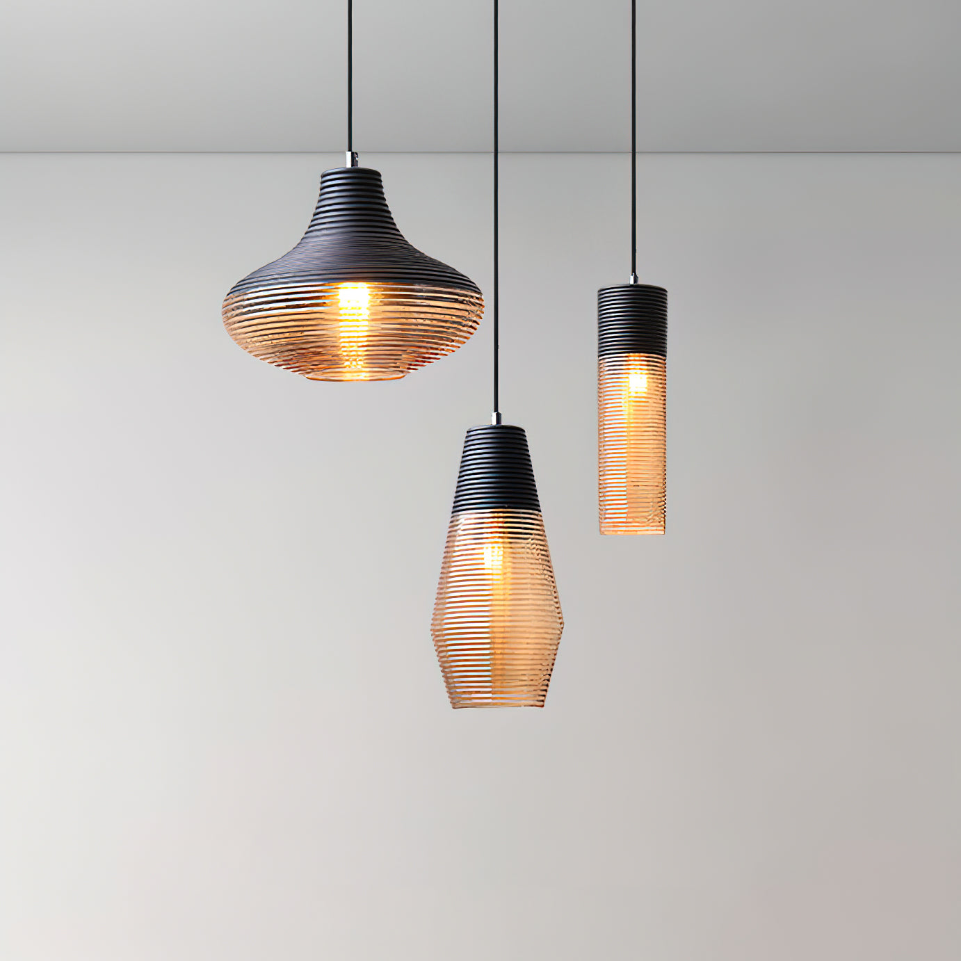Create a luxurious atmosphere with this Corrugated Pendant Lamp. Its creative spiral pattern creates a unique display and its artificially blown glass cover creates a soft, artistic beauty. The combination of the simple design and brown tones is perfect for adding a fashionable touch of nature and agility to any home.