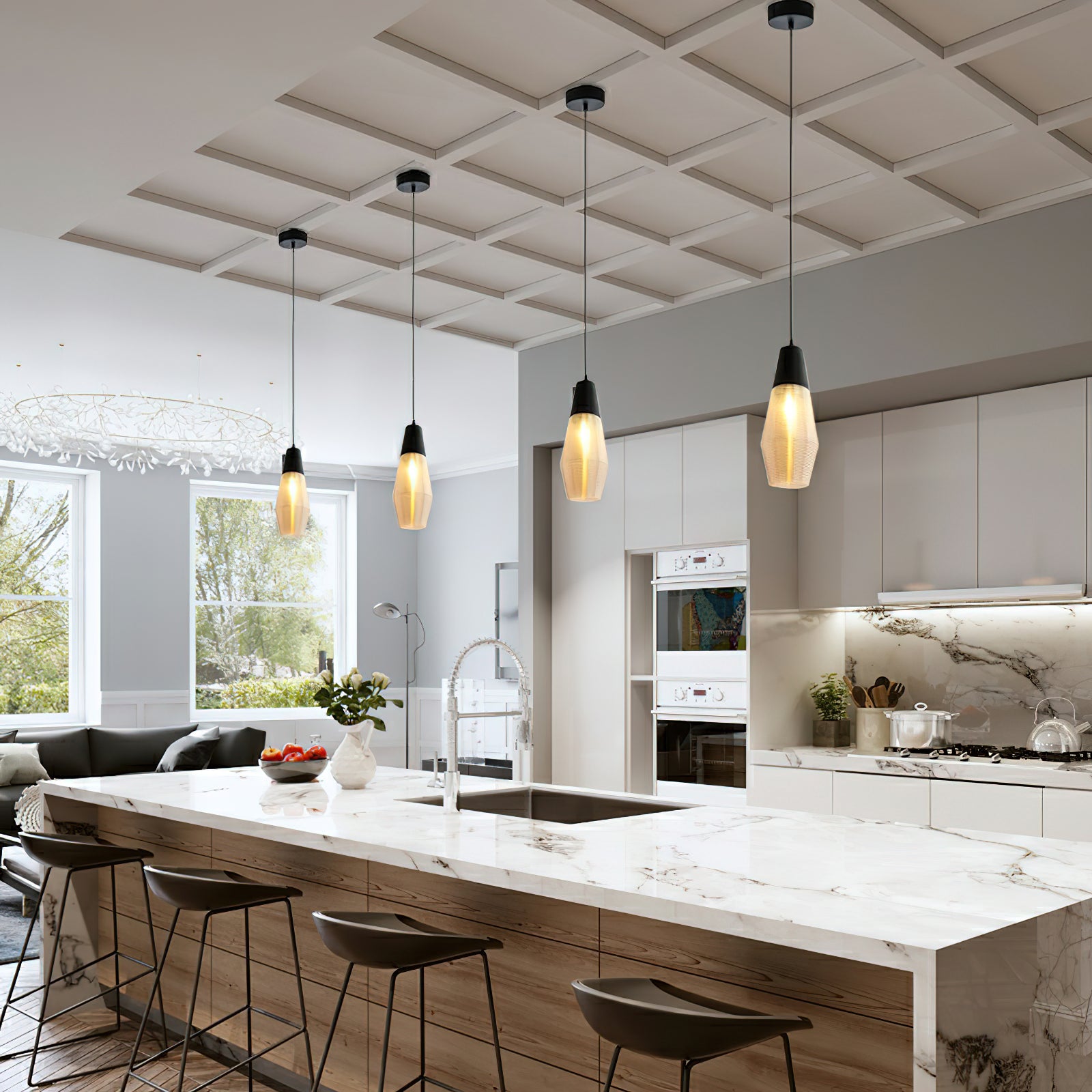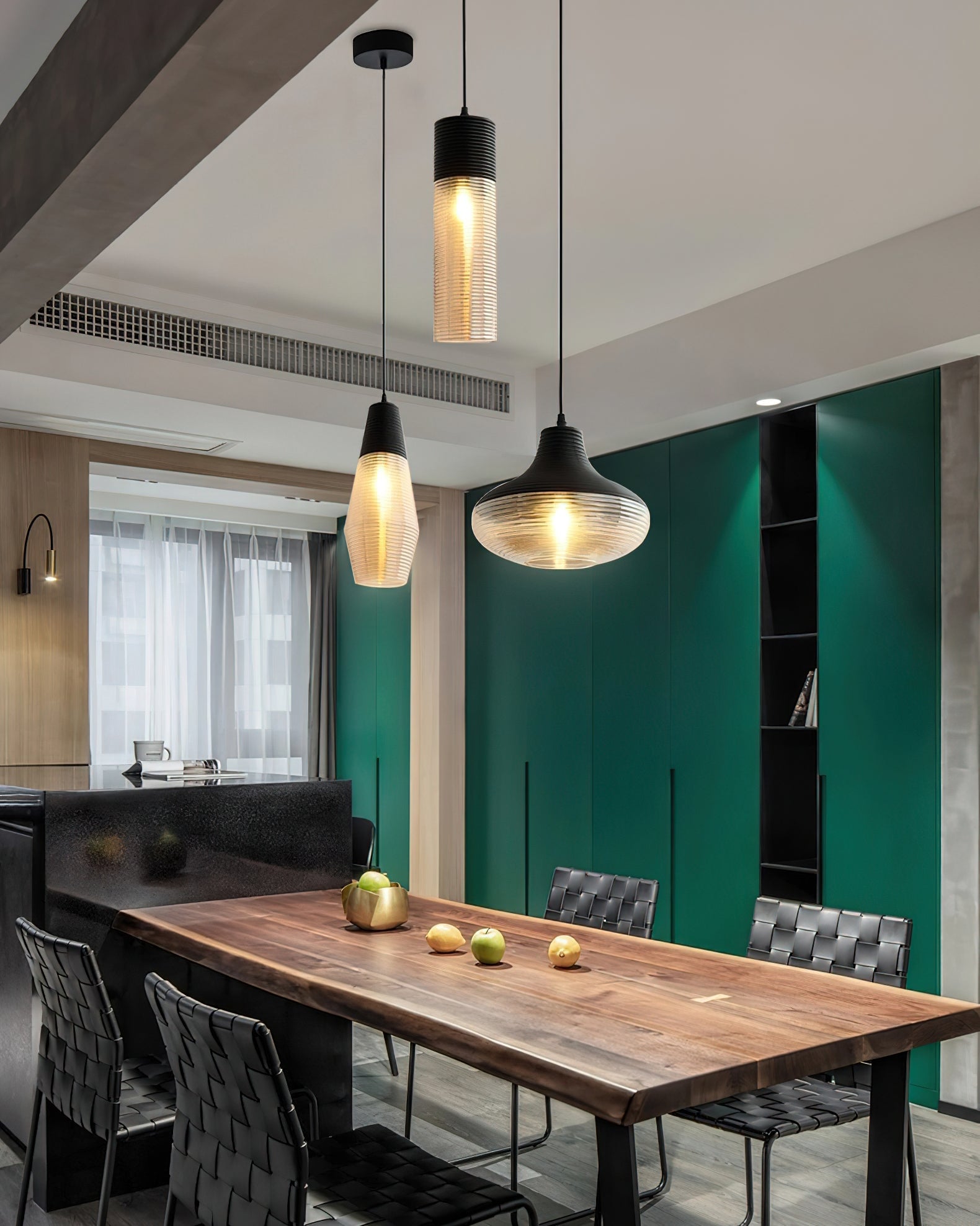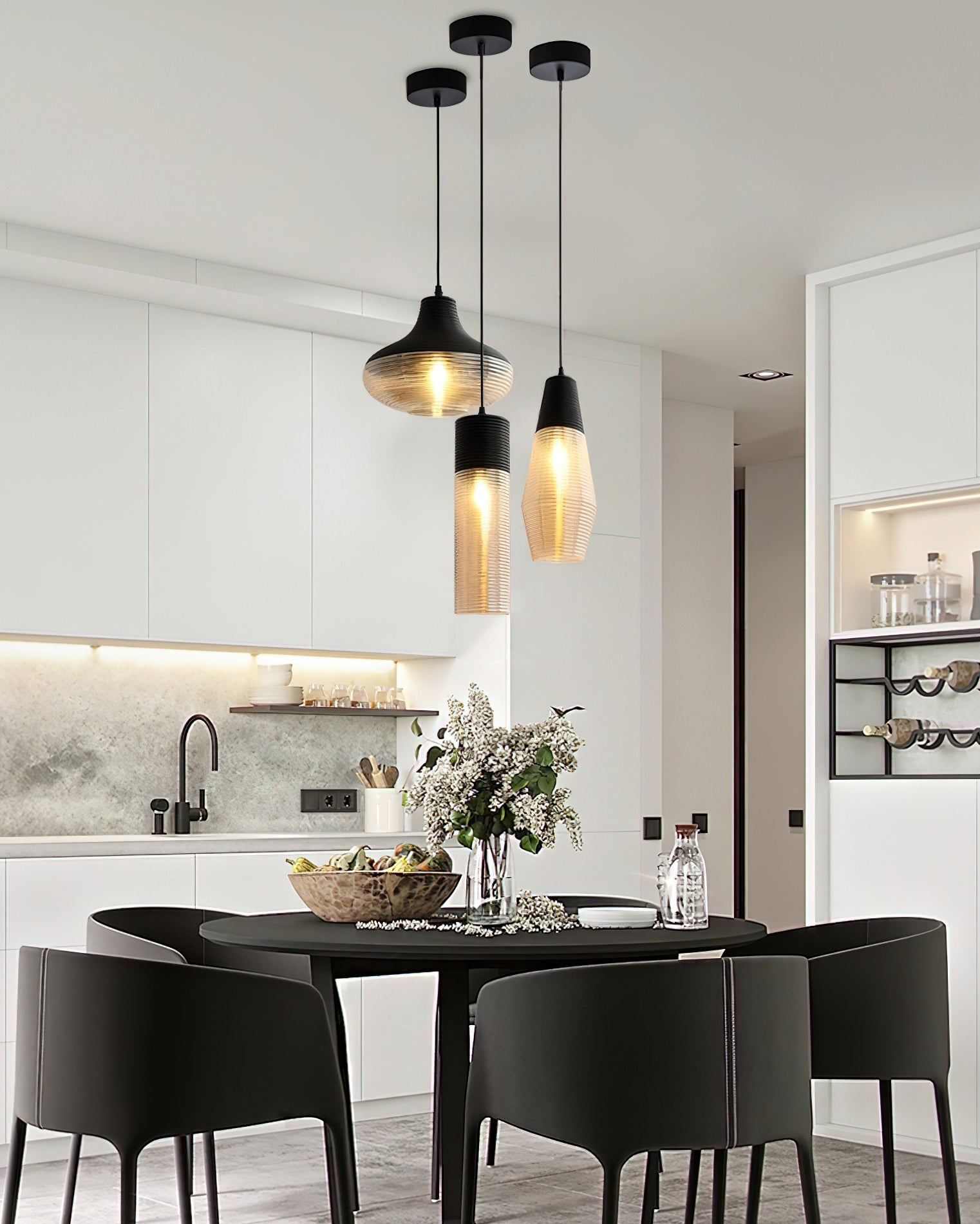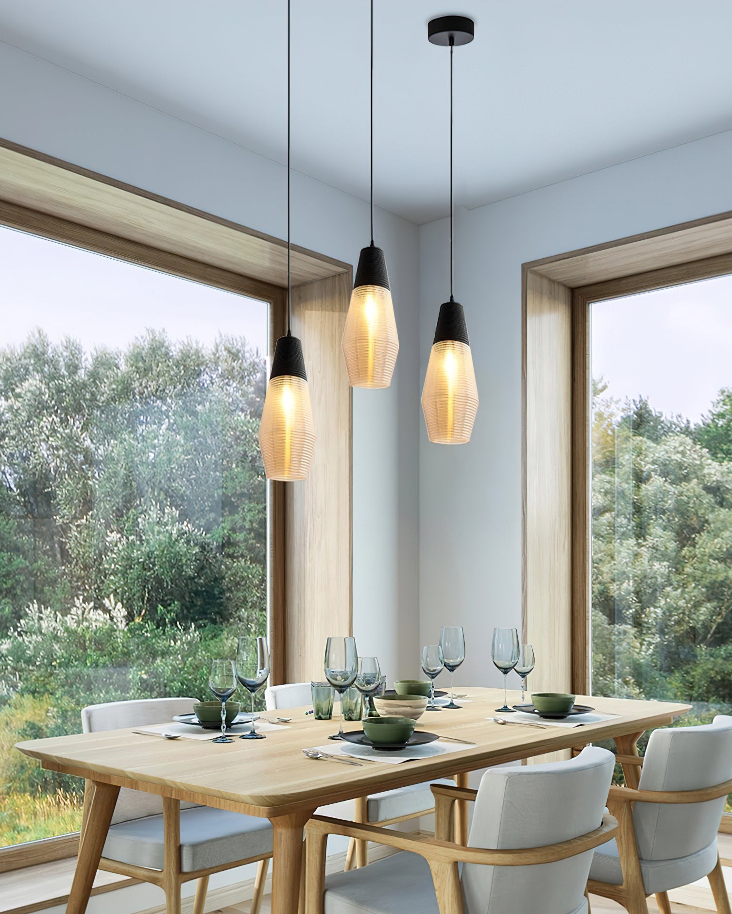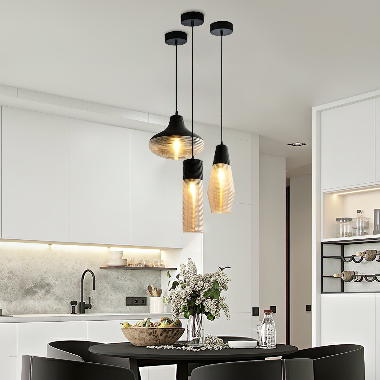 Create a luxurious atmosphere with this Corrugated Pendant Lamp. Its creative spiral pattern creates a unique display and its artificially blown glass cover creates a soft, artistic beauty. The combination of the simple design and brown tones is perfect for adding a fashionable touch of nature and agility to any home.