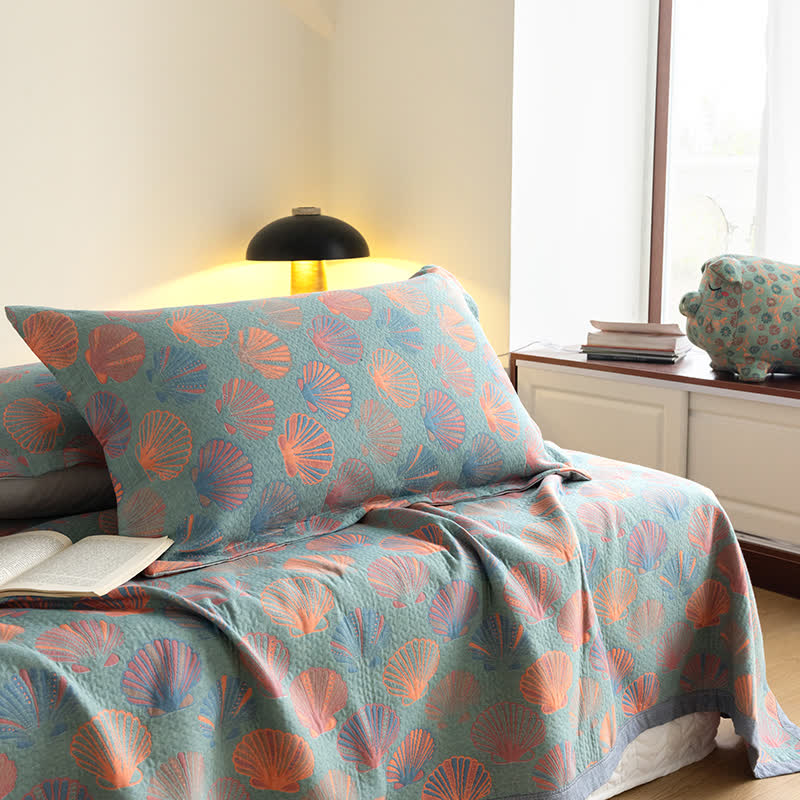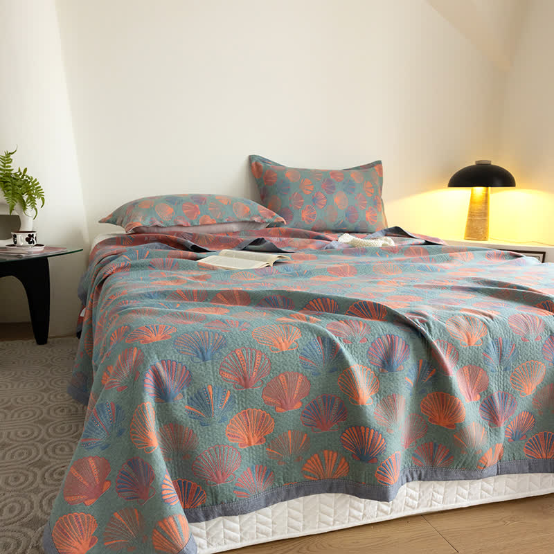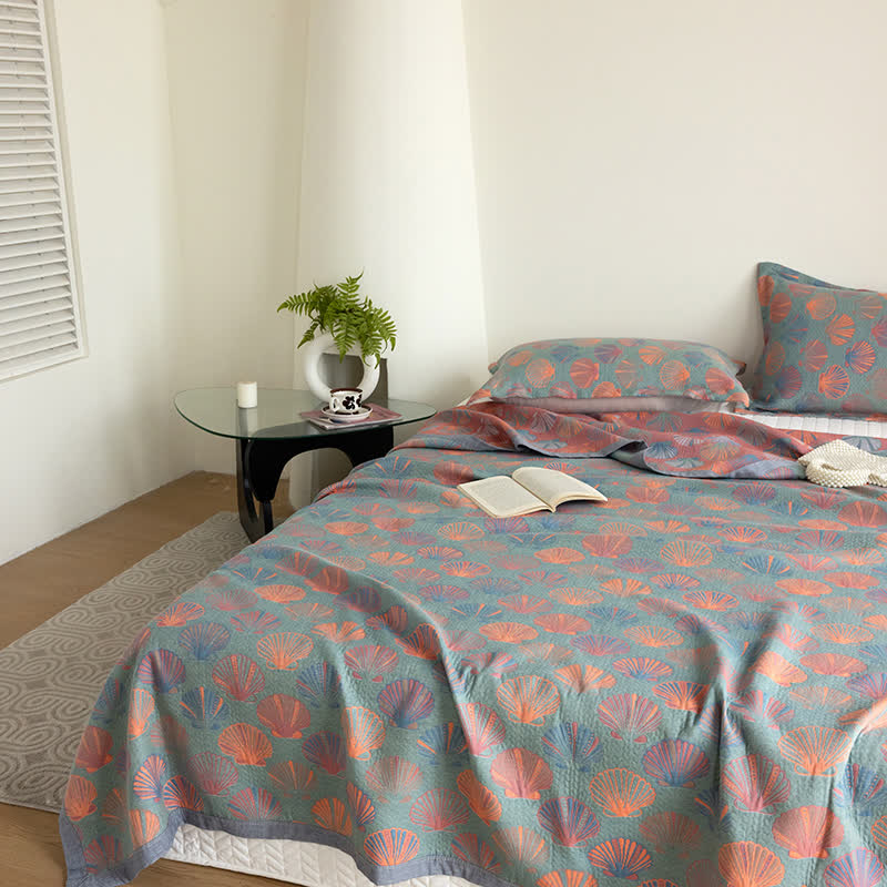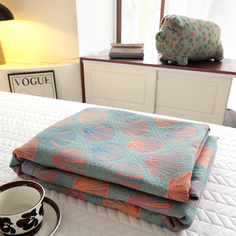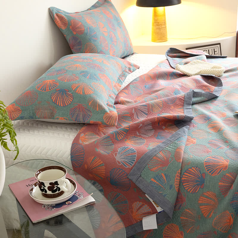 The colorful shell pattern brings a playful touch to your bedroom, brightening the space and showcasing your style. Crafted from breathable cotton with three layers of gauze, this quilt is ideal for warm climates and summer nights, ensuring optimal ventilation for comfortable sleep.