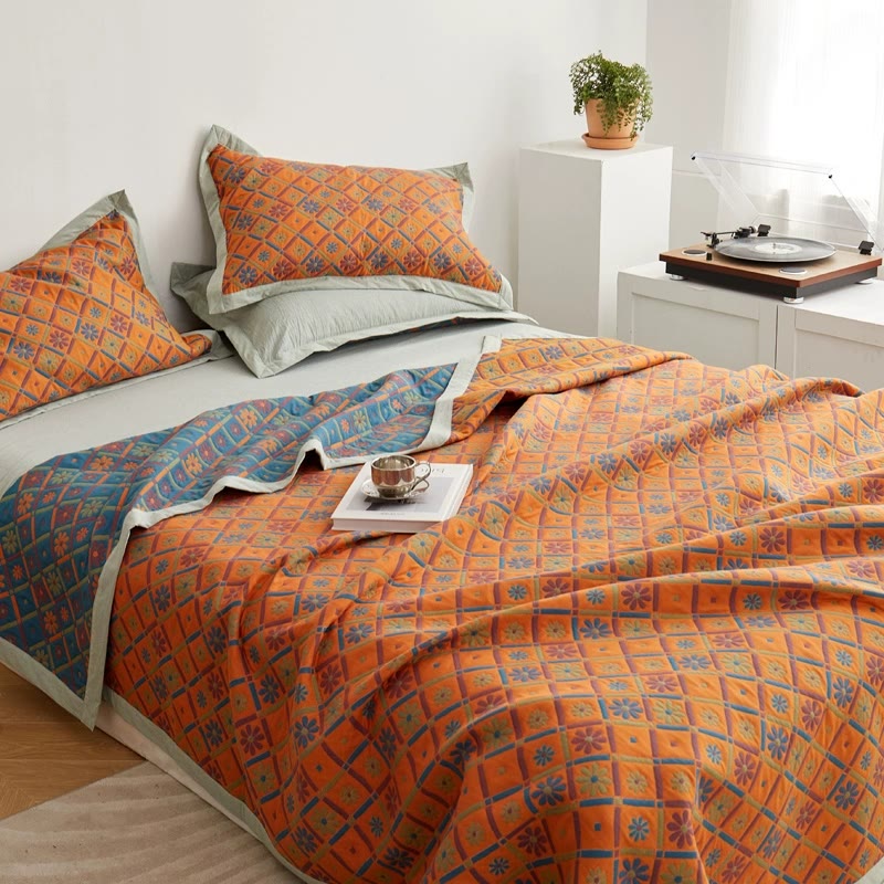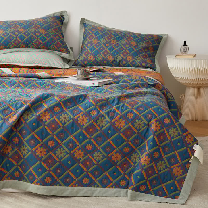 Cotton Gauze Floral & Diamond Breathable Quilt