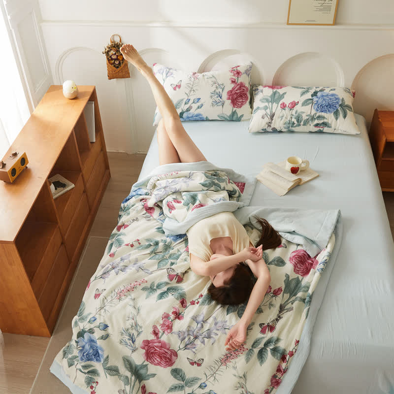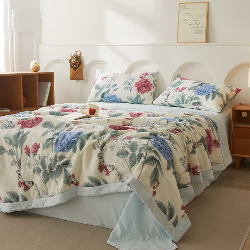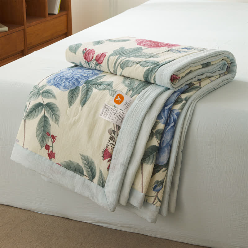 Transform any setting with a sophisticated flair by incorporating this quilt, featuring refined pastoral hues. Crafted from high-quality pure cotton and enhanced with double layers of gauze, this quilt guarantees a soft, featherlight, and breathable sensation, ideal for all seasons and versatile enough to elevate any space with its timeless elegance.