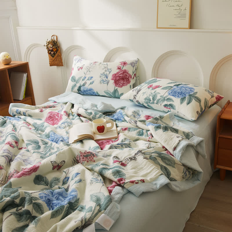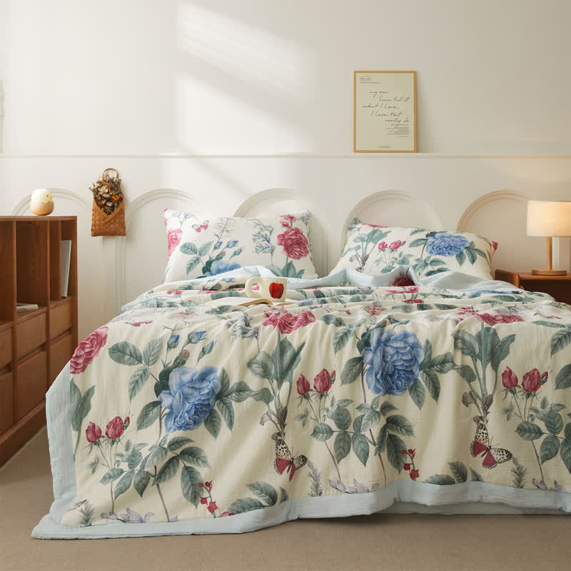 Cotton Gauze Luxurious Peony Soft Quilt