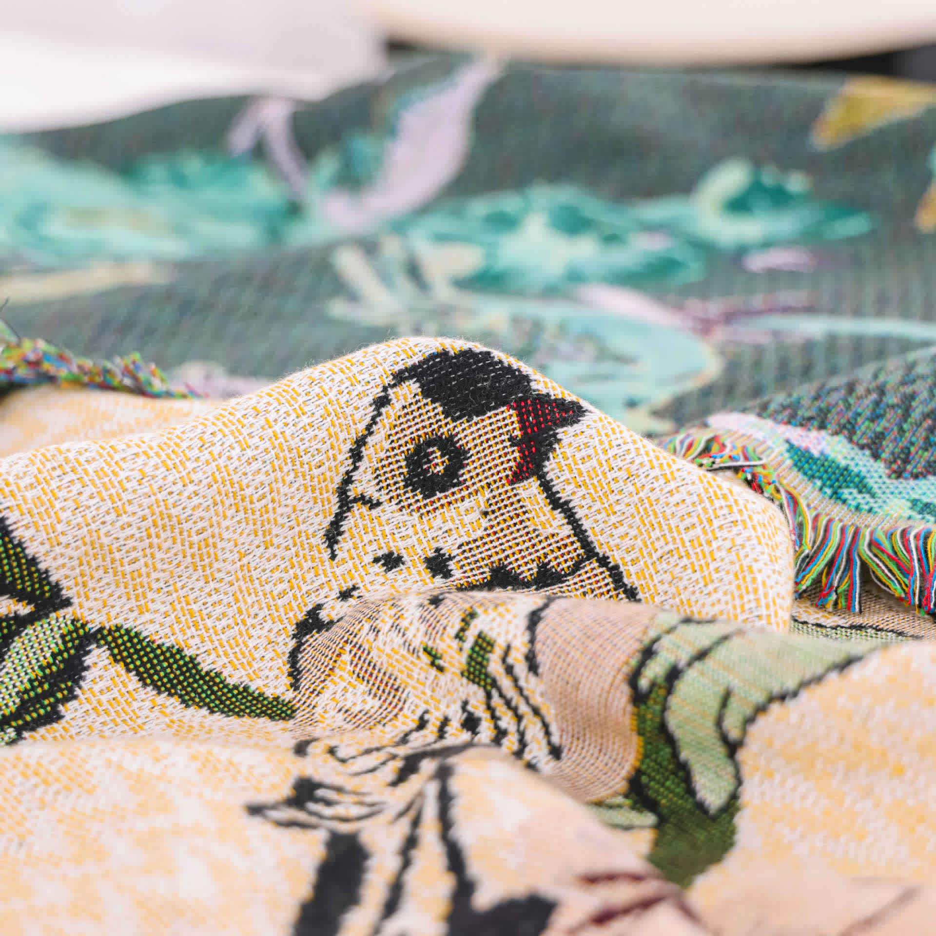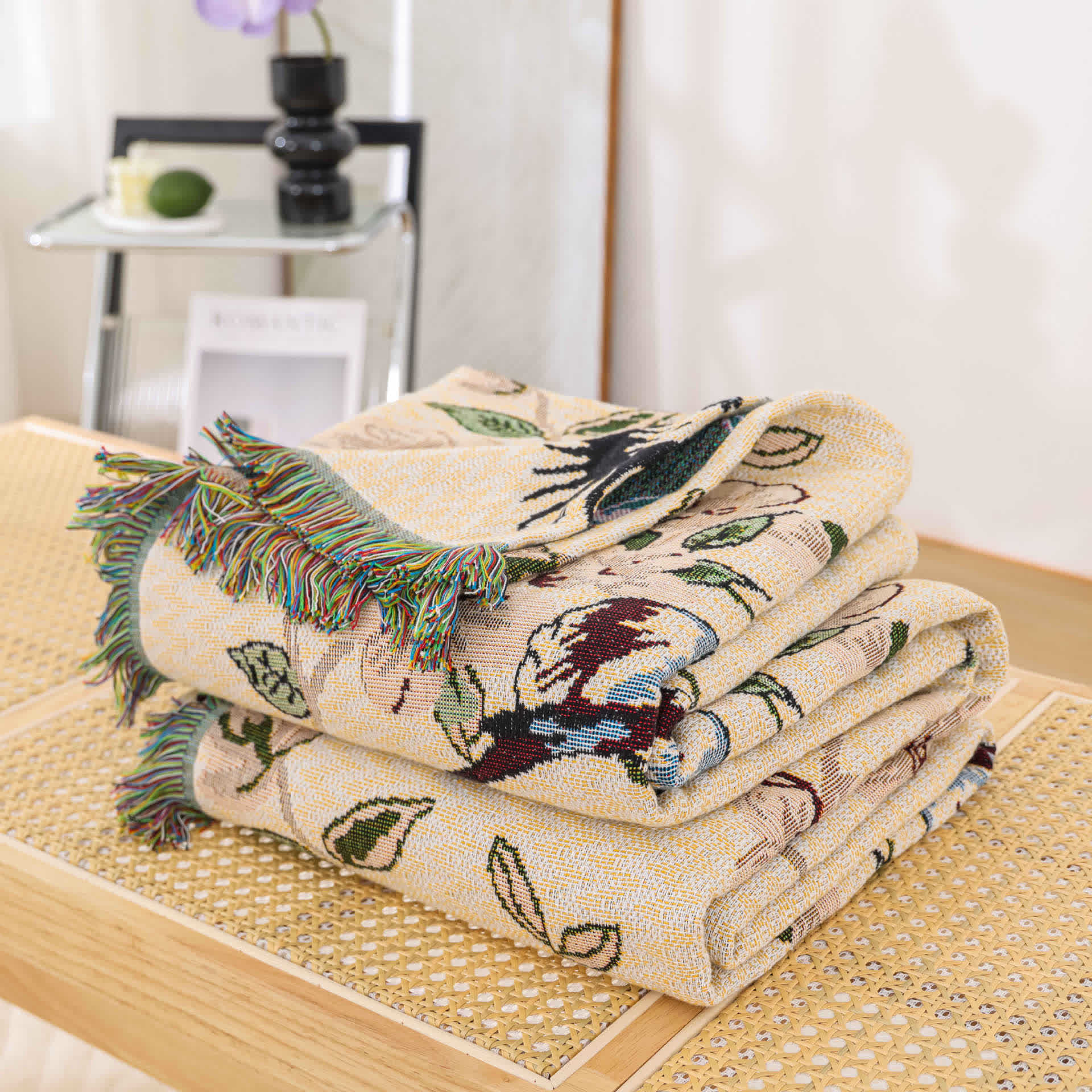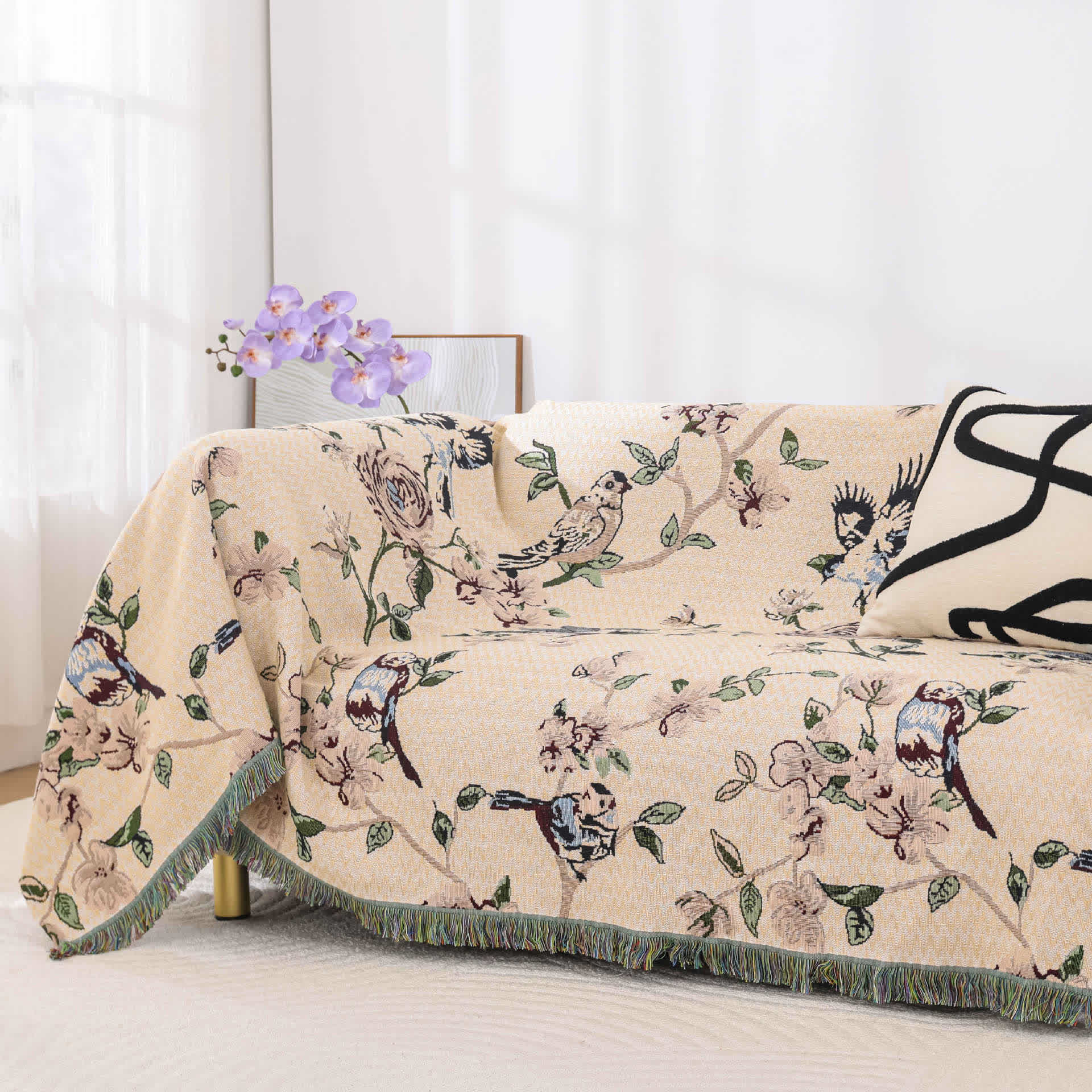 Cotton Gauze Pastoral Bird & Flower Tassel Quilt