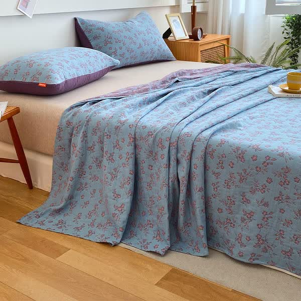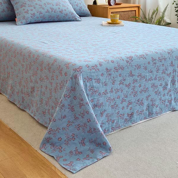Our flat sheet, meticulously fashioned from 100% cotton with dual layers of gauze in a percale construction, provides a breezy and invigorating sensation, perfect for warm evenings or those who favor cooler bed linens. Adorned with a delightful floral pattern, this sheet acts as a delightful accent to any bedroom style, infusing a dash of sophistication into your personal oasis of rest.