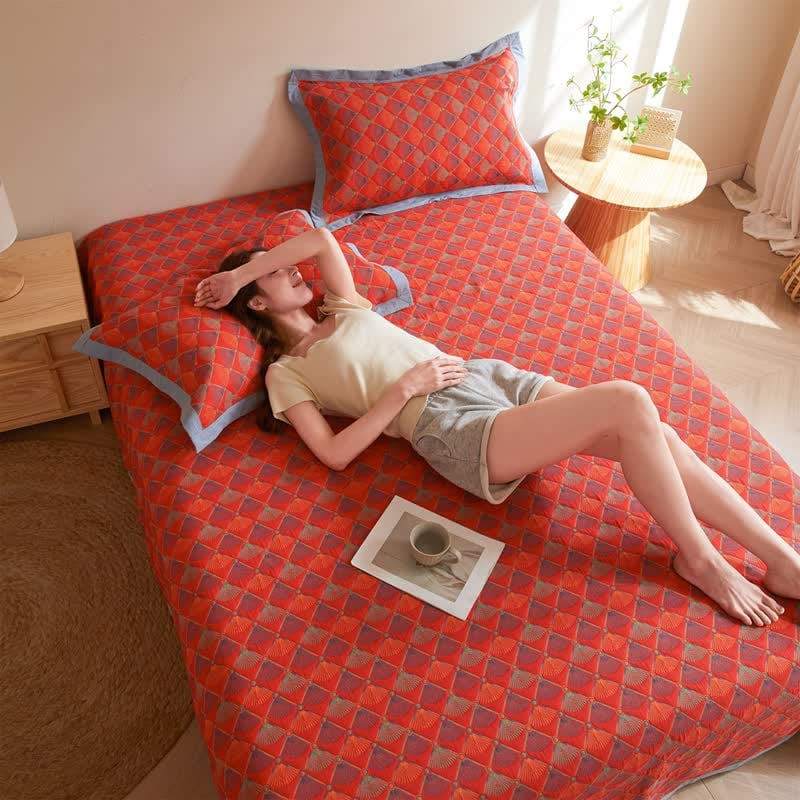 Crafted from triple-layered gauze fabric made of pure cotton, this quilt ensures a soft, delicate, and breathable feel, offering skin-friendly comfort that is simply irresistible. With easy maintenance, this bedding effortlessly preserves its exquisite appearance and luxurious feel wash after wash.