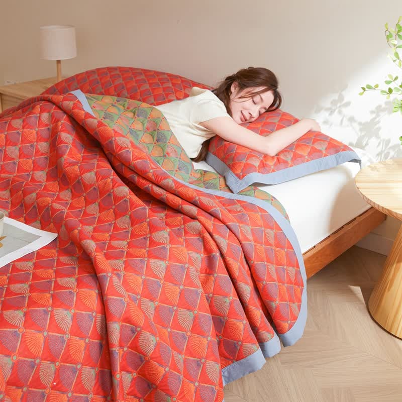 Cotton Gauze Peacock Tail Elegant Quilt