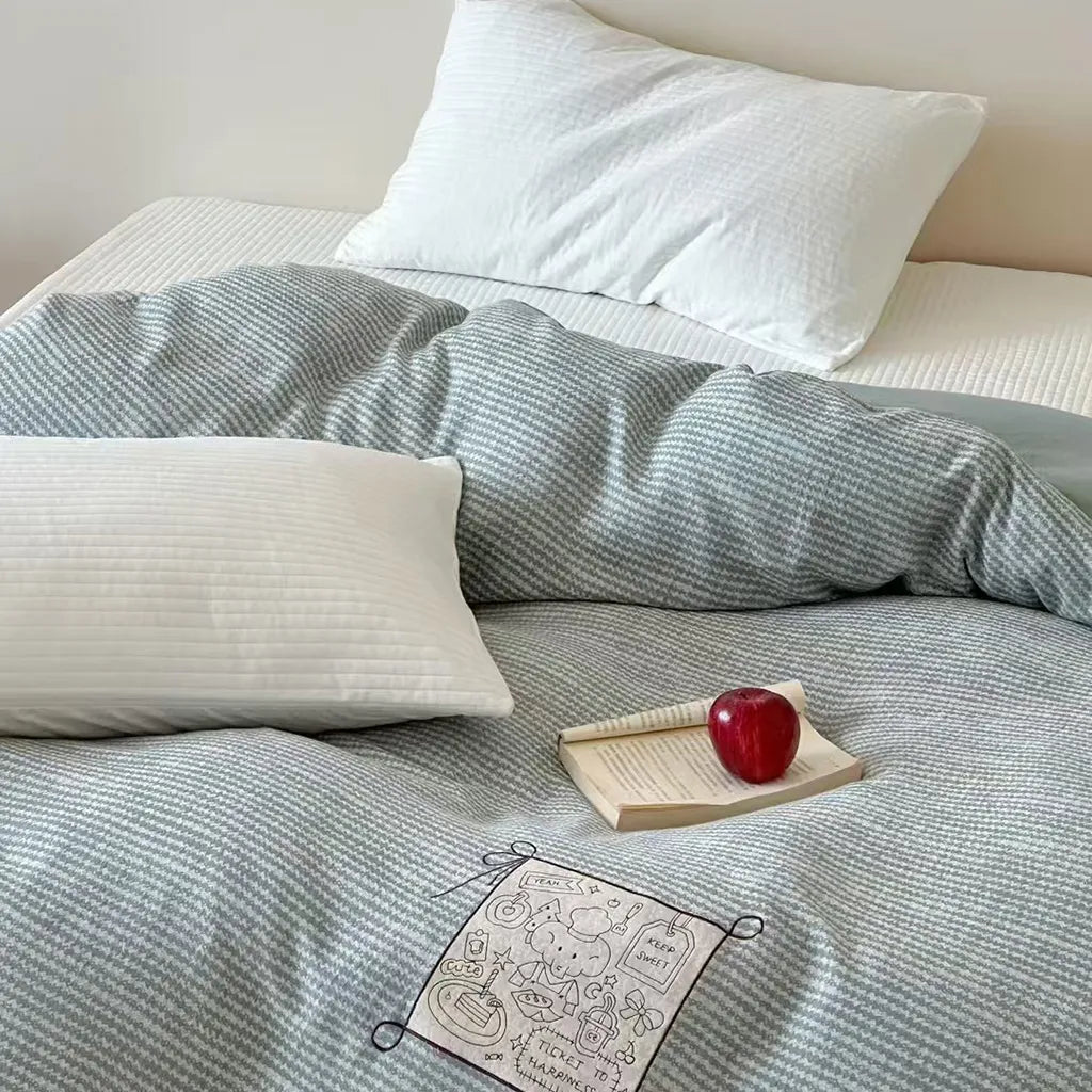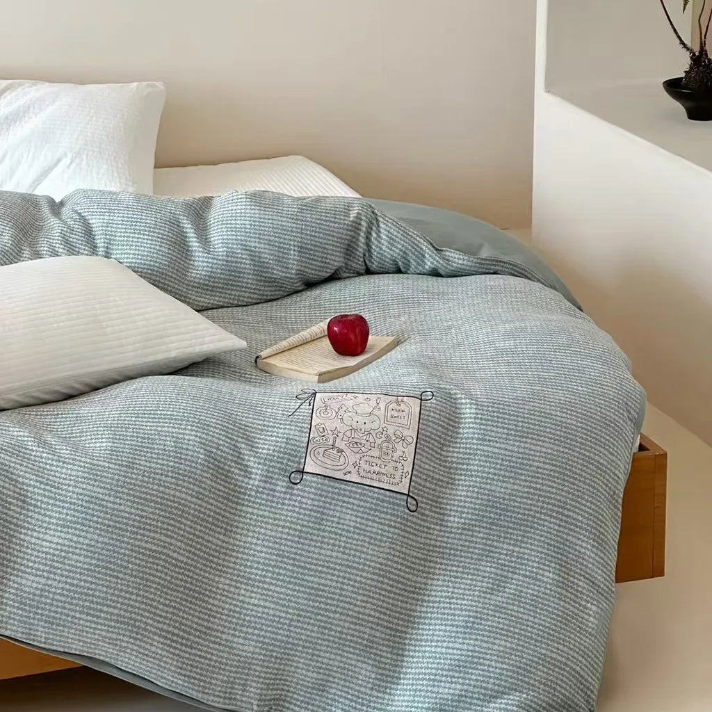 Cotton Houndstooth Jacquard Farmhouse Duvet Cover