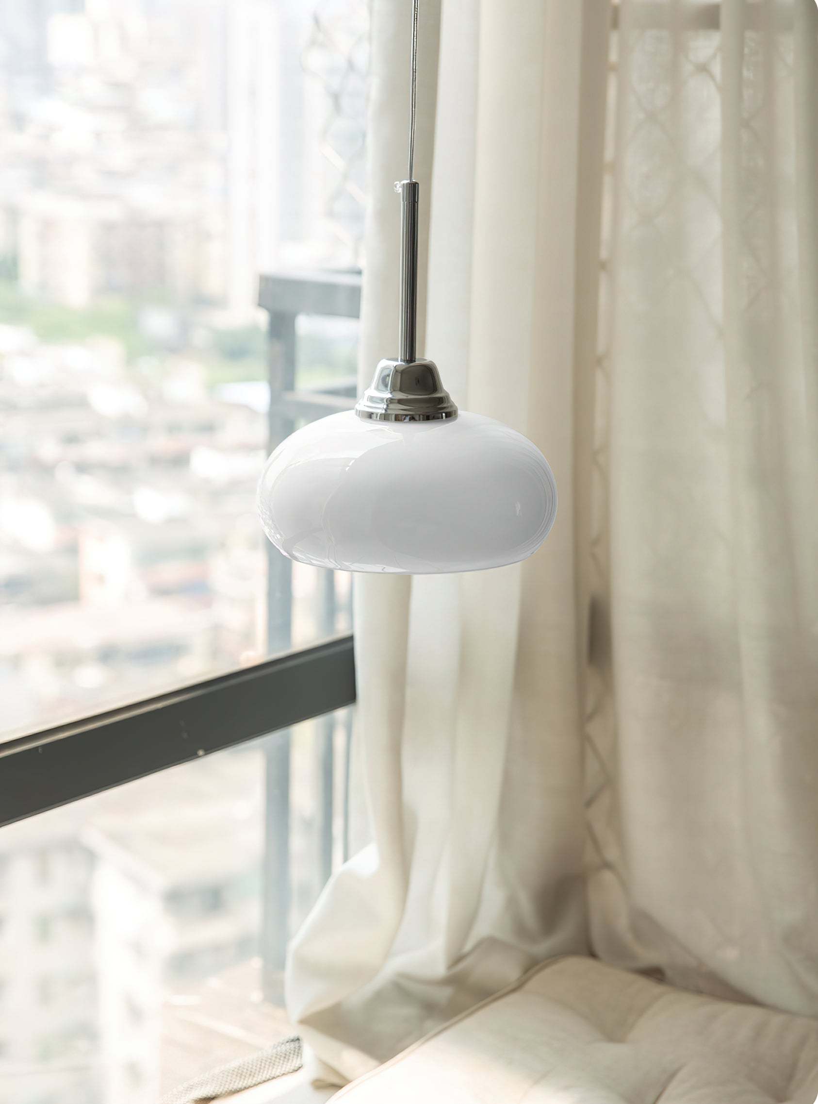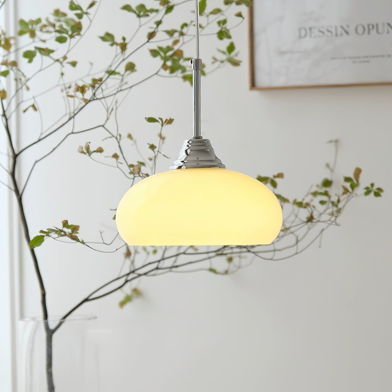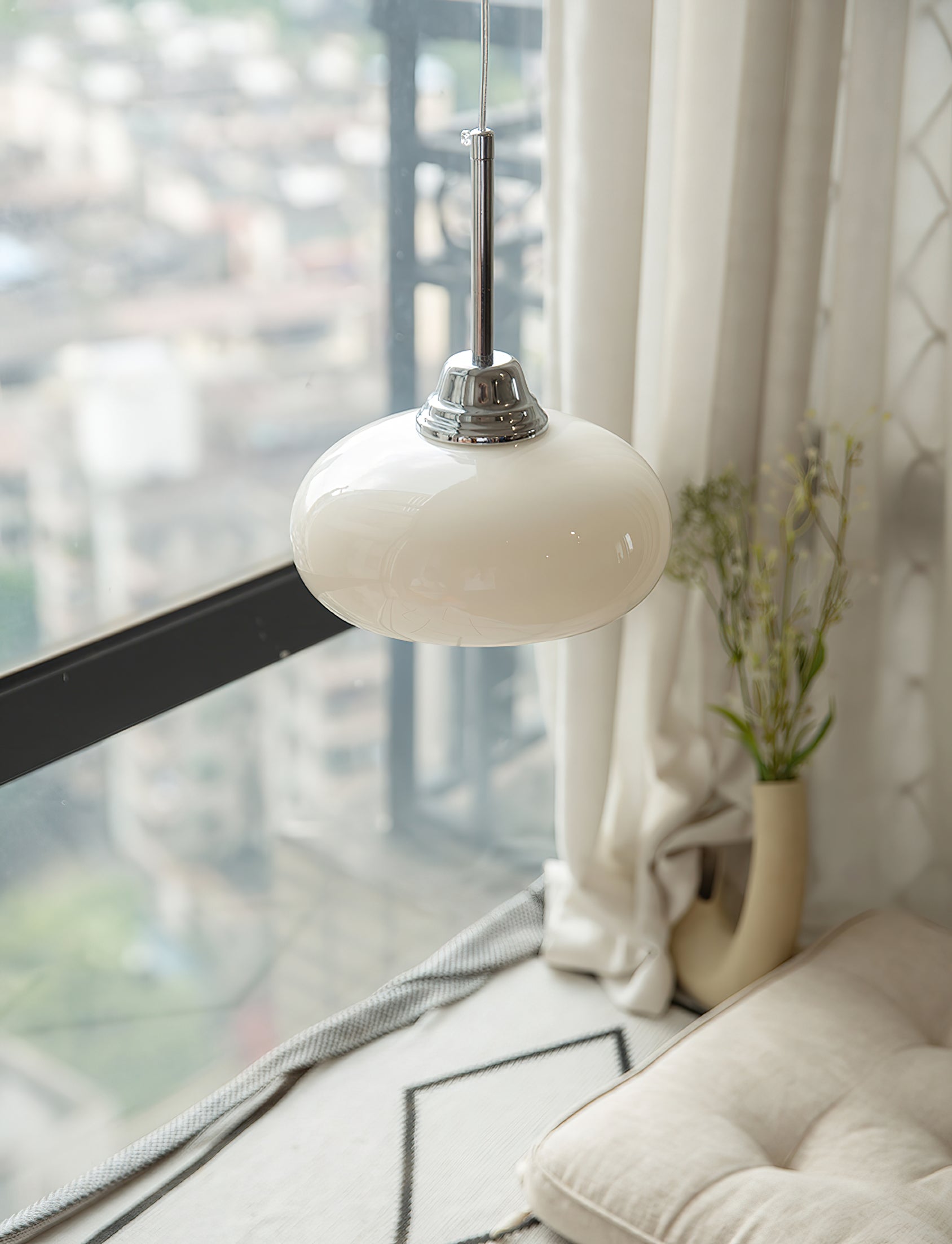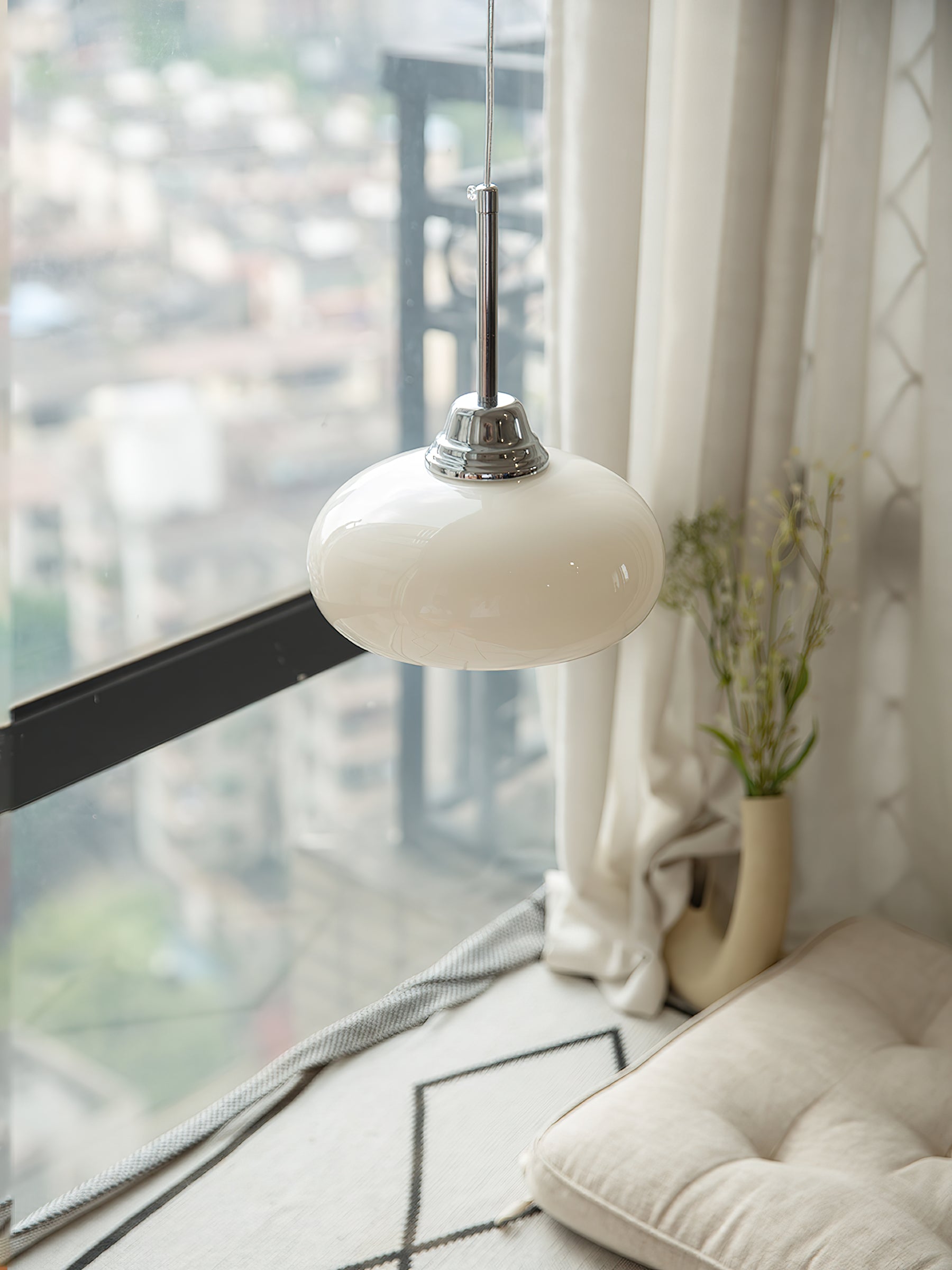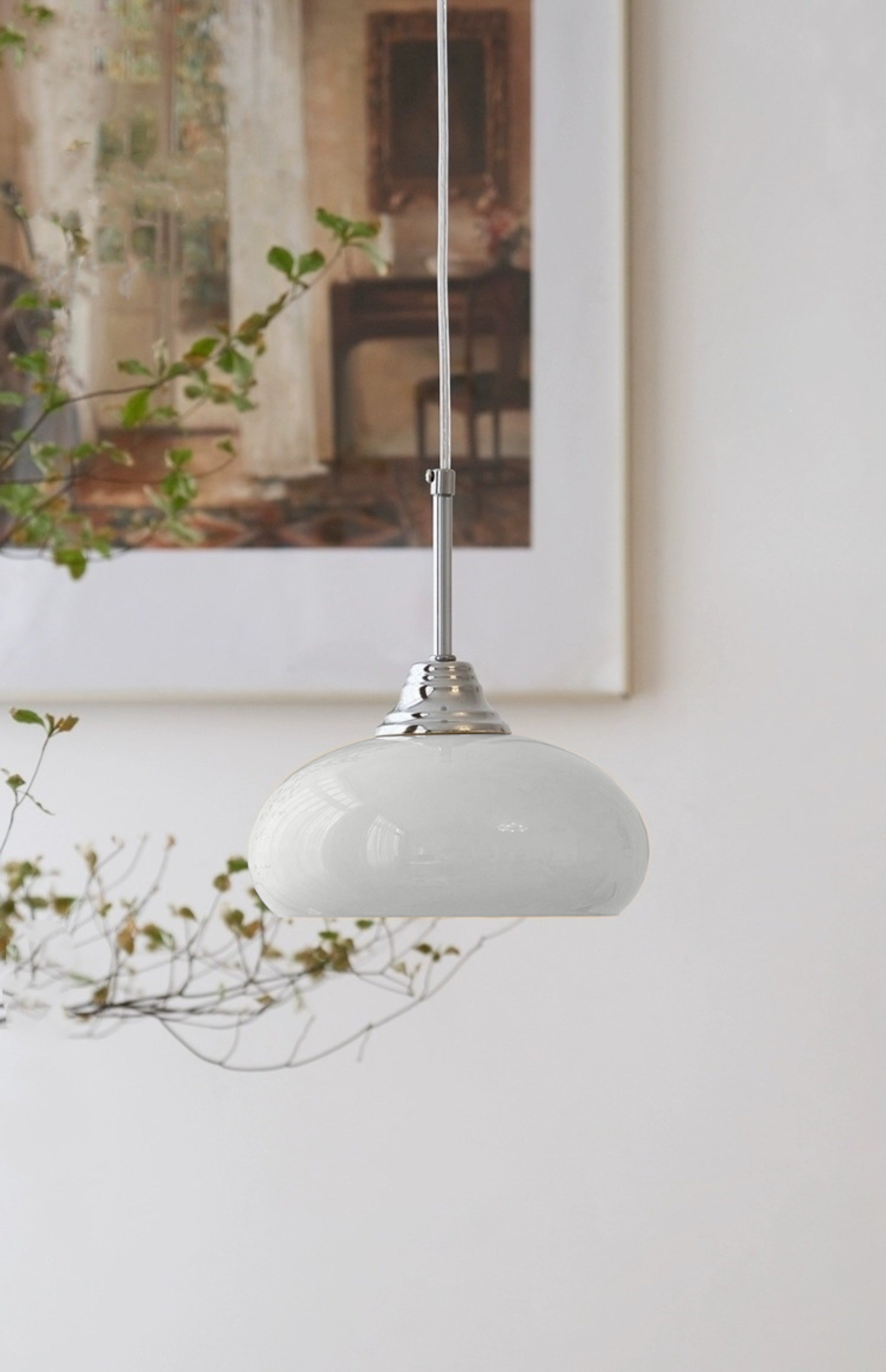 This cream glass pendant lamp brings an elegant touch to your home interior. Its soft glow casts a delightful warmth, illuminating the space in a cozy harmony. Transform your living space today and experience the luxurious feeling of home!