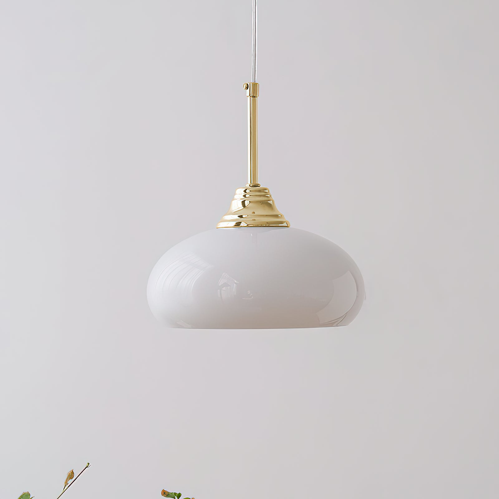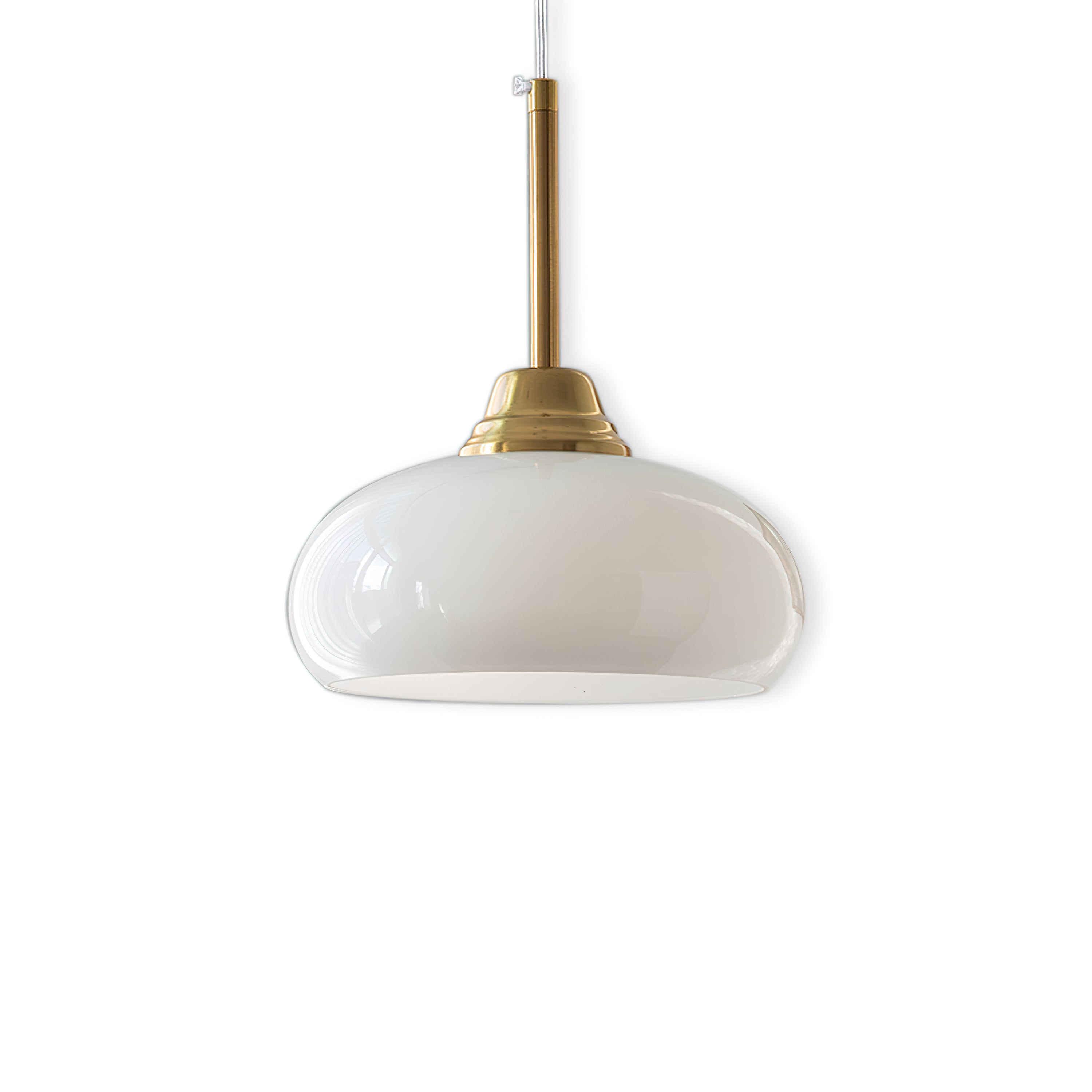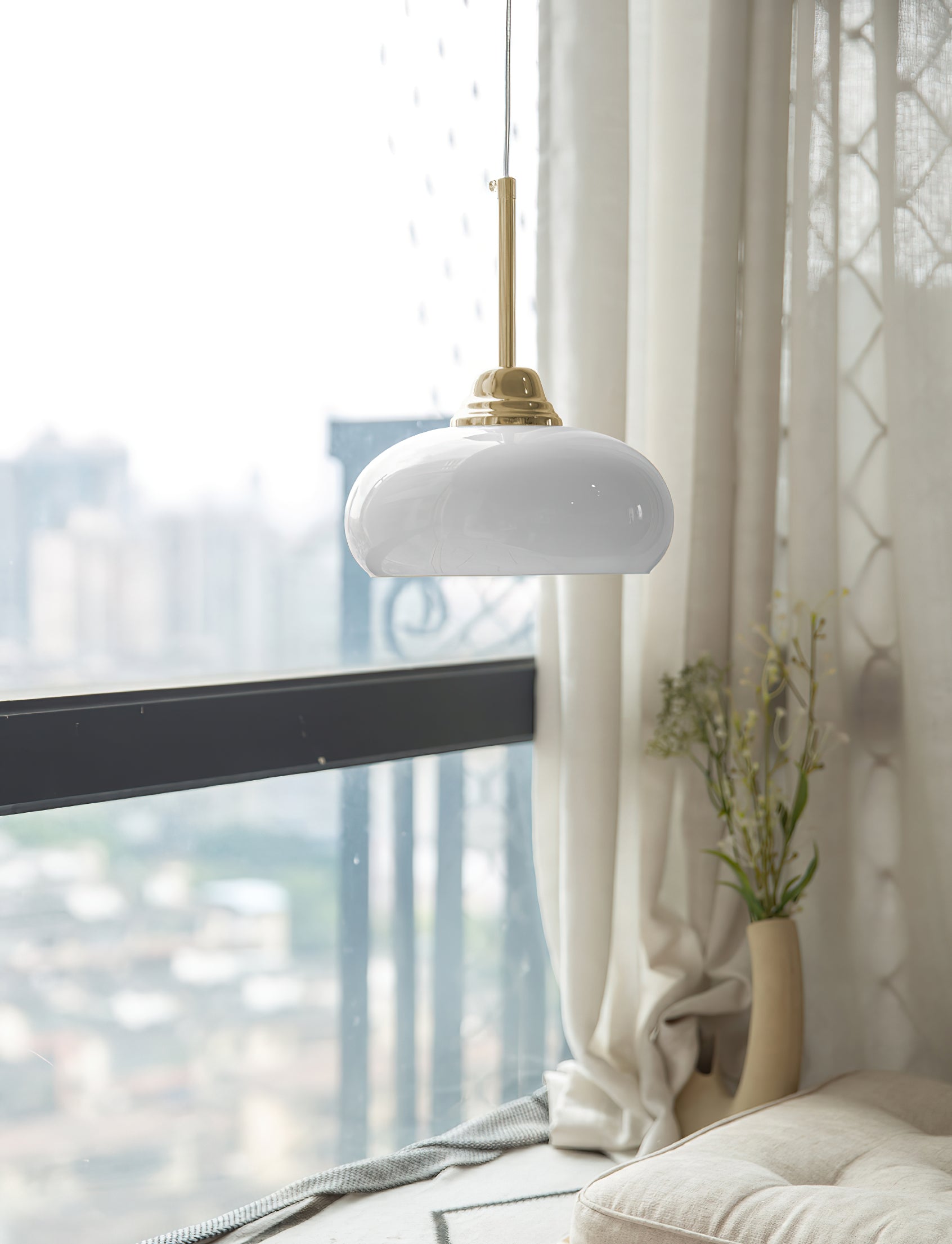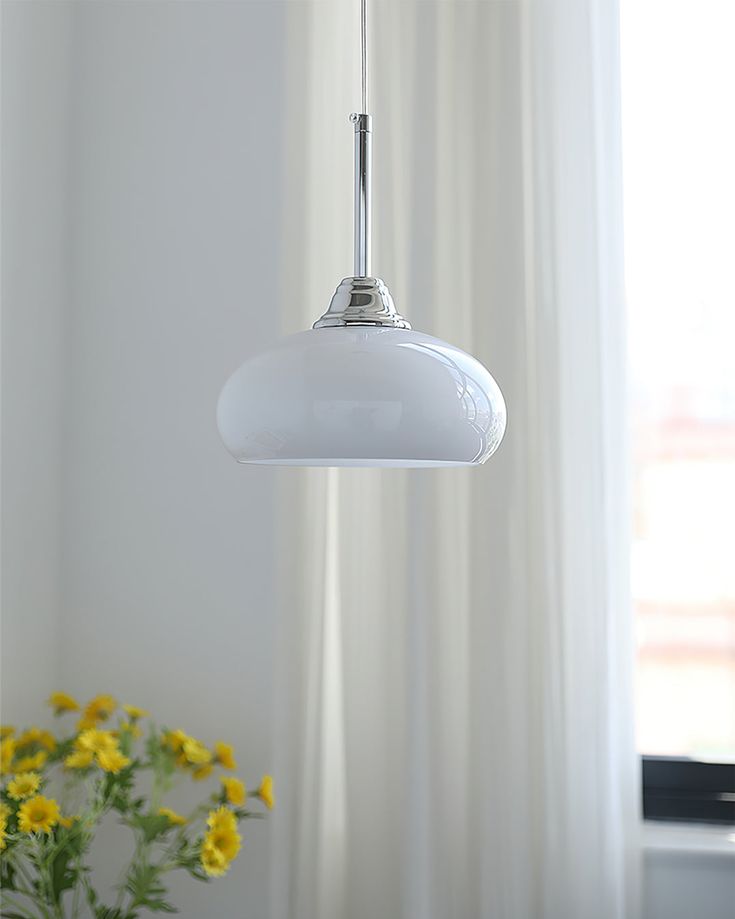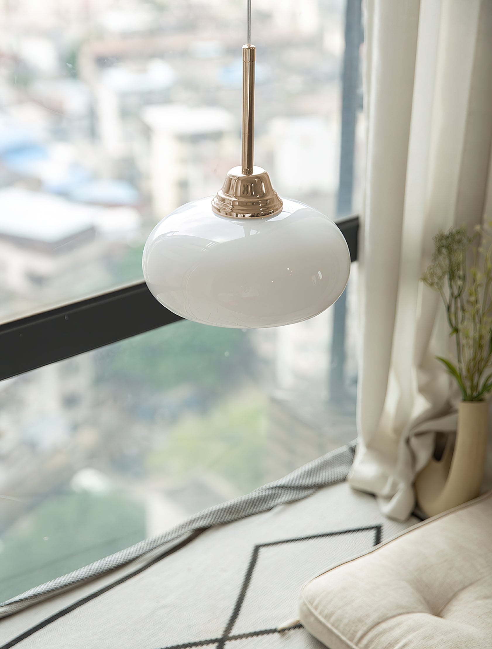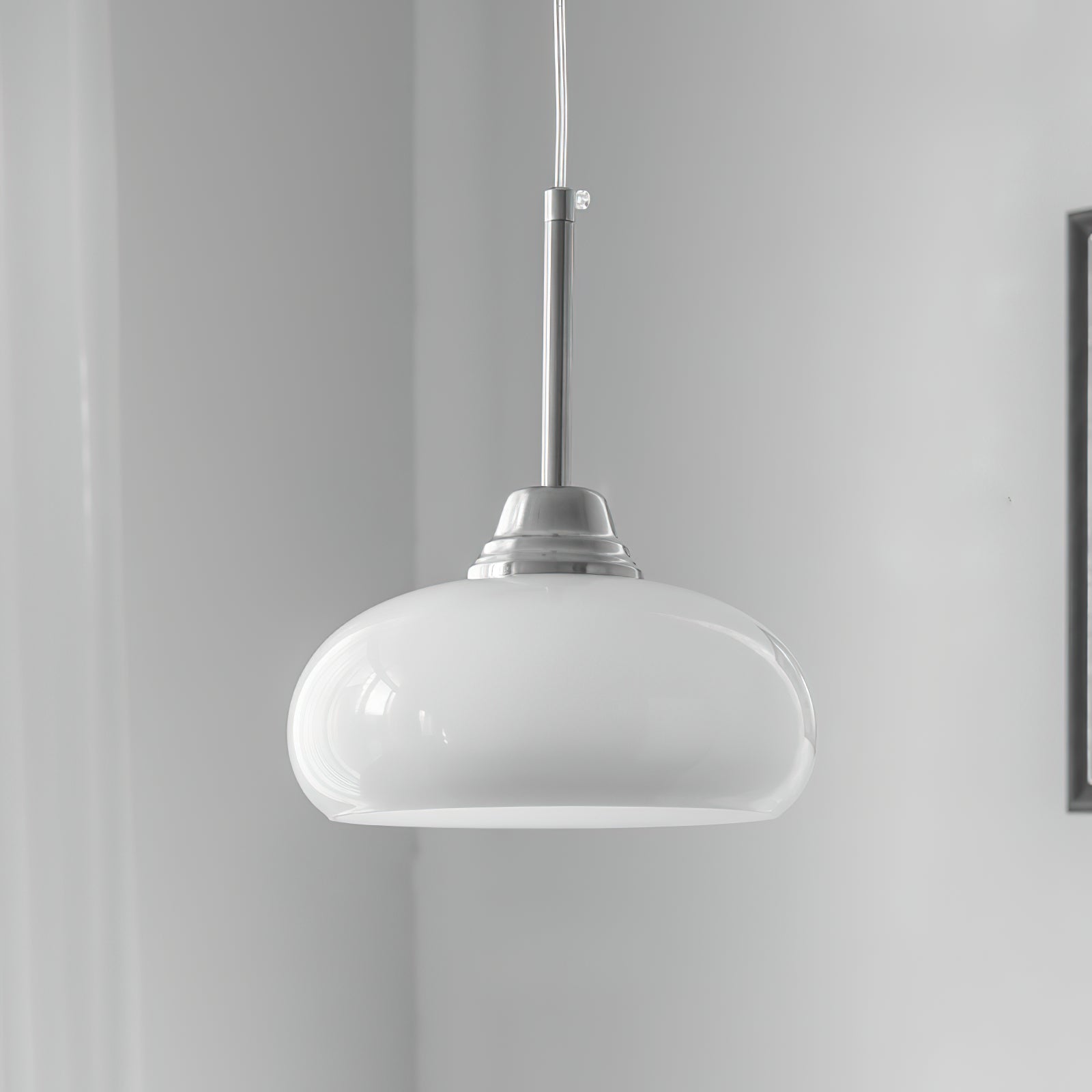 This cream glass pendant lamp brings an elegant touch to your home interior. Its soft glow casts a delightful warmth, illuminating the space in a cozy harmony. Transform your living space today and experience the luxurious feeling of home!