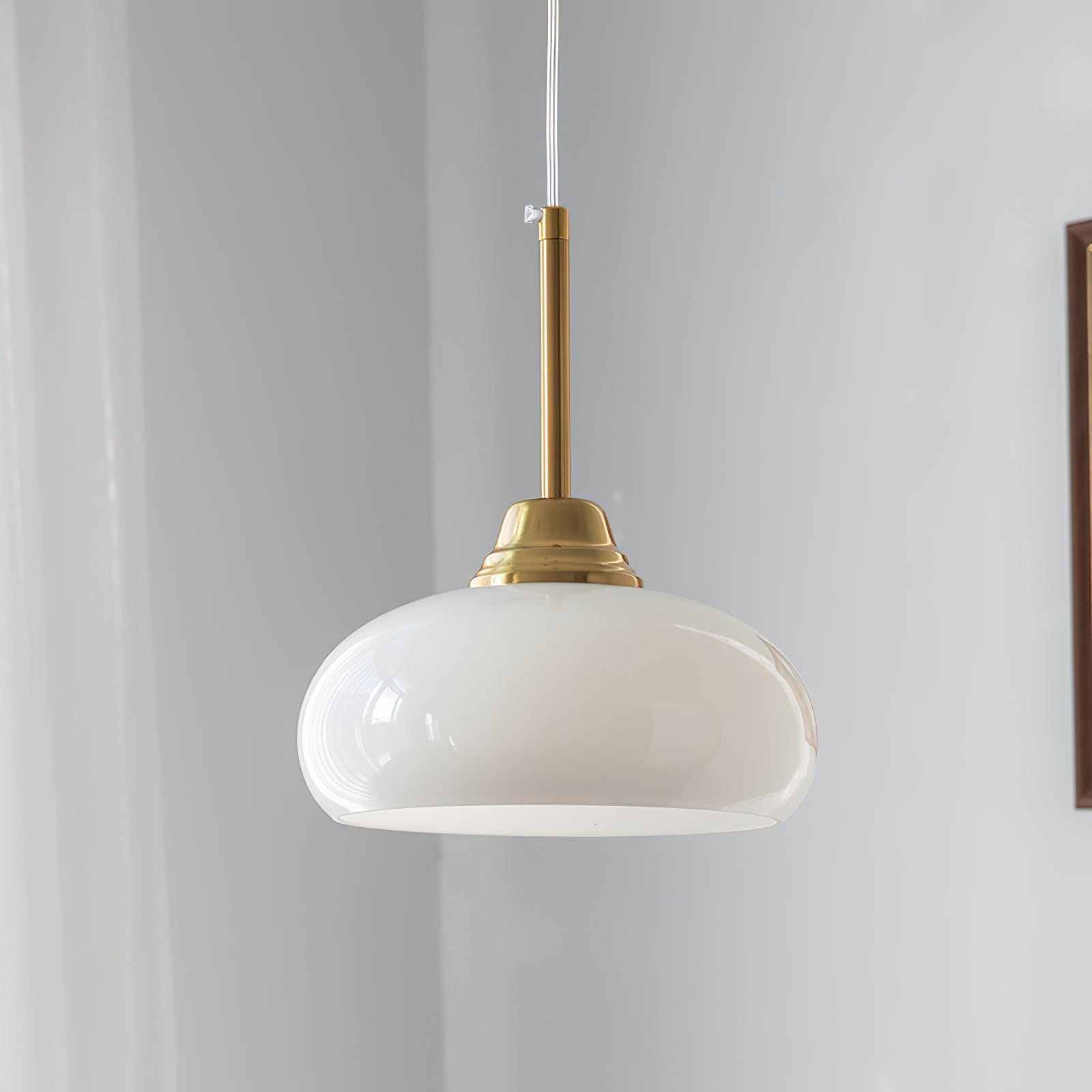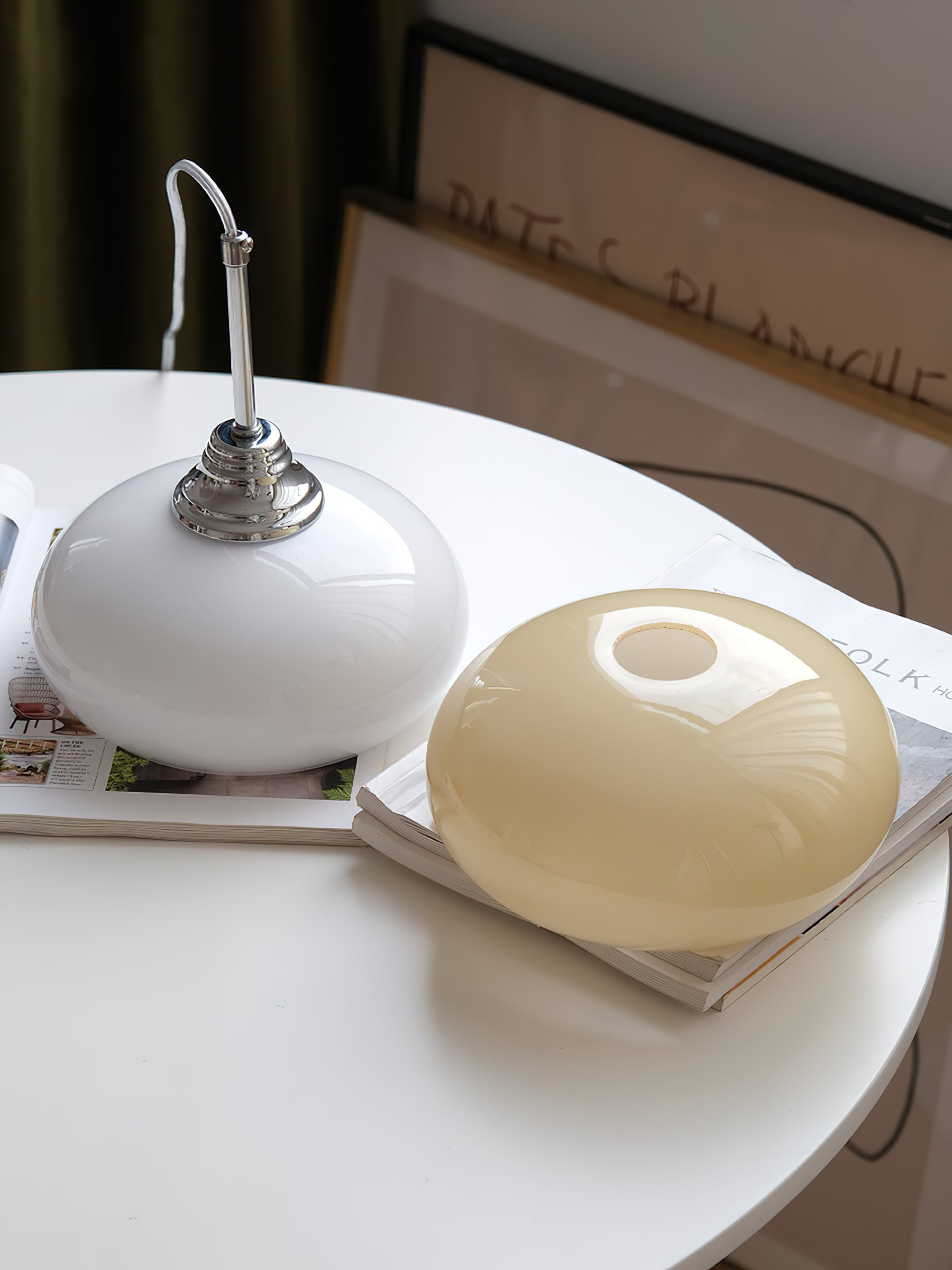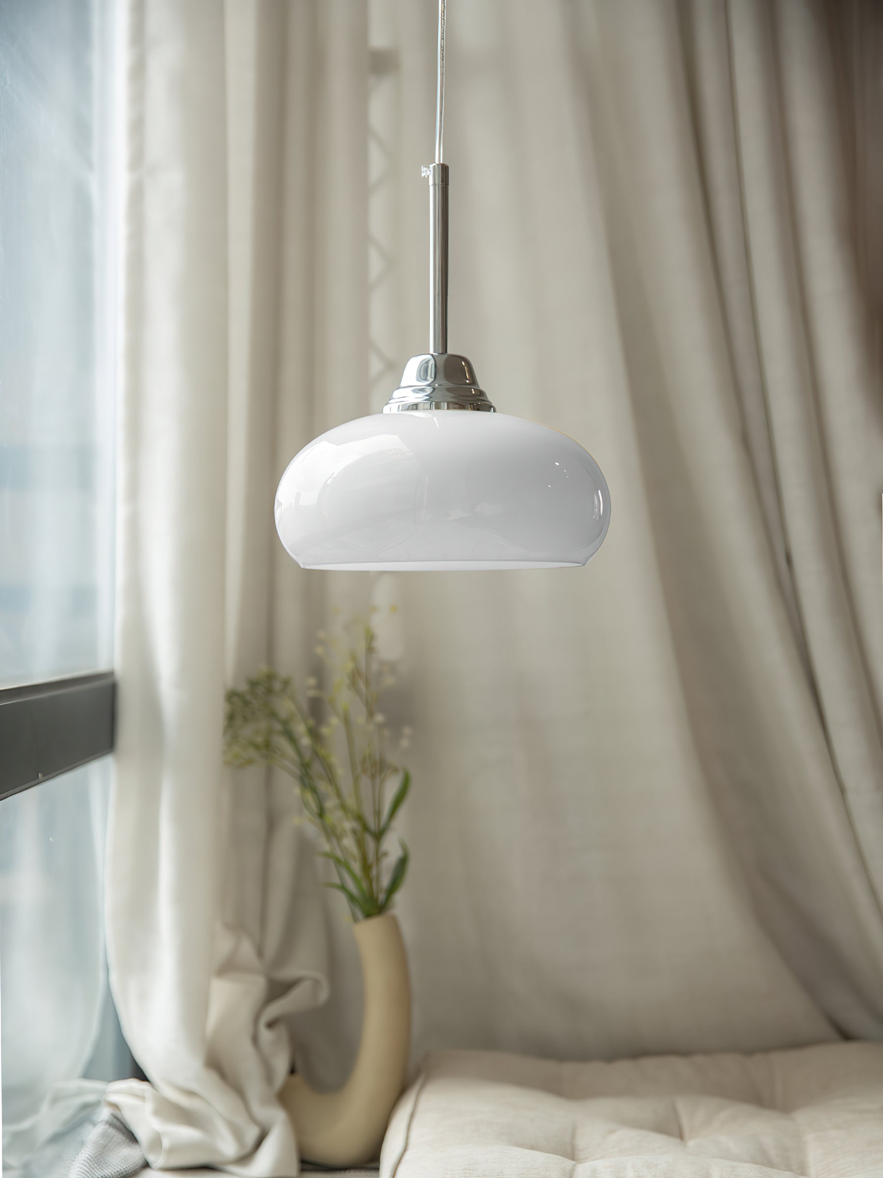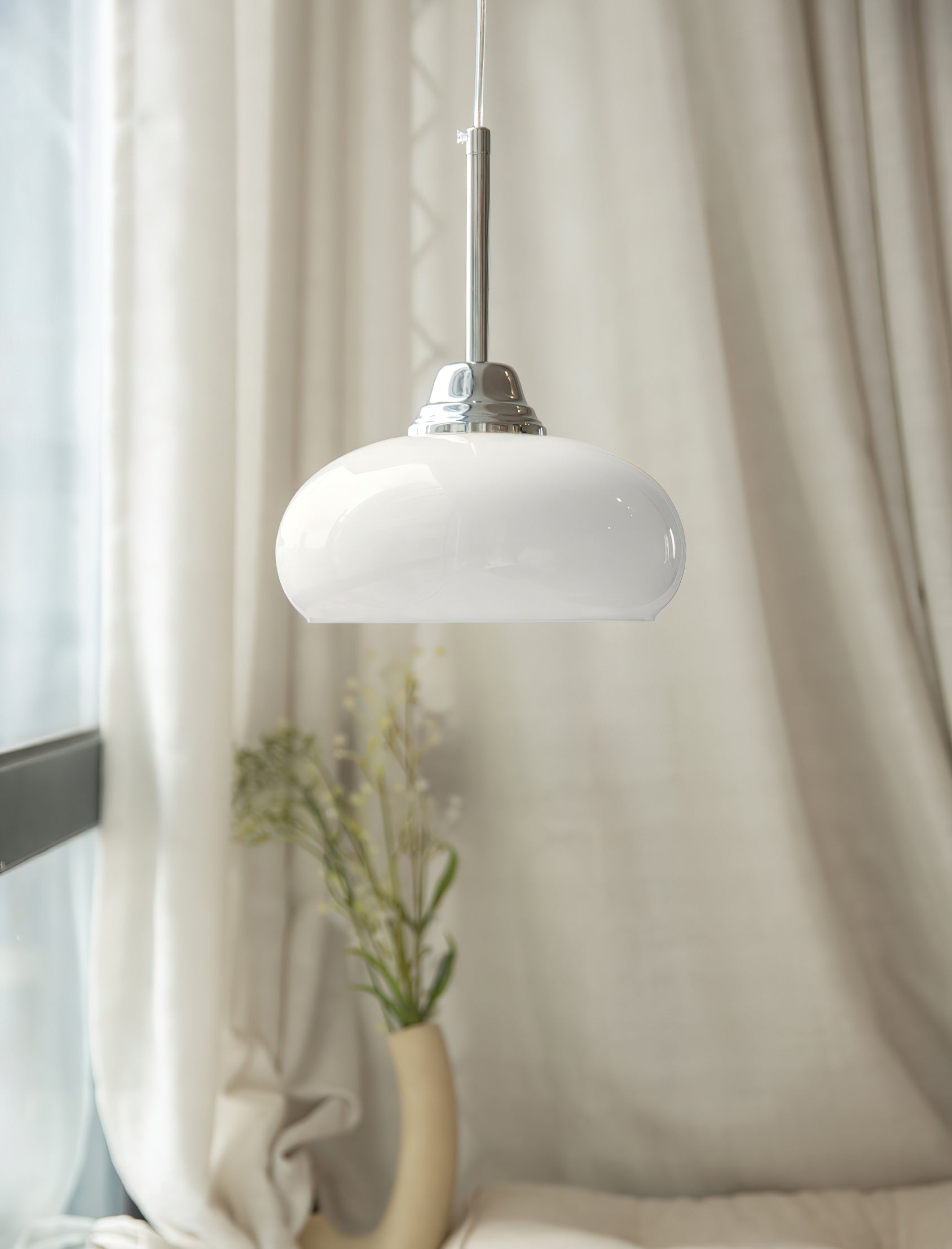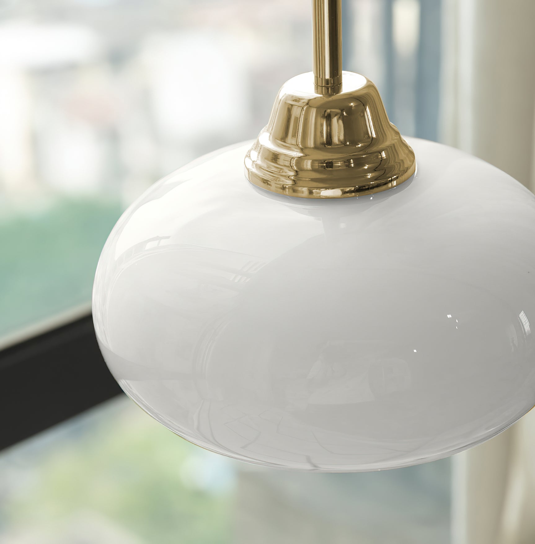 This cream glass pendant lamp brings an elegant touch to your home interior. Its soft glow casts a delightful warmth, illuminating the space in a cozy harmony. Transform your living space today and experience the luxurious feeling of home!