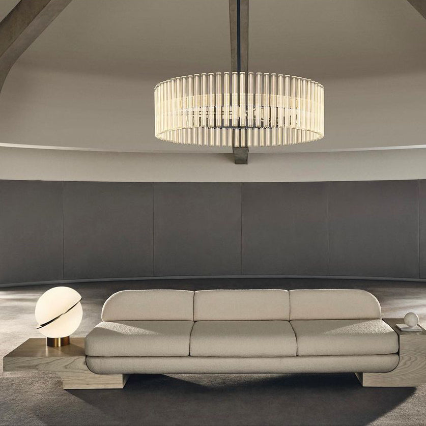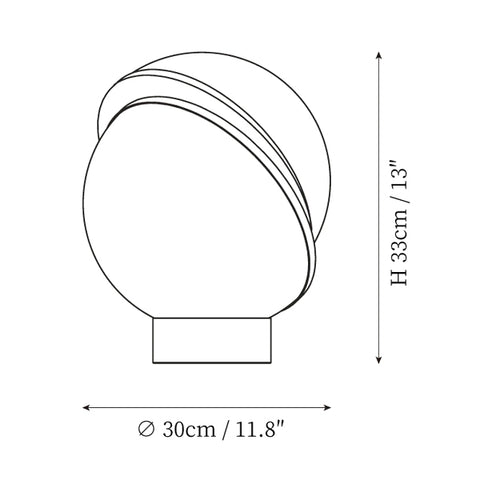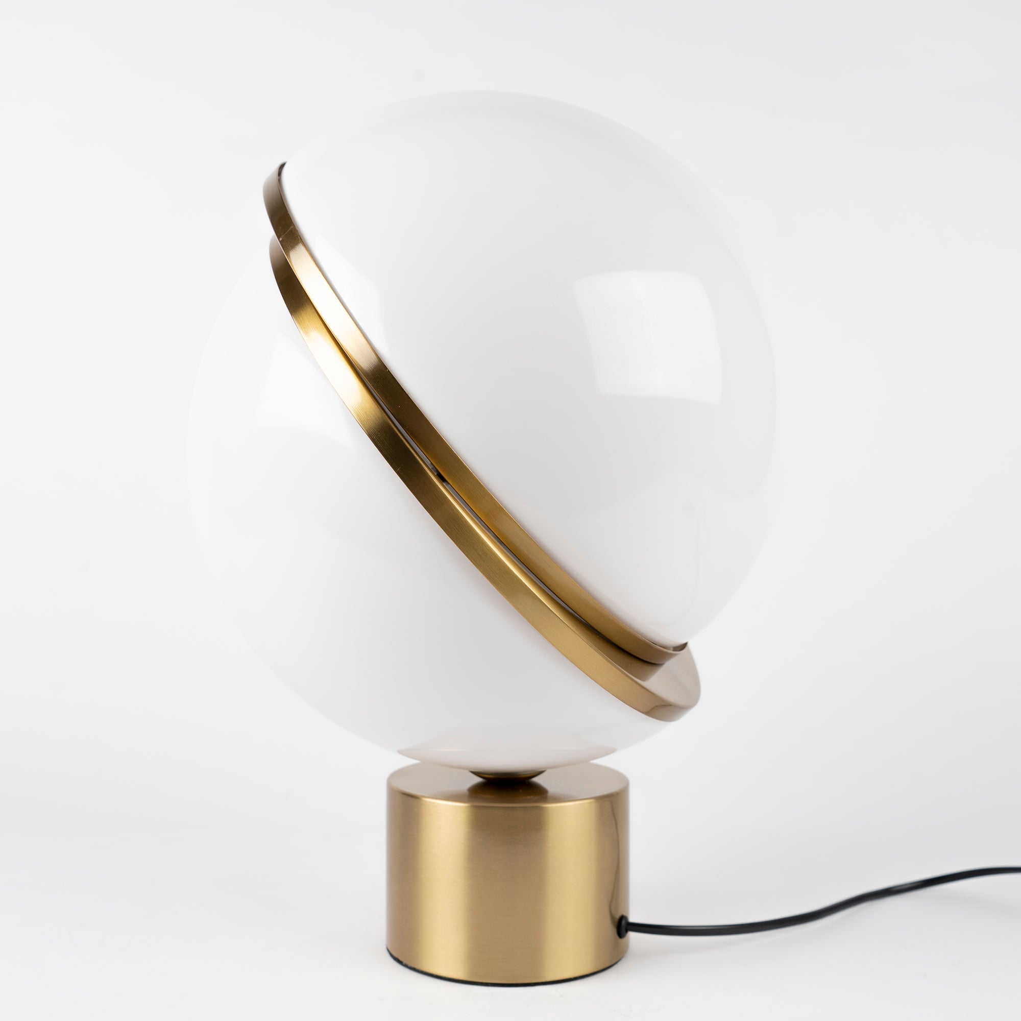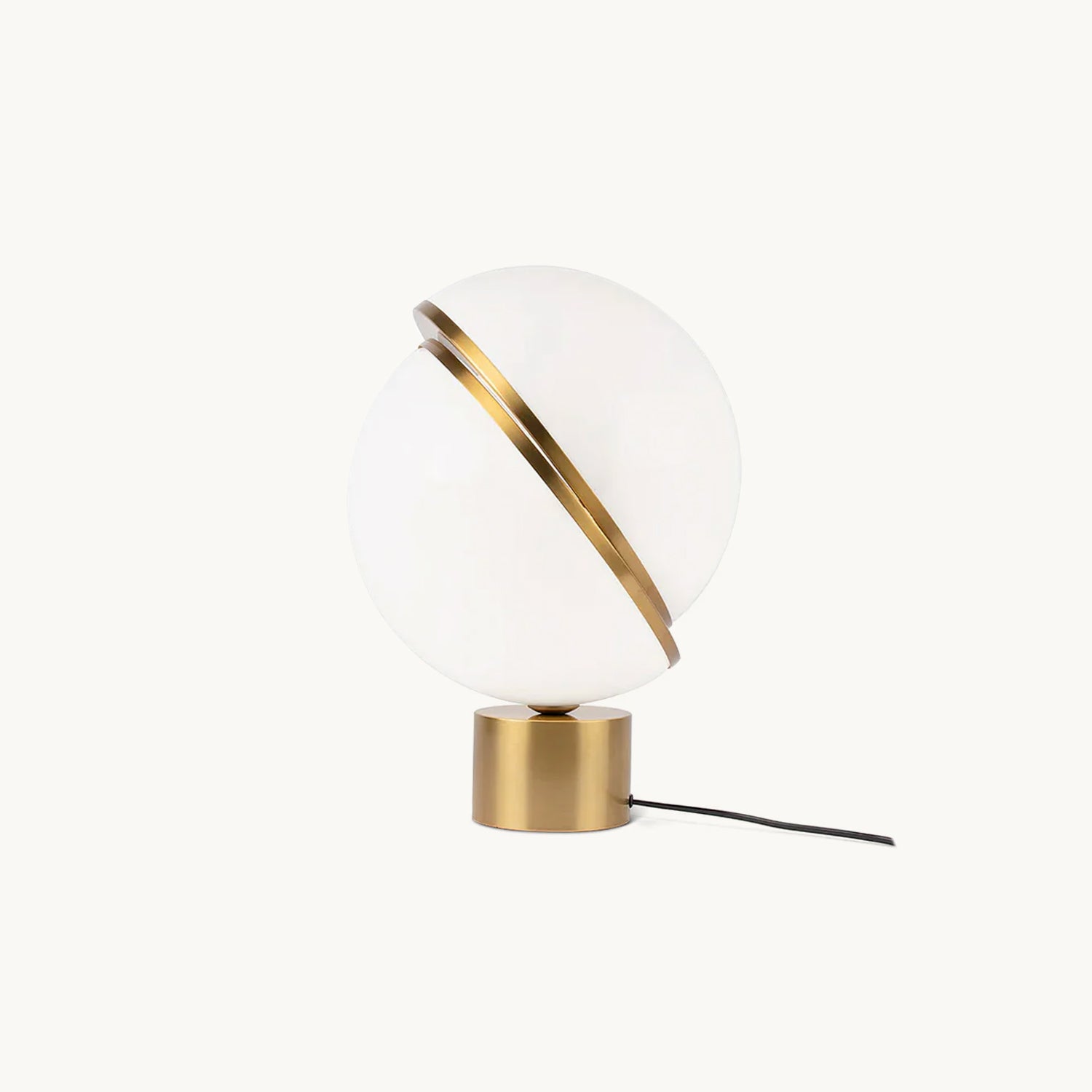 A miniature version of the popular Crescent Light, these illuminated spheres are sliced asymmetrically in half to reveal a crescent-shaped brushed brass fascia. Crescent Table Lamp is an illuminated white opaque acrylic sphere sliced in half. Crescent seamlessly combines the solid and the opaque making this perfect in any setting.