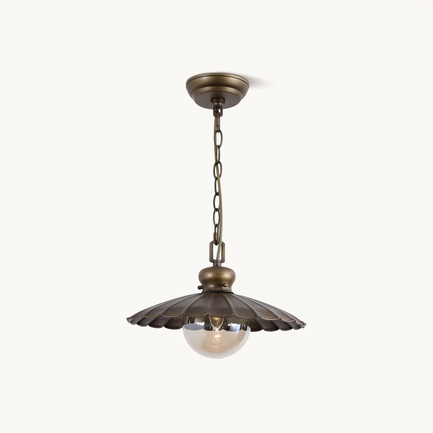 The Crislett Pendant Lamp by Mooijane draws inspiration from the natural elegance of seashells, blending metal and glass in perfect harmony. Its brushed iron shade features layered, shell-like ridges that create a refined three-dimensional texture, while the spherical glass diffuser casts a warm, inviting glow. Balancing vintage charm with modern sophistication, this pendant lamp is ideal for dining rooms, entryways, or cozy nooks—bringing a touch of ocean-inspired serenity to any interior.