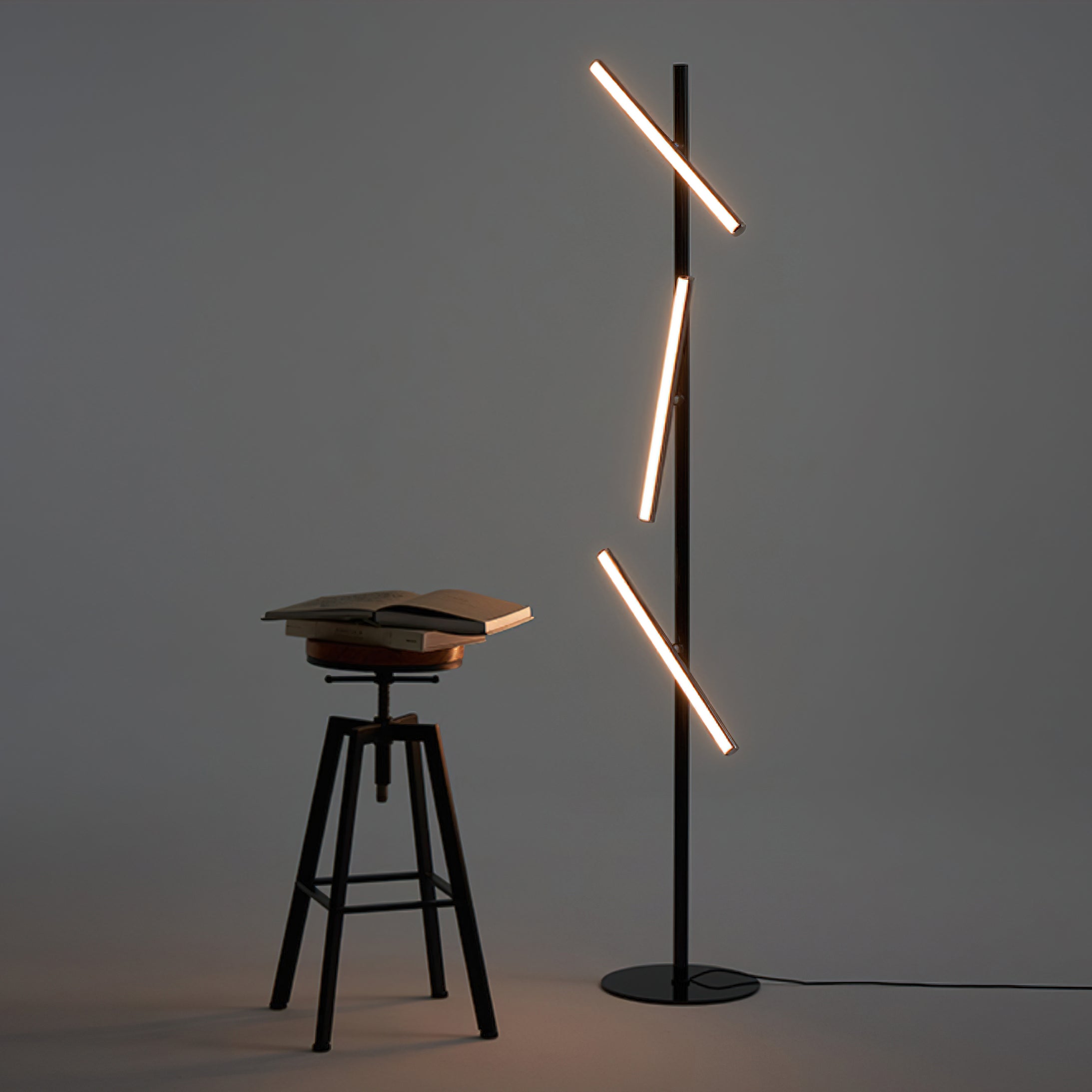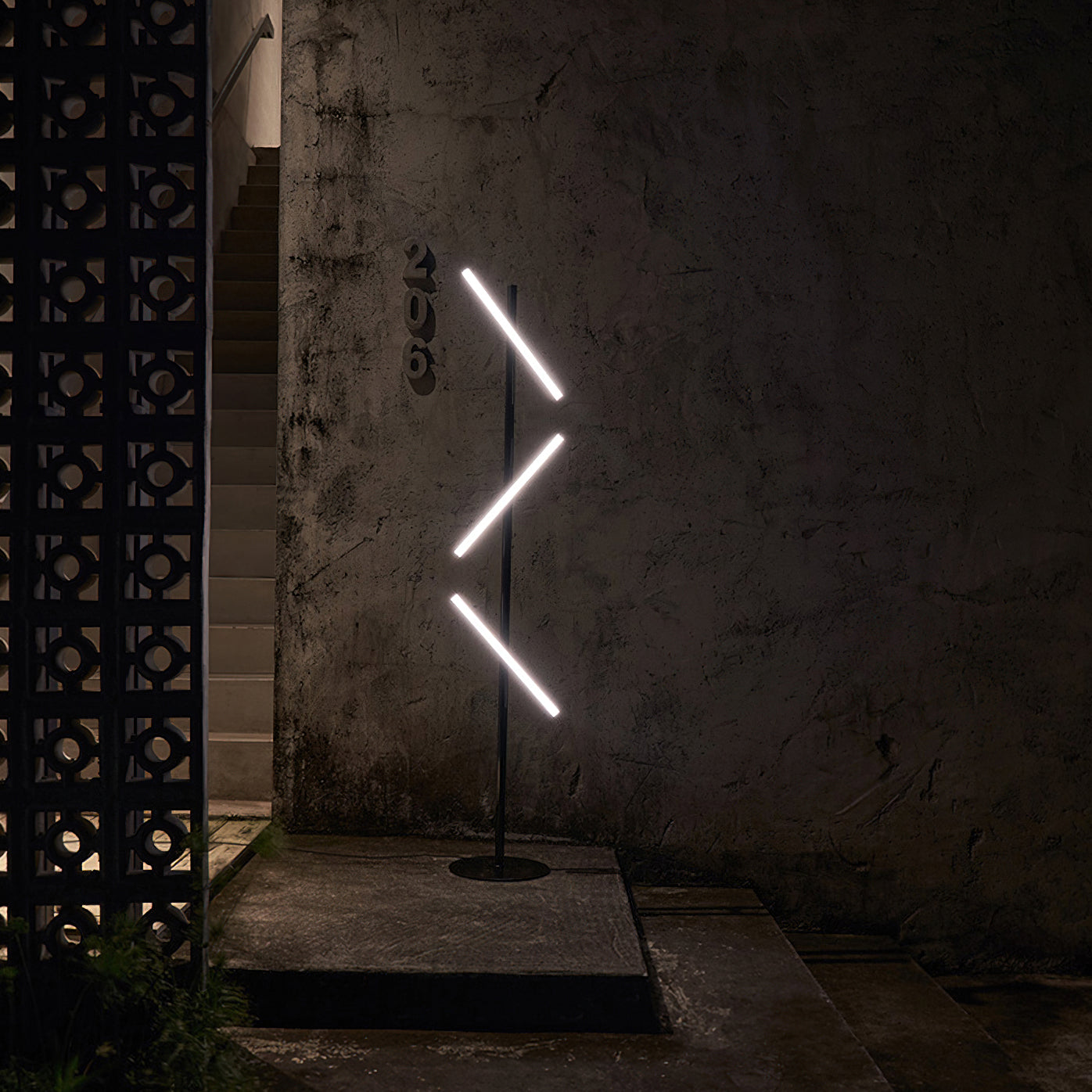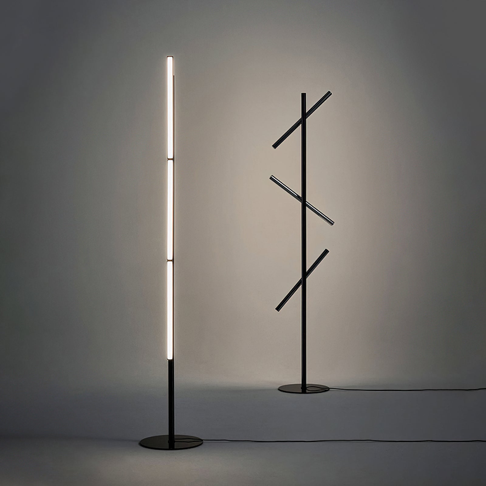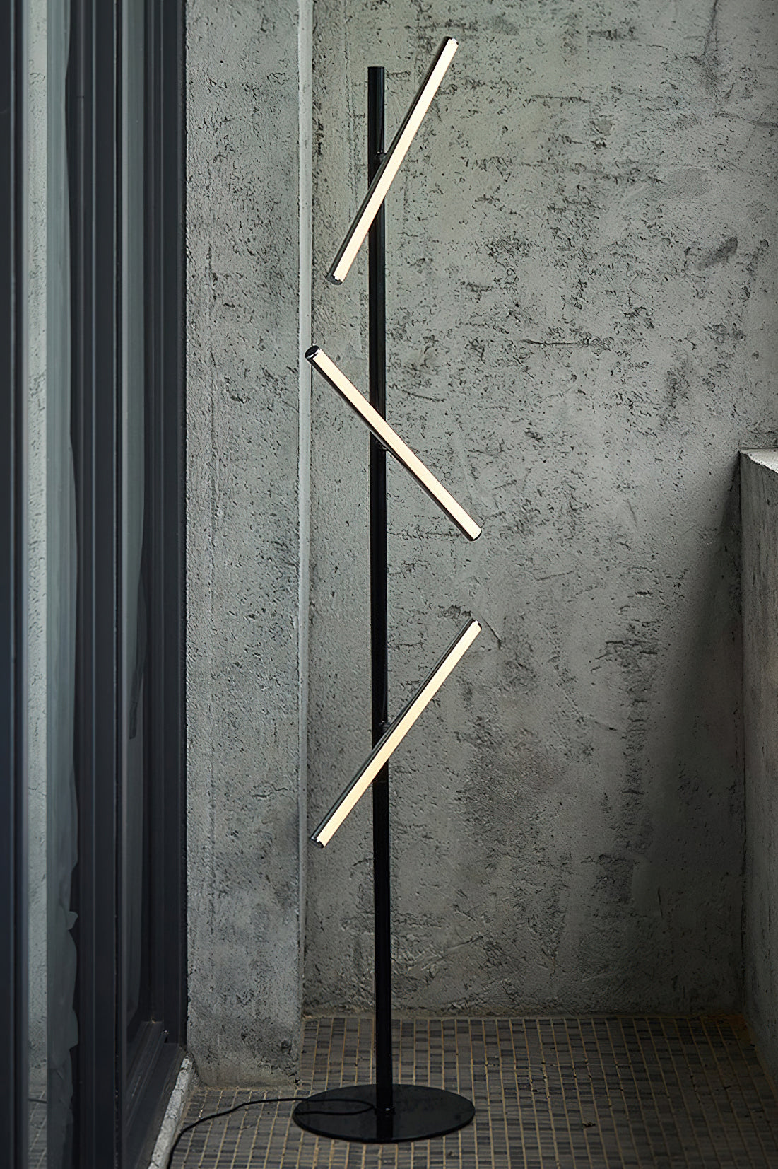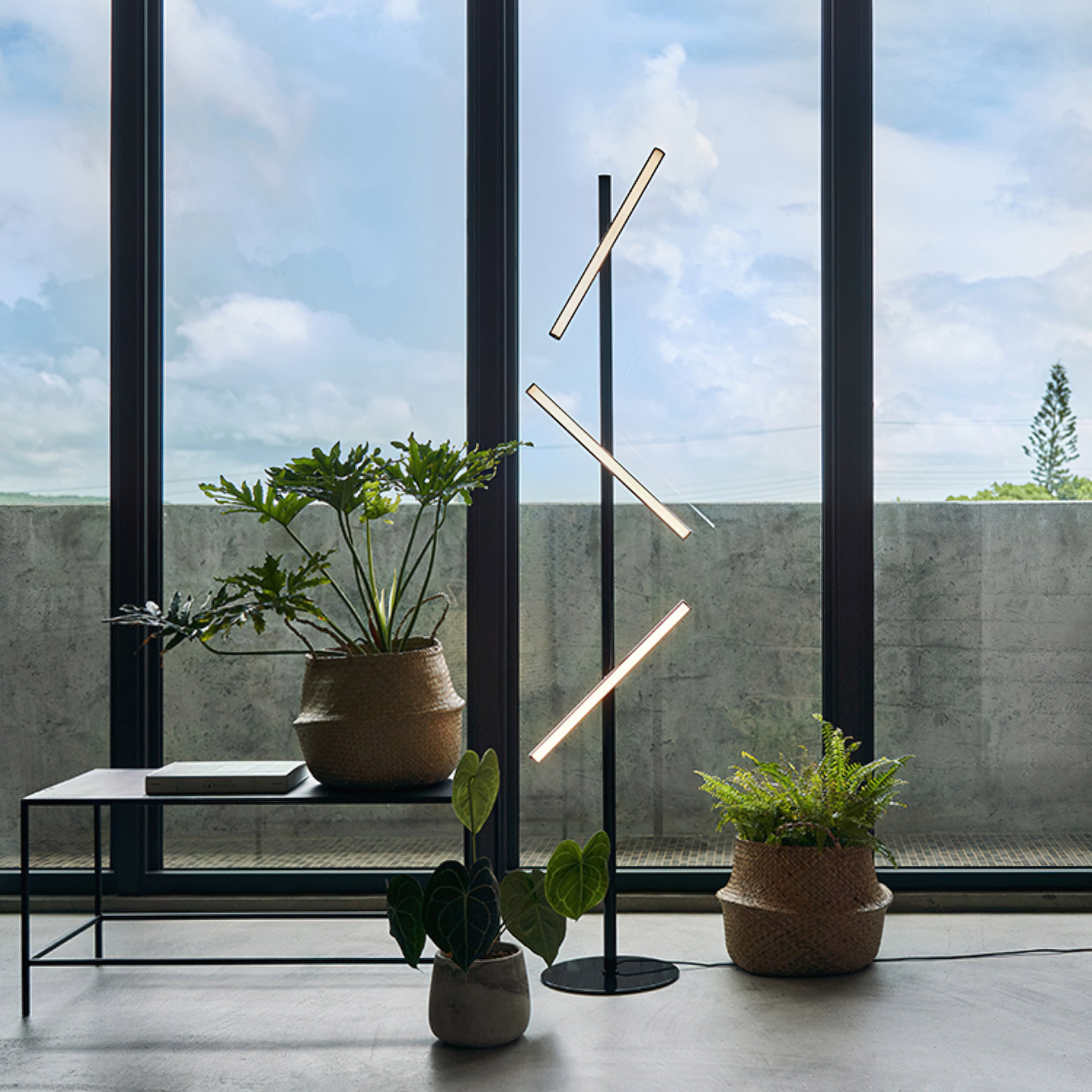 This floor lamp combines pure lines with multiple gestures. Abandoning redundant modeling semantics, using the imagery of light to dye space expressions, visually greatly reducing the proportion of the lamp body, lightly eliminating glare with unobtrusive grating design, and giving a natural and warm pure light shape. The neat and parallel characters, and the light flowing along the room between the turns, makes people feel the diverse visual interest. Relying on the smooth cross-level steering, the structure is ingenious and graceful, and a series of magical and changeable feasts of light and shadows are created by wanton manipulation.
