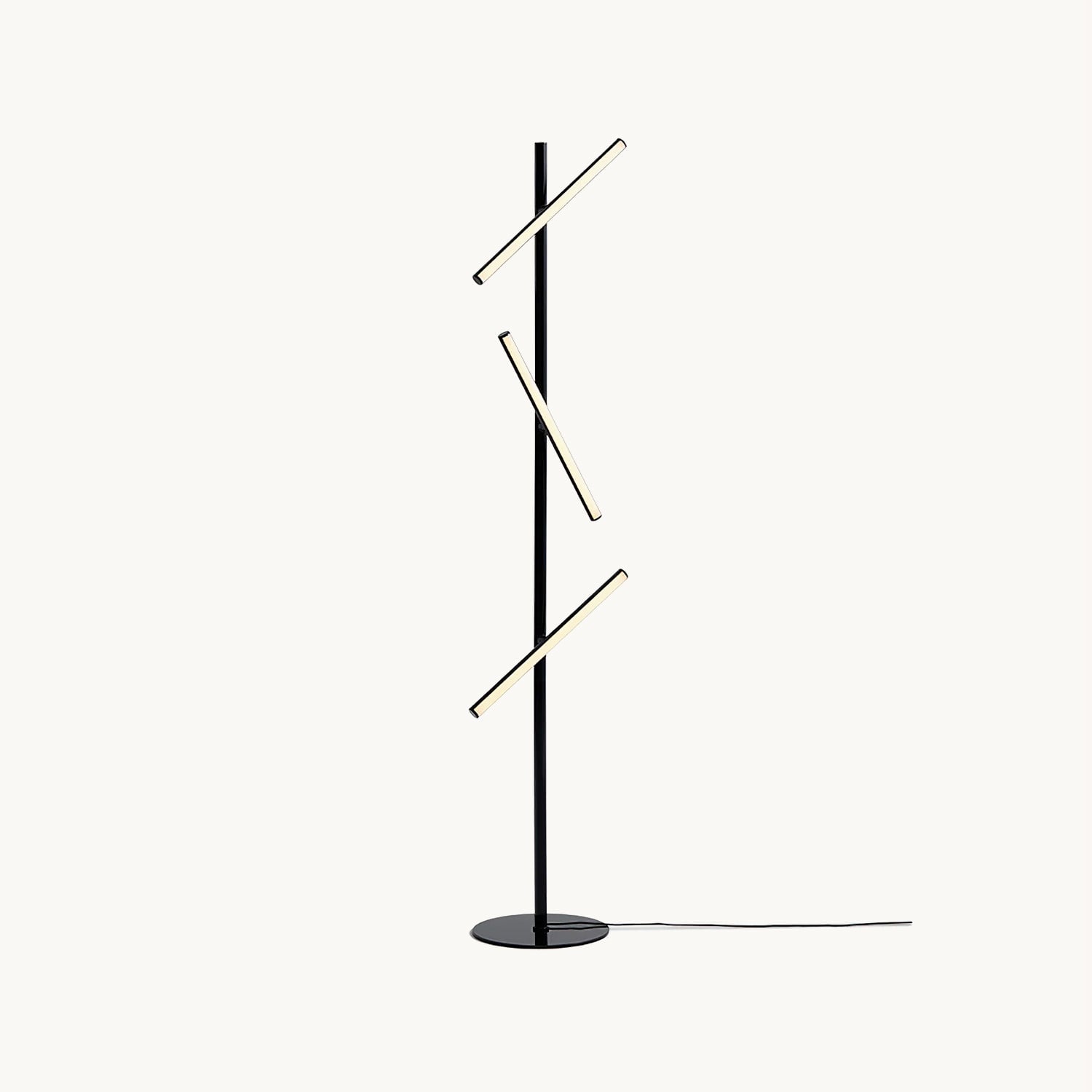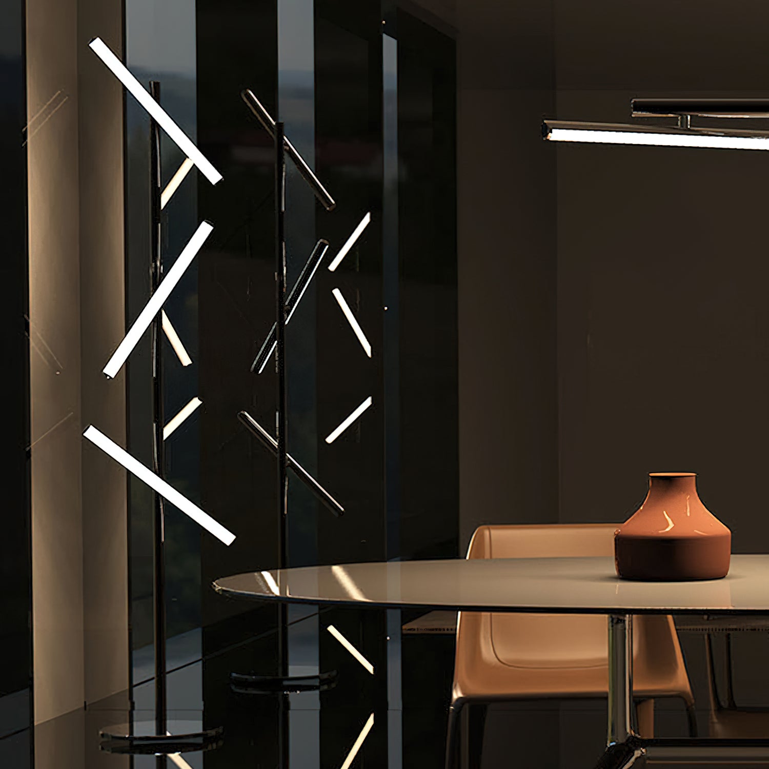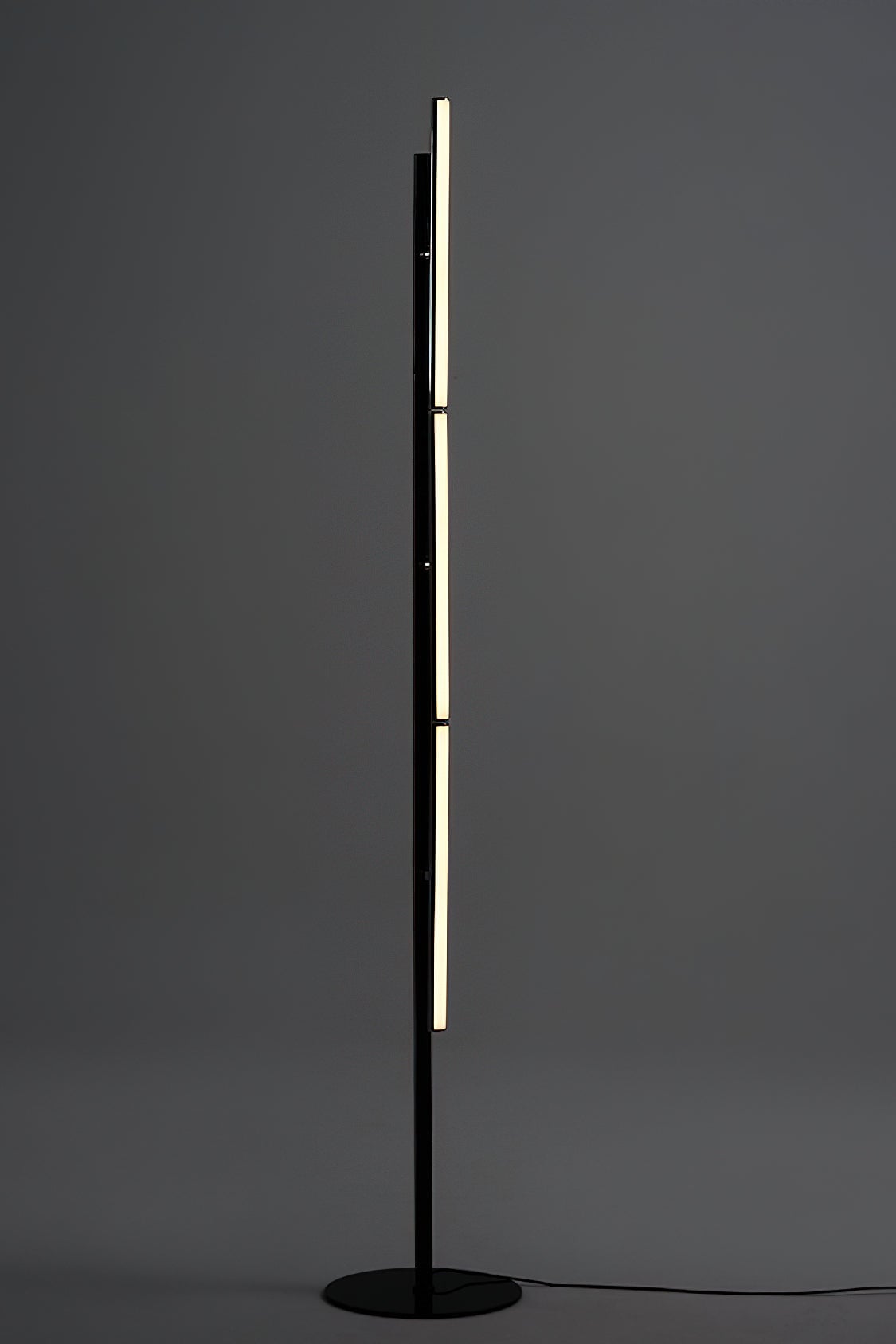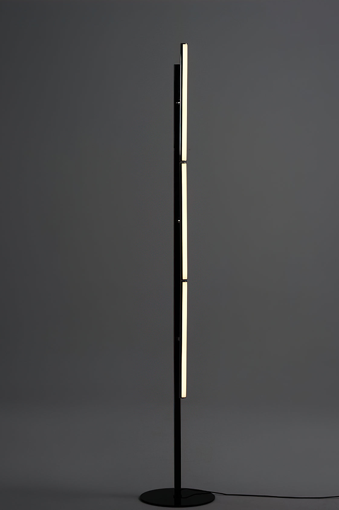 This floor lamp combines pure lines with multiple gestures. Abandoning redundant modeling semantics, using the imagery of light to dye space expressions, visually greatly reducing the proportion of the lamp body, lightly eliminating glare with unobtrusive grating design, and giving a natural and warm pure light shape. The neat and parallel characters, and the light flowing along the room between the turns, makes people feel the diverse visual interest. Relying on the smooth cross-level steering, the structure is ingenious and graceful, and a series of magical and changeable feasts of light and shadows are created by wanton manipulation.