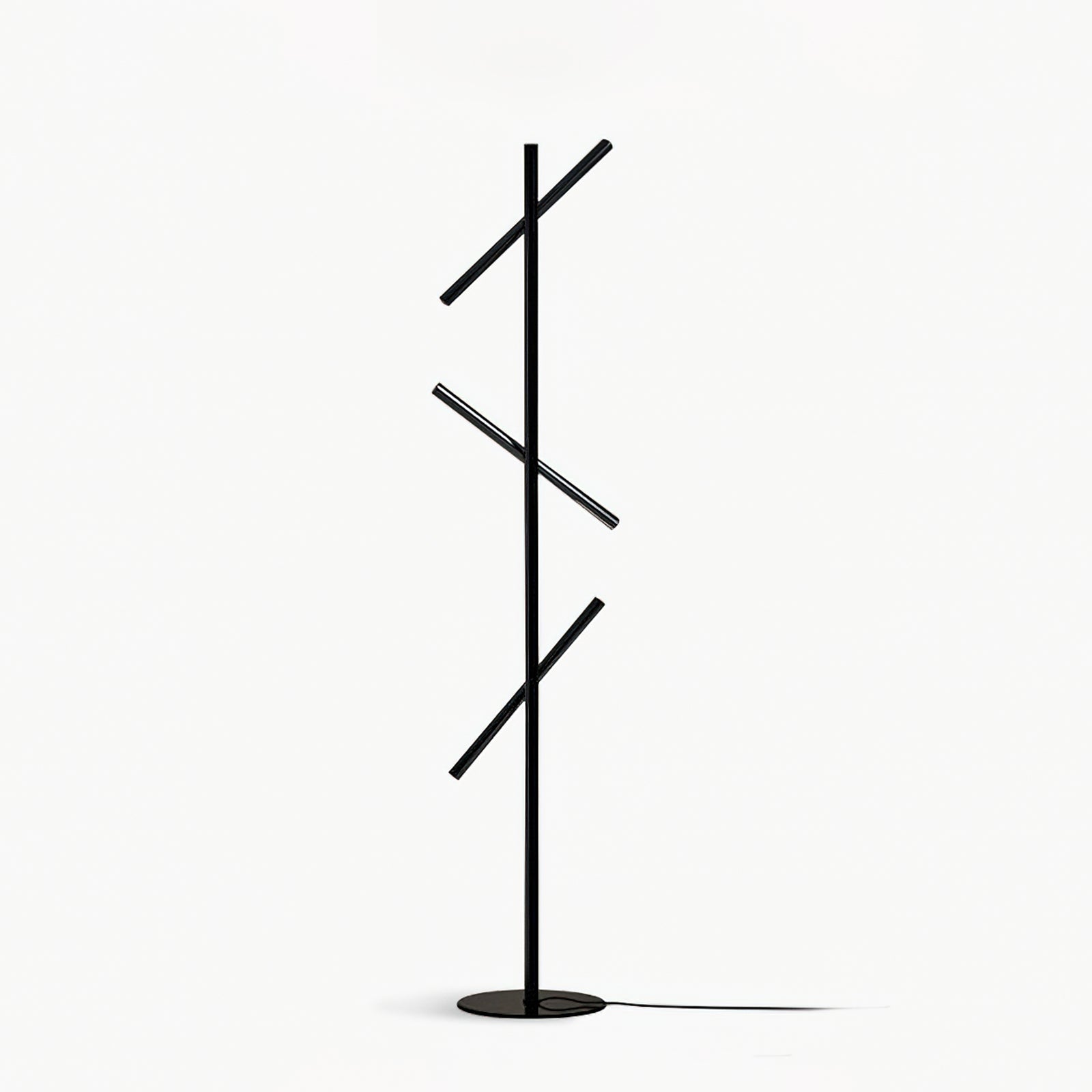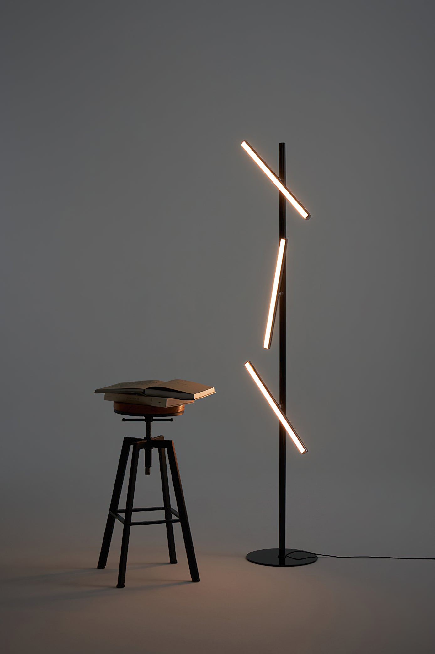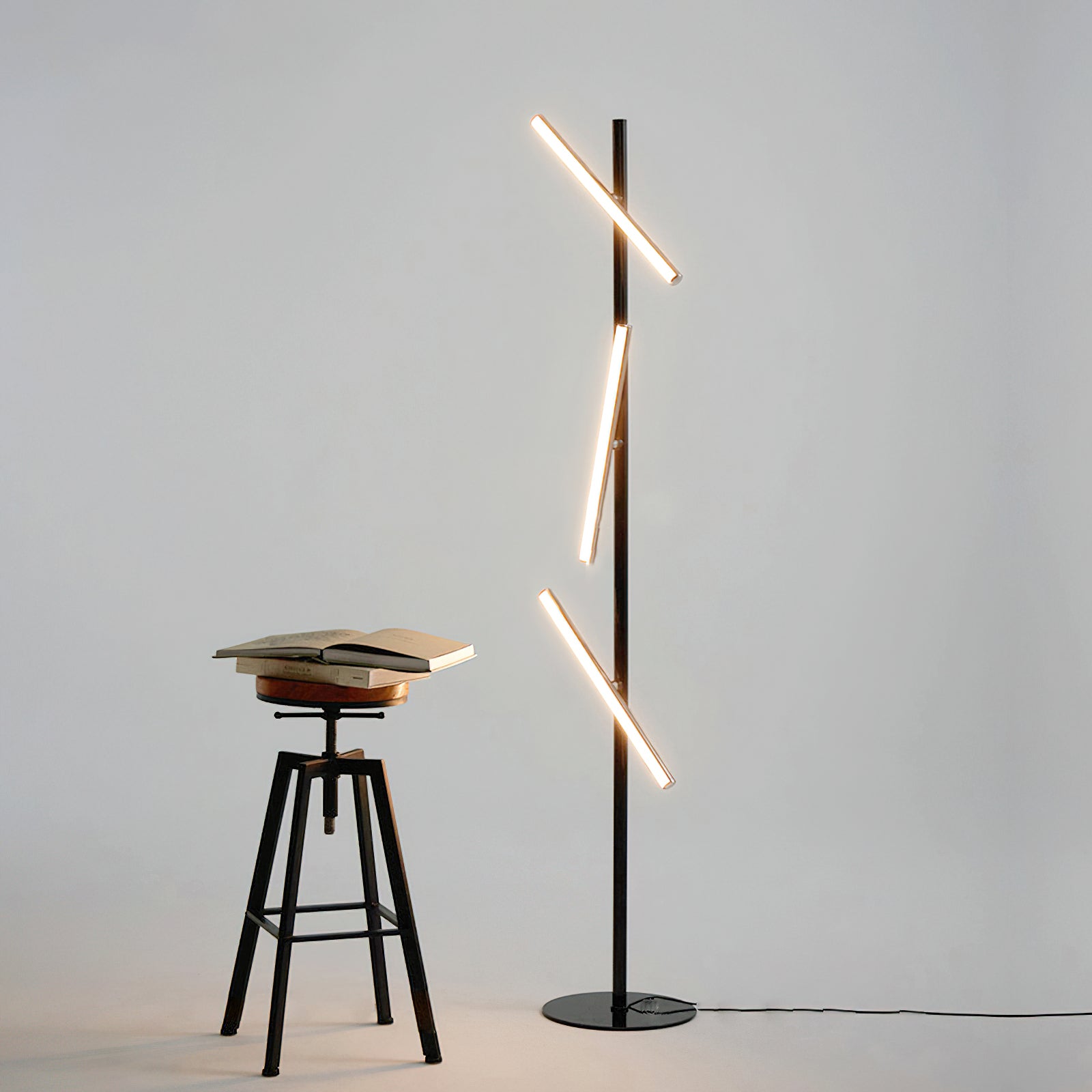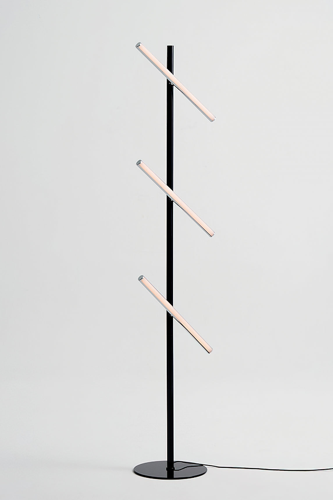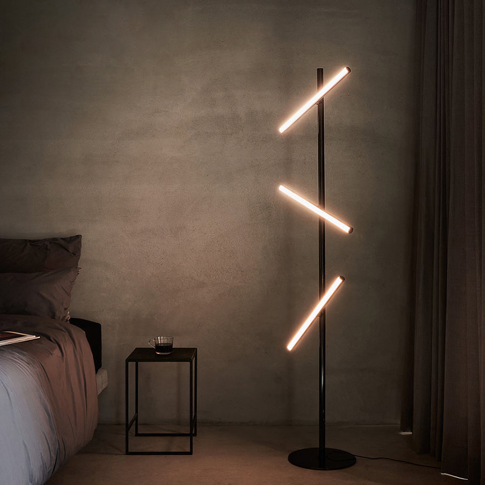 This floor lamp combines pure lines with multiple gestures. Abandoning redundant modeling semantics, using the imagery of light to dye space expressions, visually greatly reducing the proportion of the lamp body, lightly eliminating glare with unobtrusive grating design, and giving a natural and warm pure light shape. The neat and parallel characters, and the light flowing along the room between the turns, makes people feel the diverse visual interest. Relying on the smooth cross-level steering, the structure is ingenious and graceful, and a series of magical and changeable feasts of light and shadows are created by wanton manipulation.