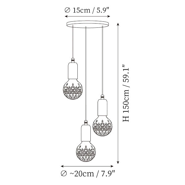 - 3 Heads Size: Dia 15cm x H 150cm / ∅ 5.9″ x H 59.1″
