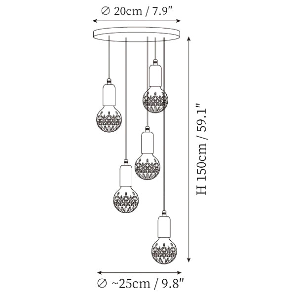 - 5 Heads Size: Dia 20cm x H 150cm / ∅ 7.9″ x H 59.1″