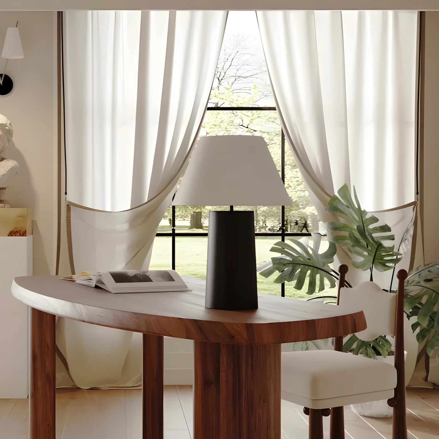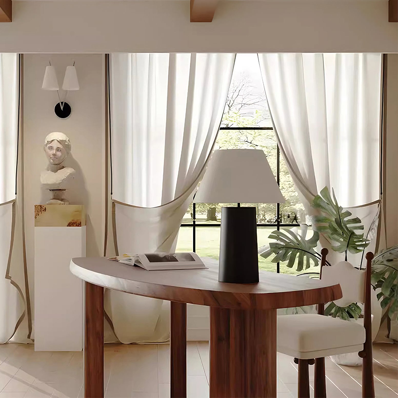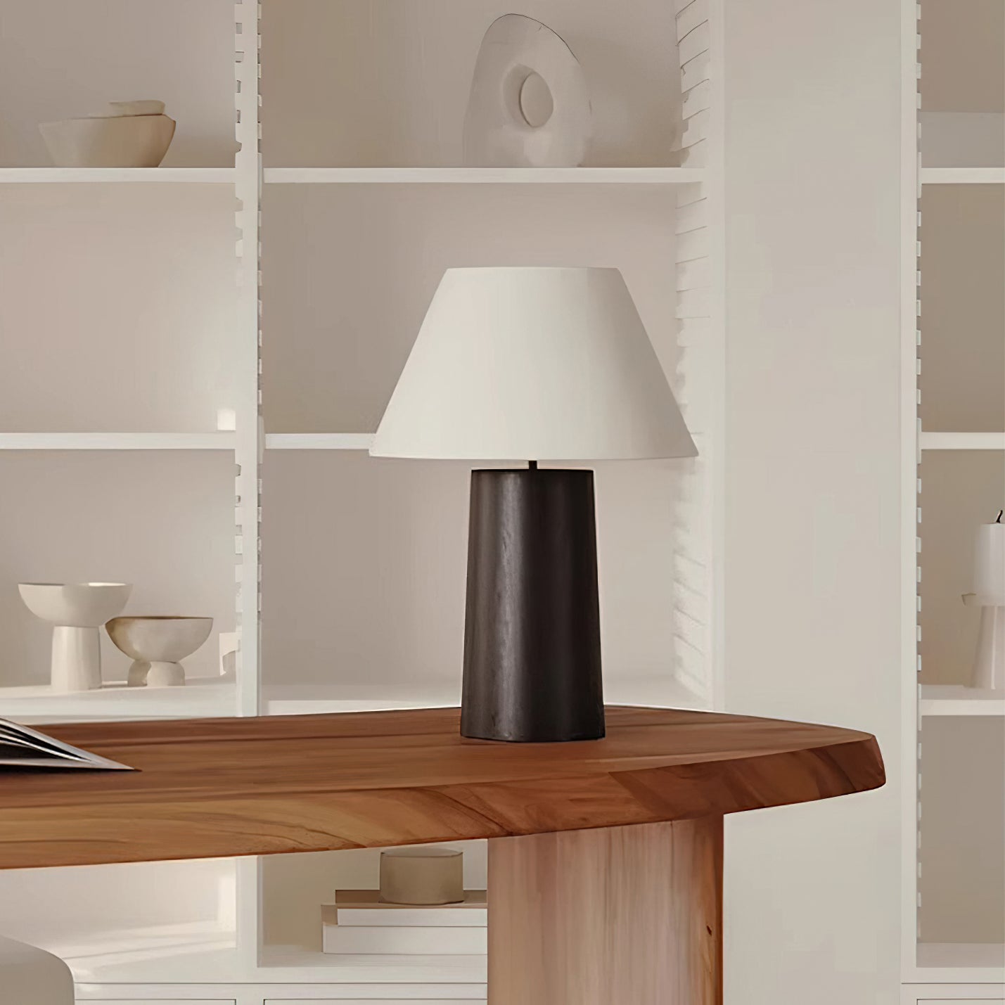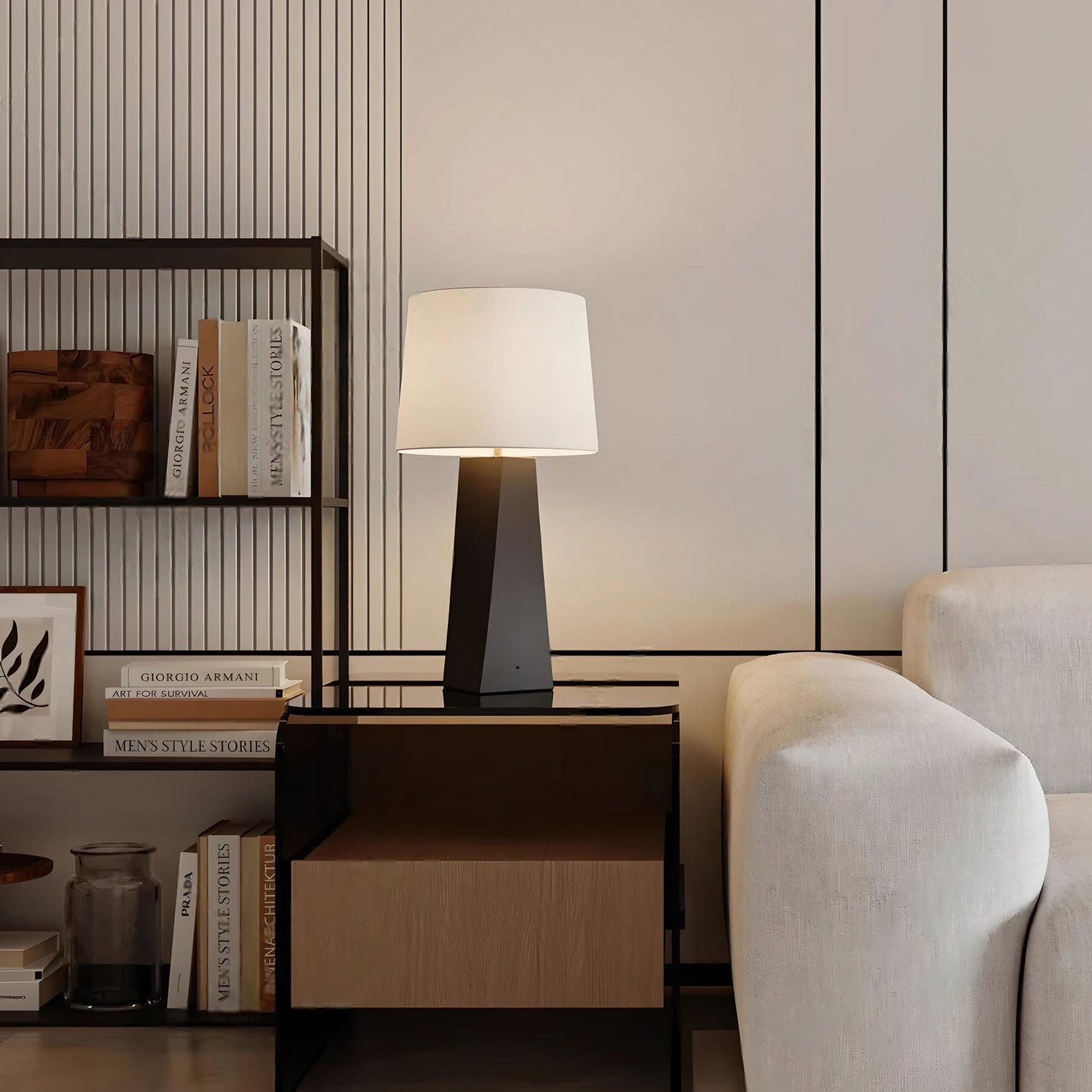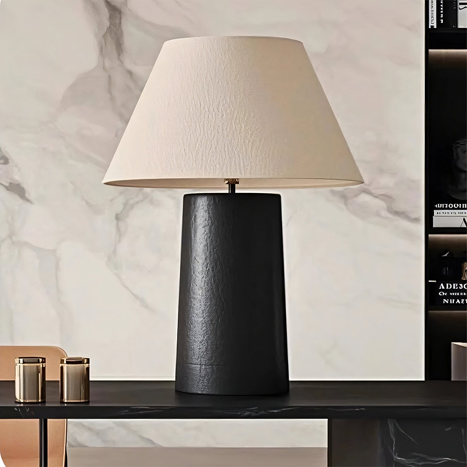 The Culver Table Lamp by Mooijane blends modern simplicity with timeless elegance. Featuring a geometric metal base for stability and a fabric lampshade that diffuses a soft, cozy glow, it creates a warm ambiance in any room. Ideal for desks, nightstands, or living room corners, this lamp complements modern, industrial, and vintage-style interiors with ease.