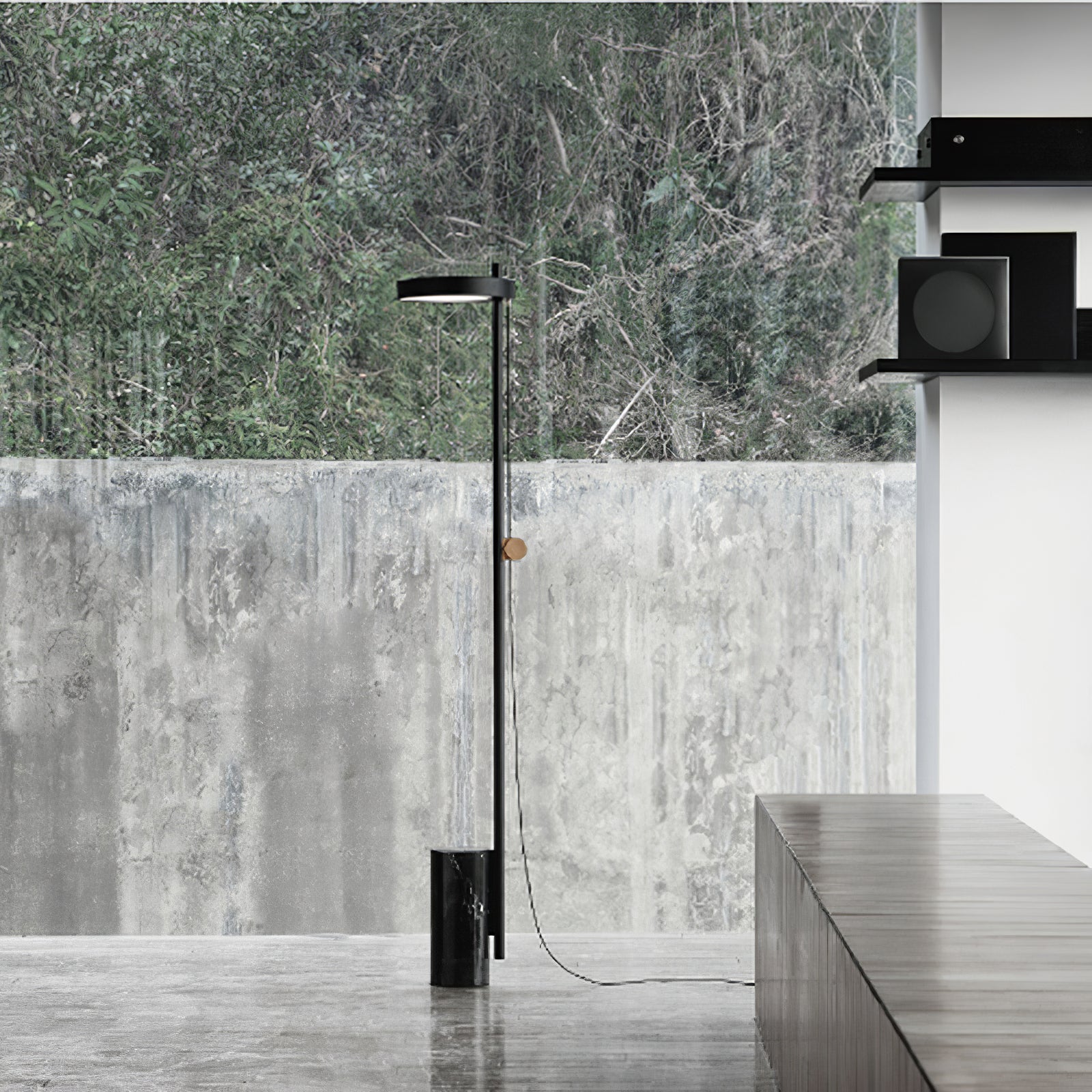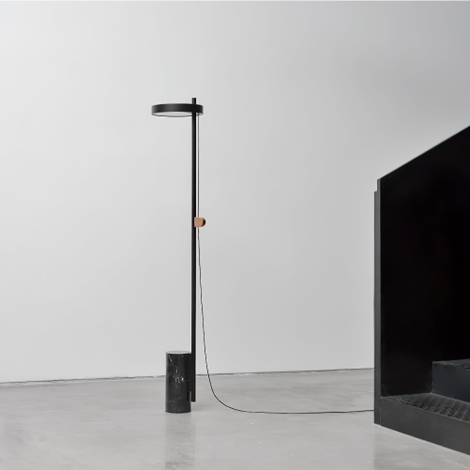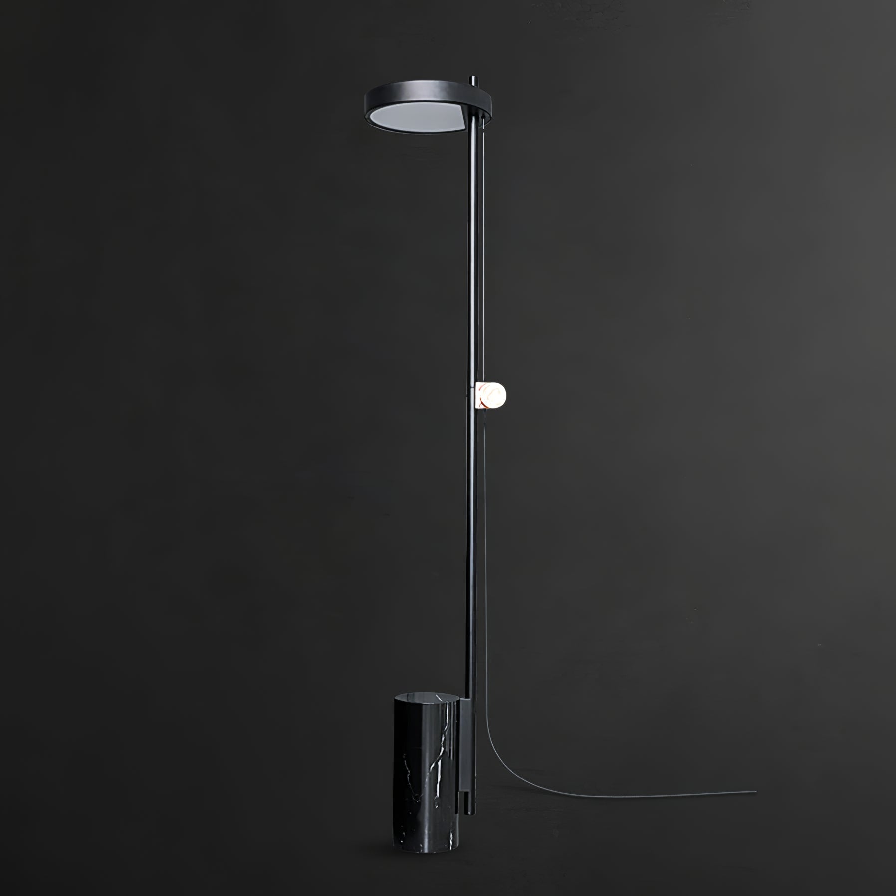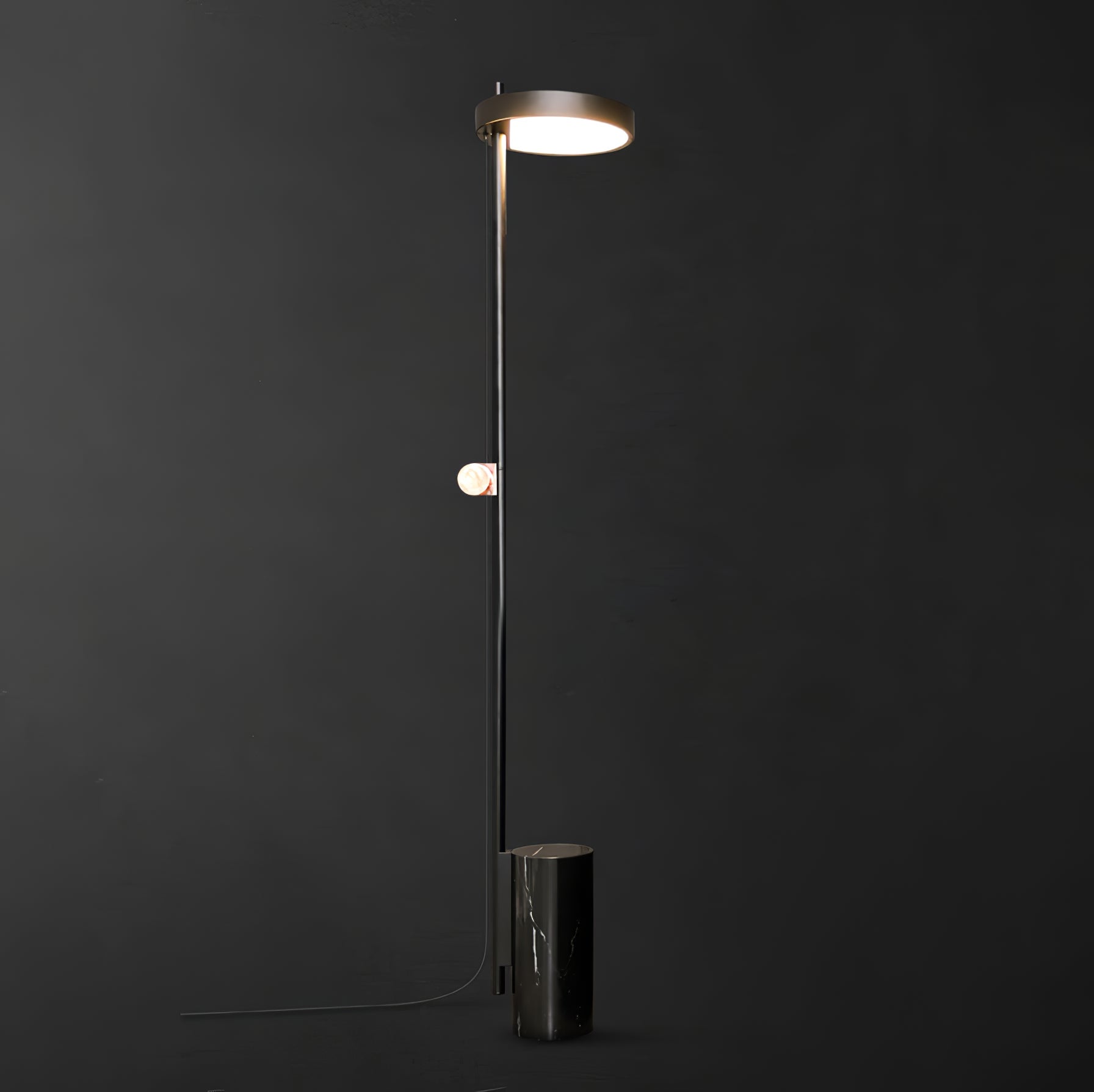 The cylinder base standing floor lamp is designed for a range of different domestic settings. Held in place by a cylindrical marble, thus allowing it to be used over dining tables, seating areas, or in other scenarios.