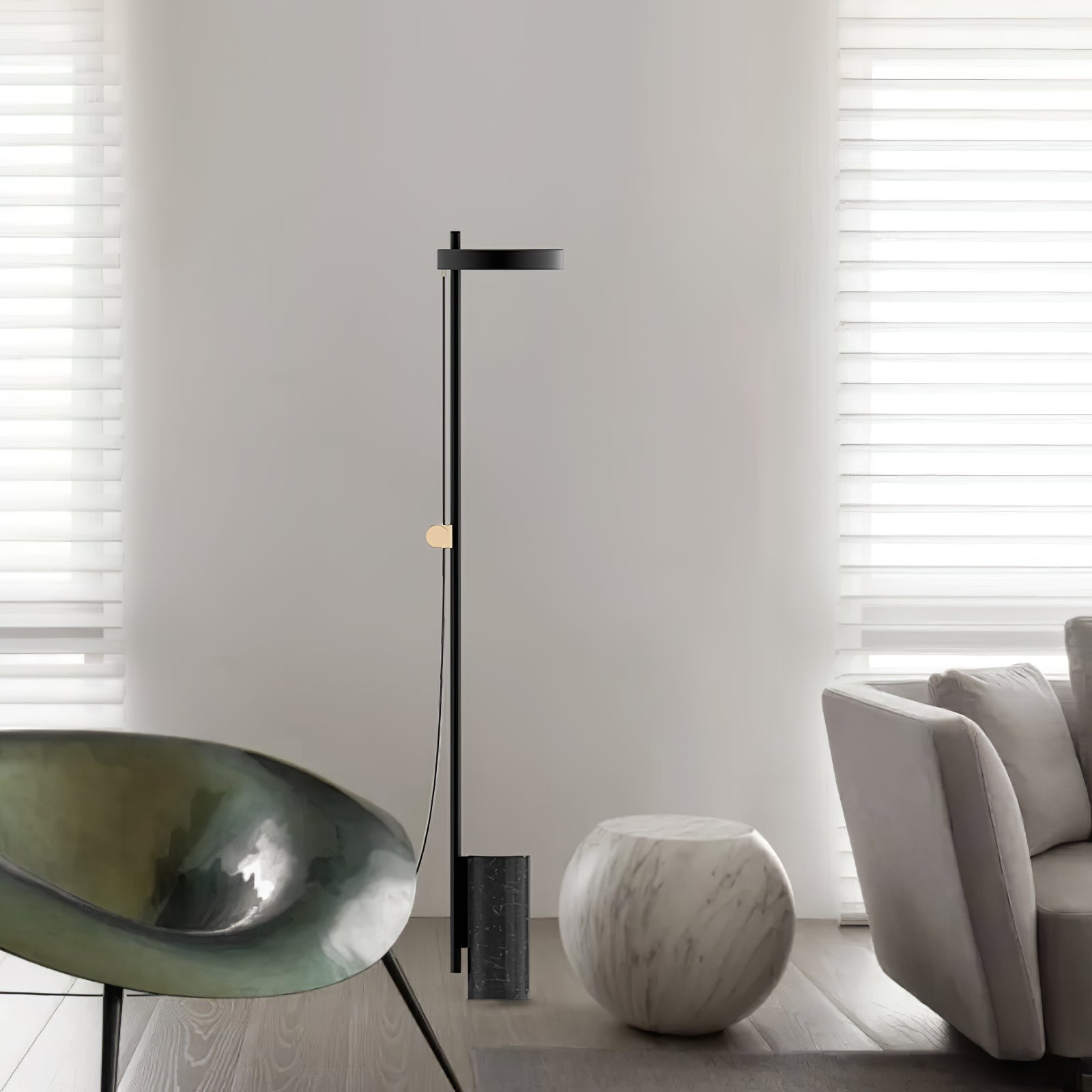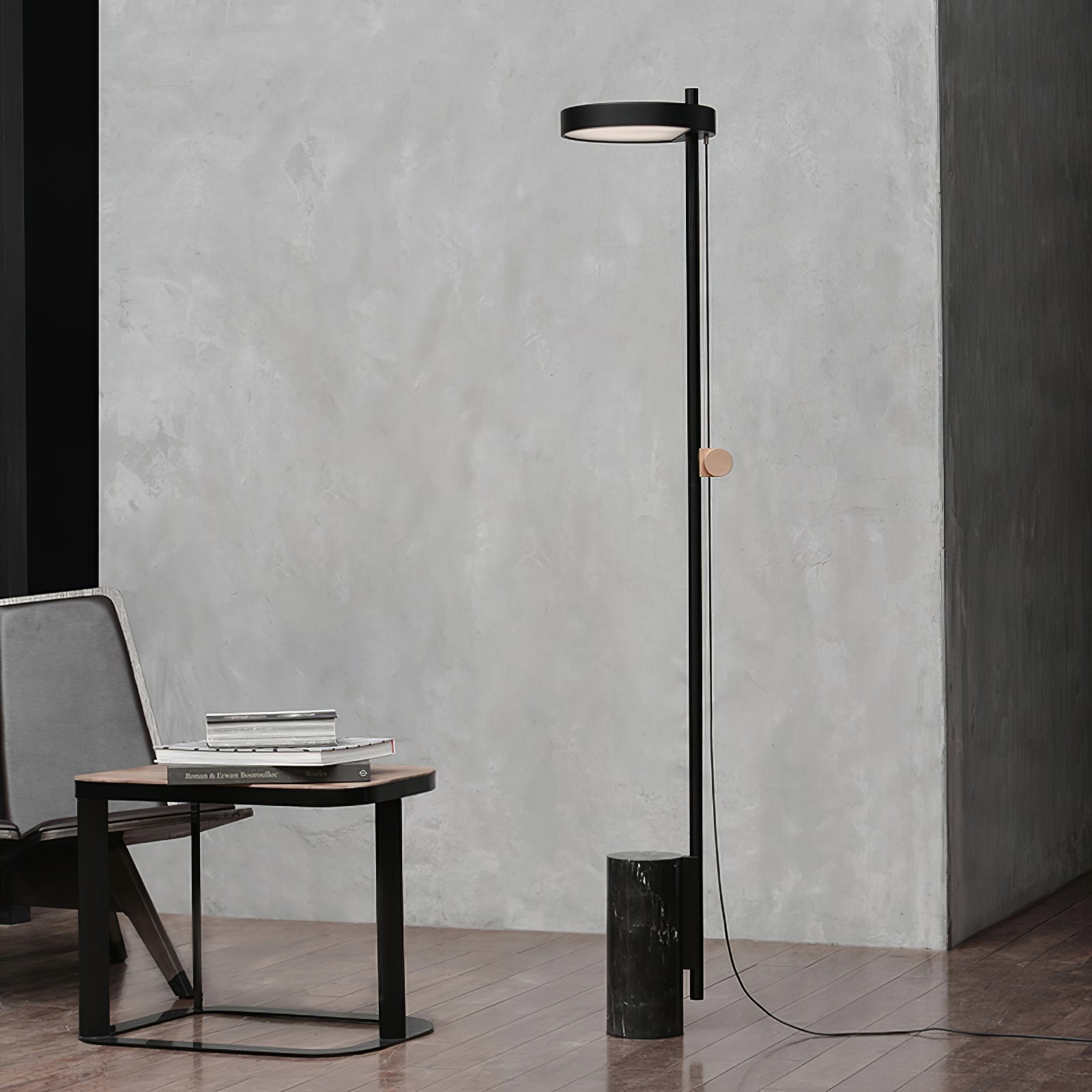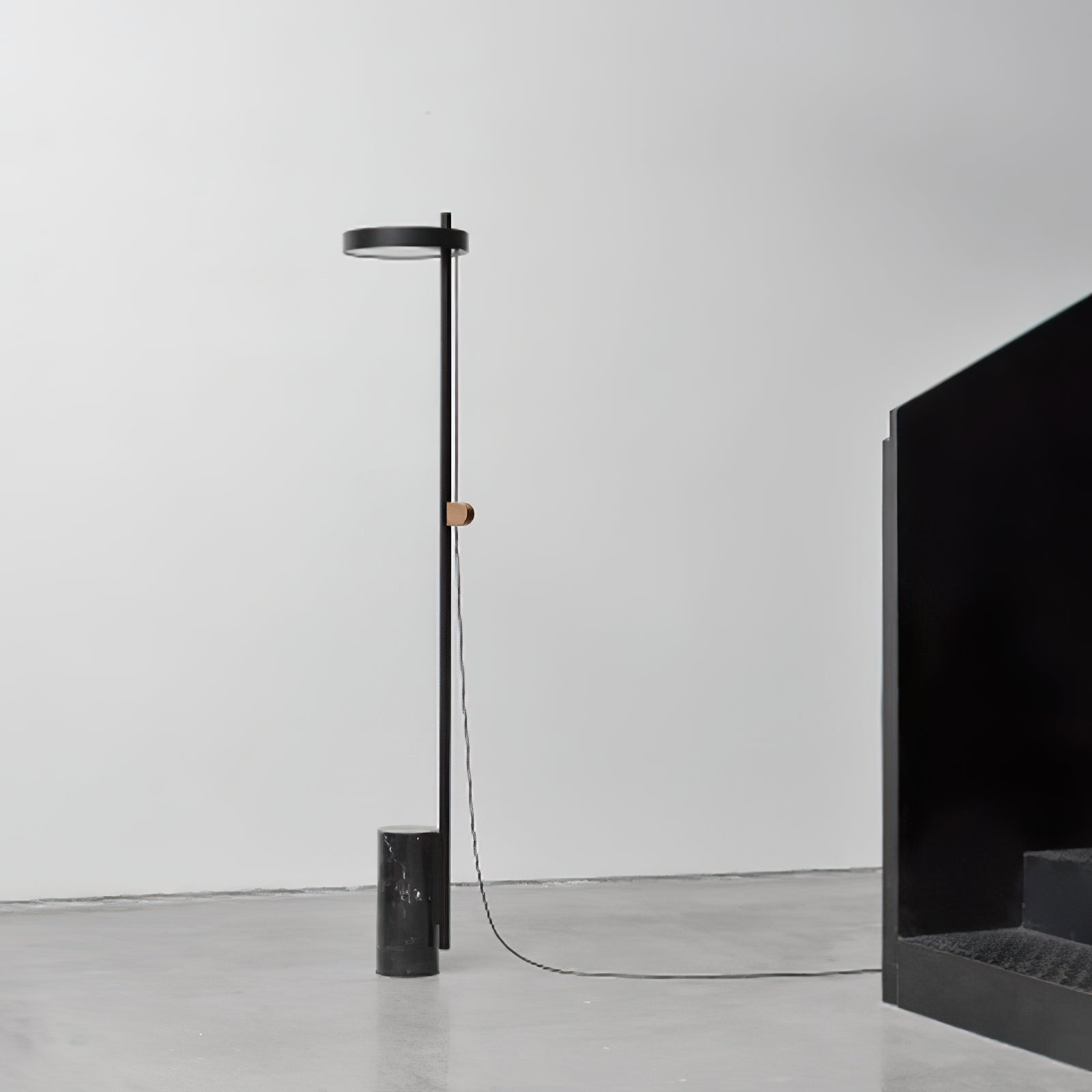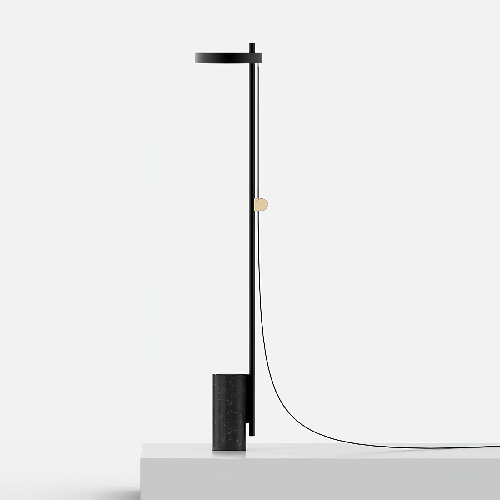 The cylinder base standing floor lamp is designed for a range of different domestic settings. Held in place by a cylindrical marble, thus allowing it to be used over dining tables, seating areas, or in other scenarios.