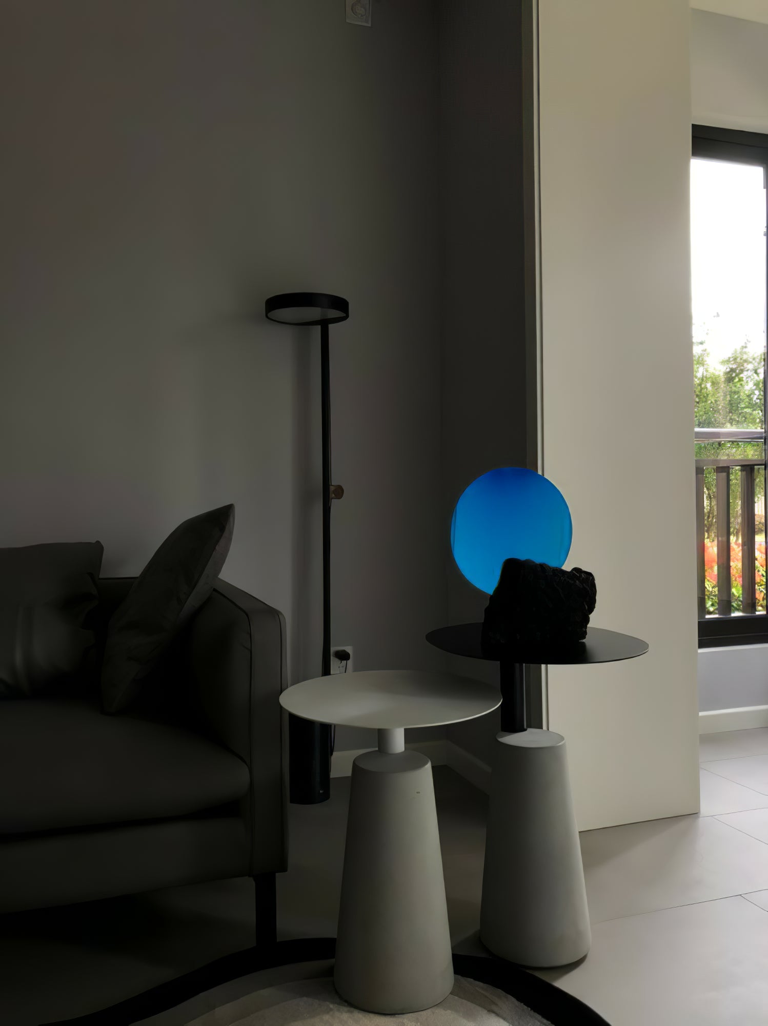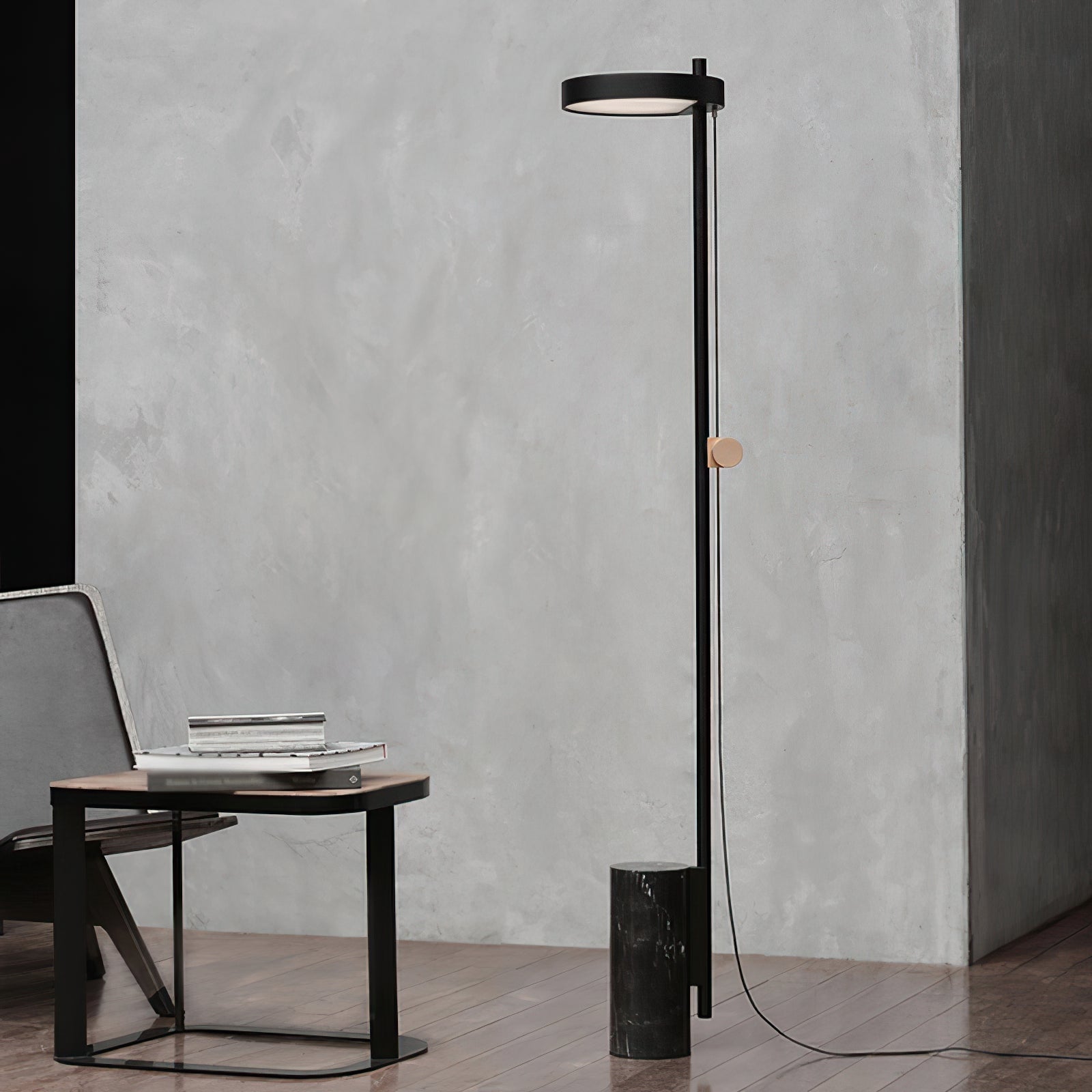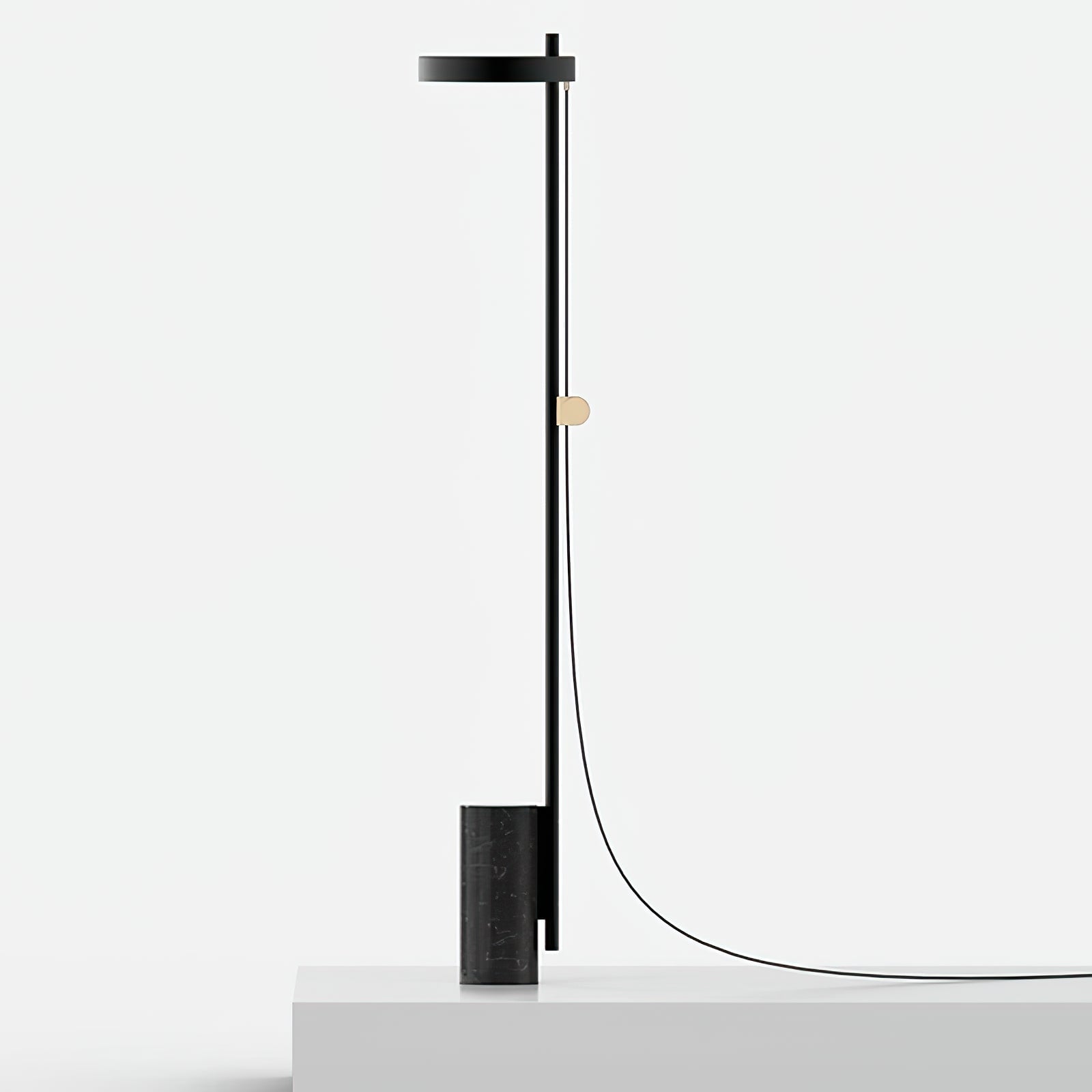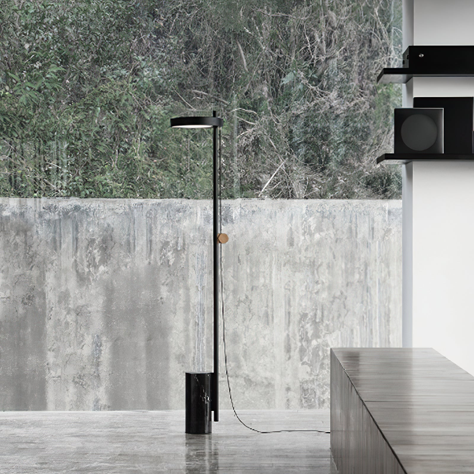 The cylinder base standing floor lamp is designed for a range of different domestic settings. Held in place by a cylindrical marble, thus allowing it to be used over dining tables, seating areas, or in other scenarios.