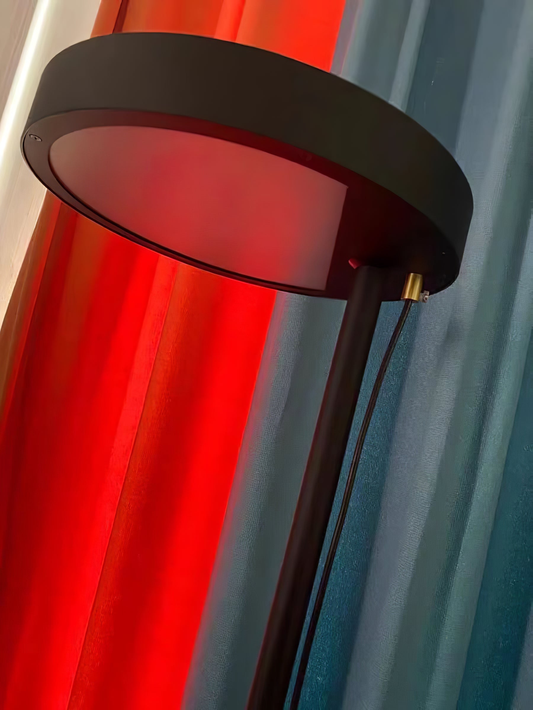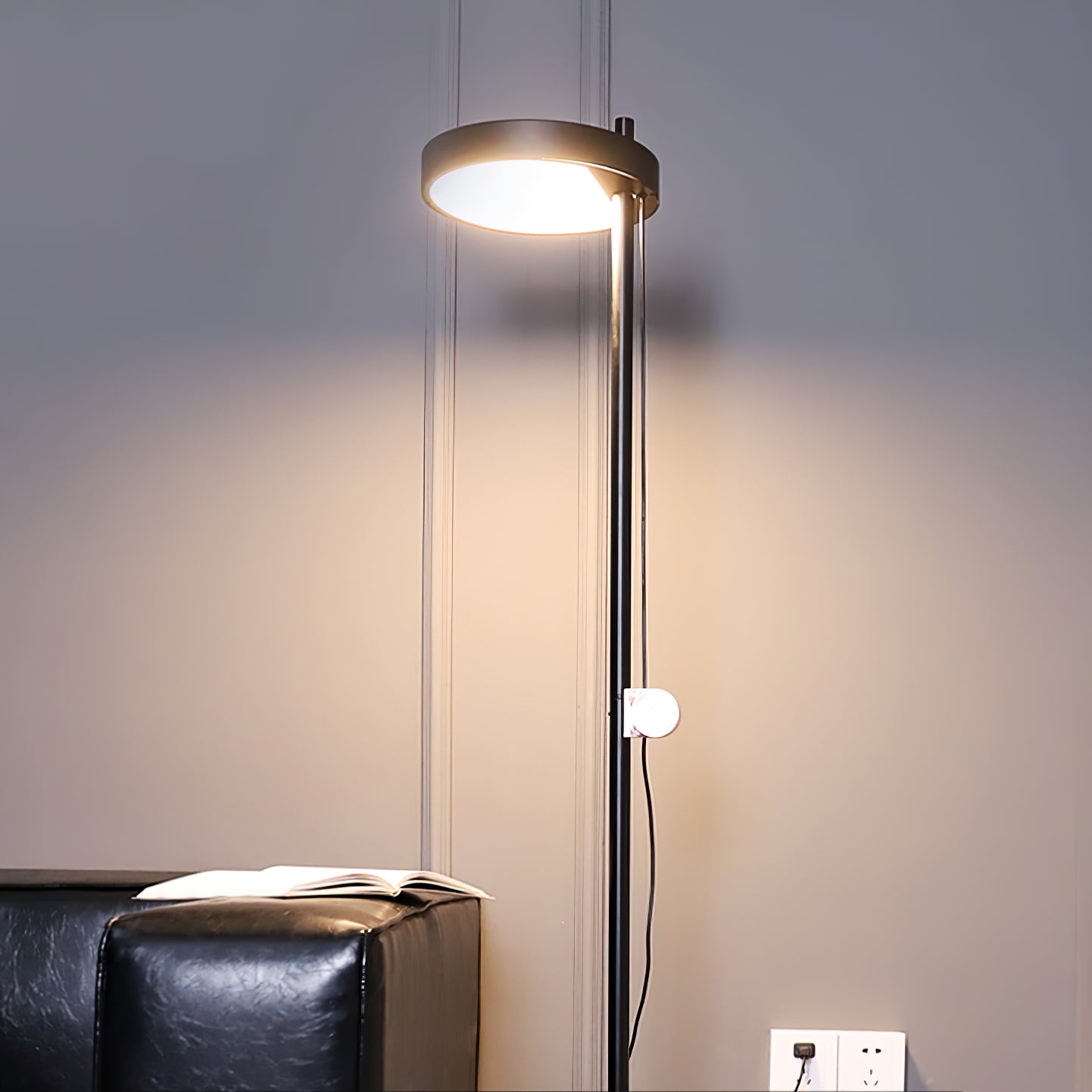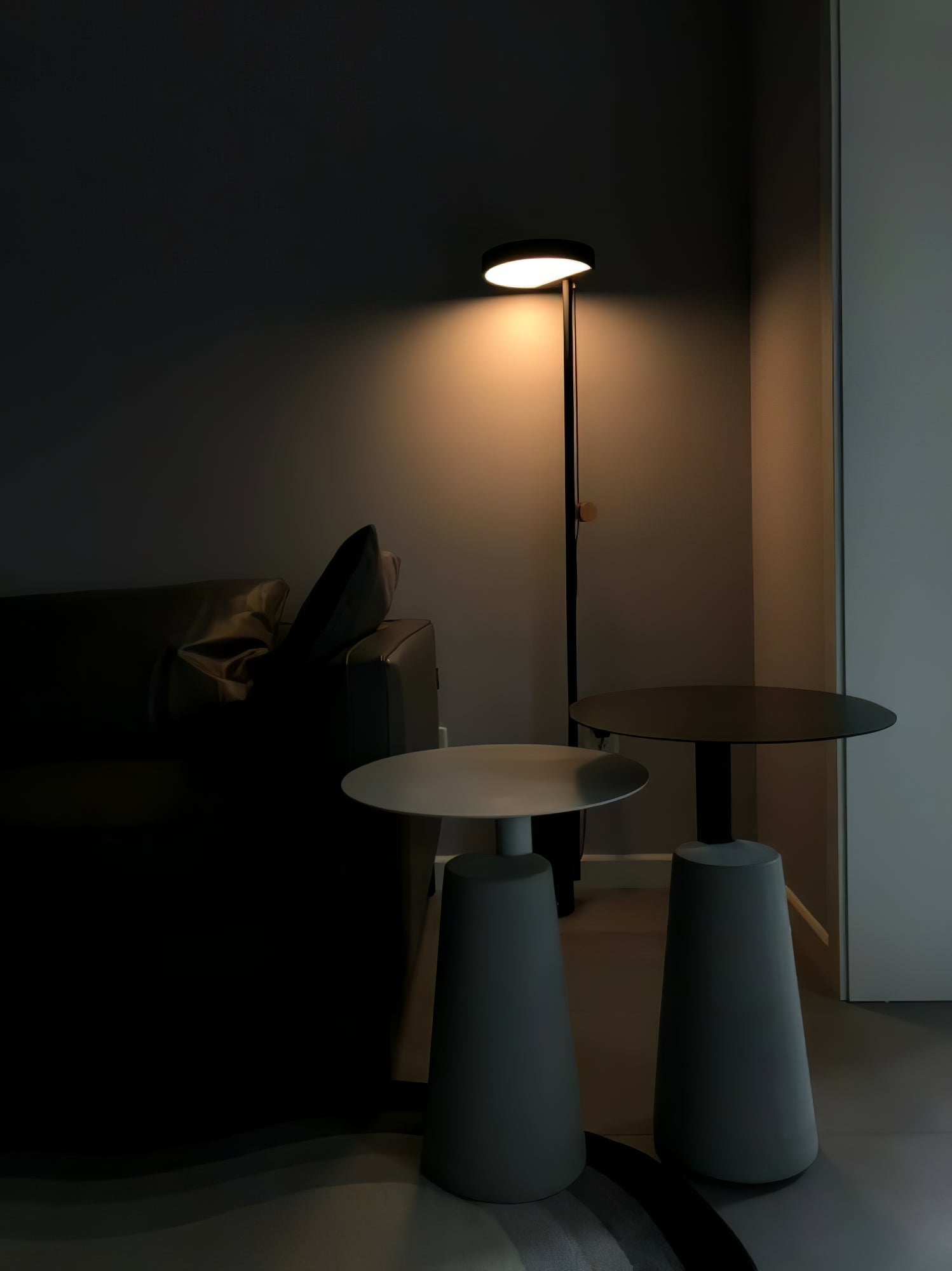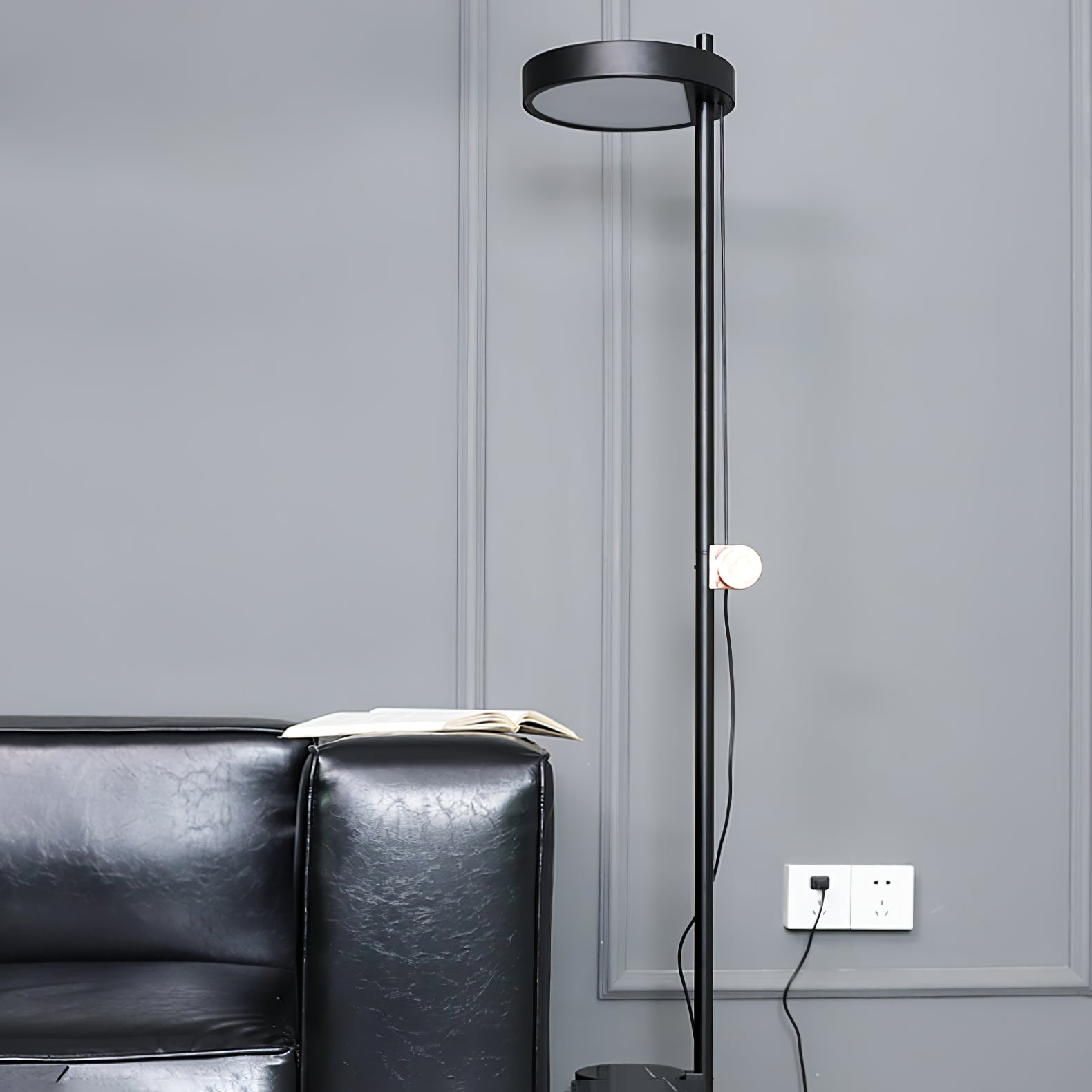 The cylinder base standing floor lamp is designed for a range of different domestic settings. Held in place by a cylindrical marble, thus allowing it to be used over dining tables, seating areas, or in other scenarios.