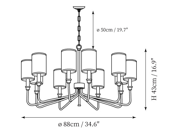 - 10Heads Size: Dia 88cm x H 43cm / ∅ 34.6″ x H 16.9″