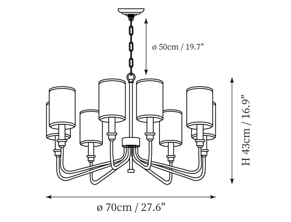 - 8Heads Size: Dia 70cm x H 43cm / ∅ 27.6″ x H 16.9″