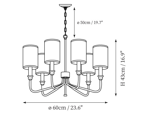 - 6Heads Size: Dia 60cm x H 43cm / ∅ 23.6″ x H 16.9″