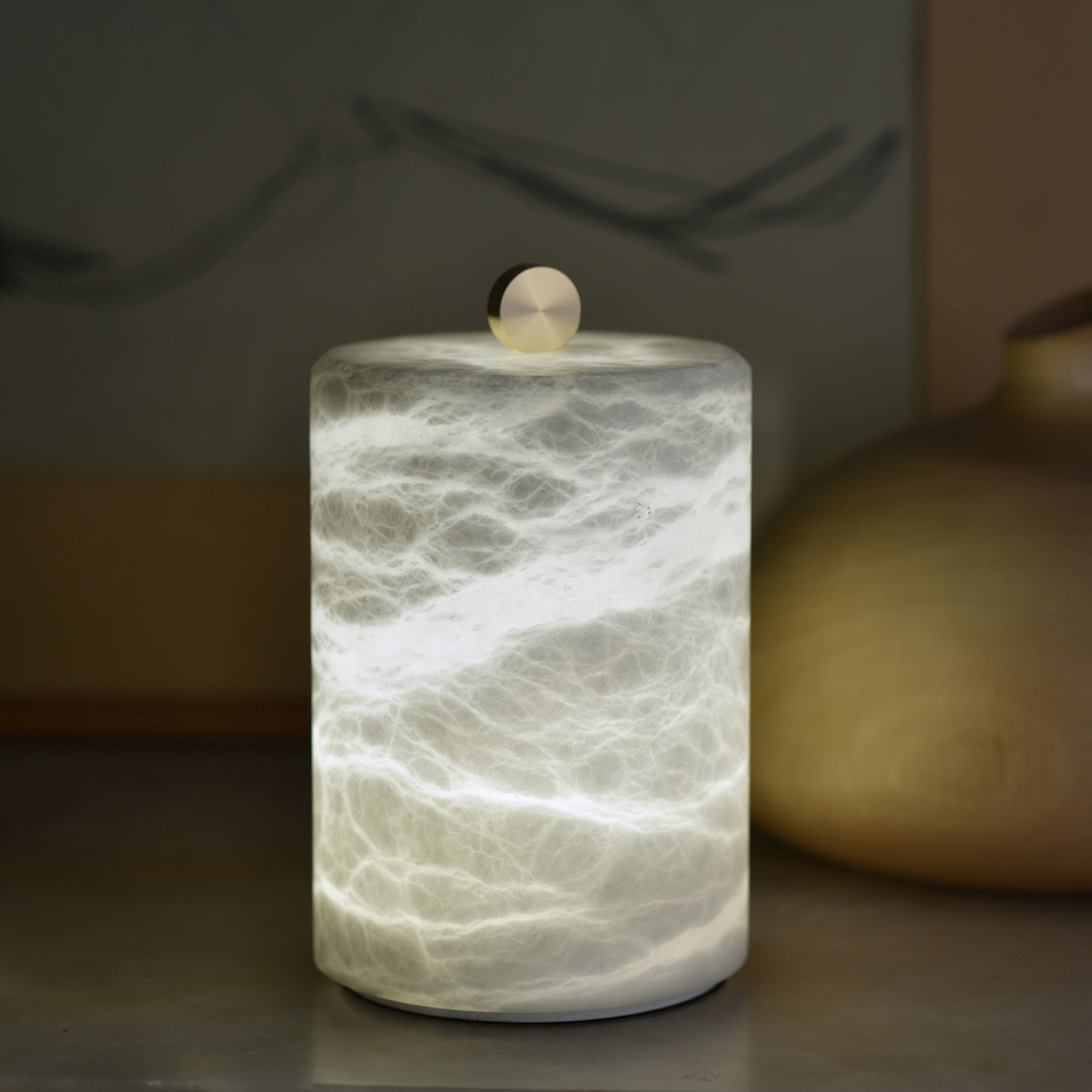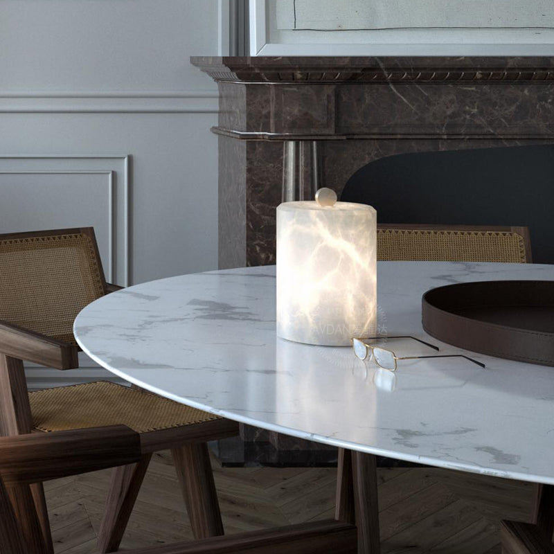 Cylindrical Alabaster Table Lamp