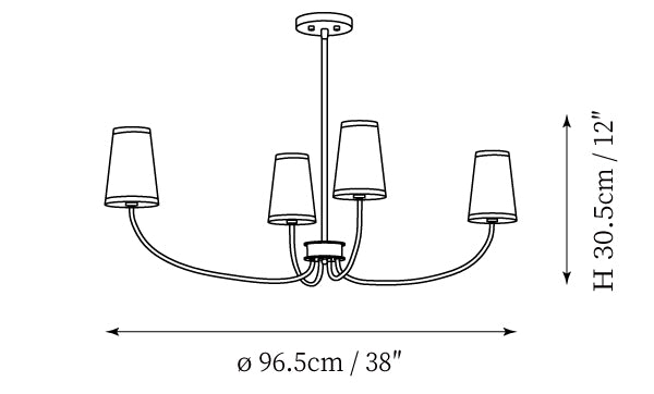 - 4-Lights Size: Dia 96.5cm x H 30.5cm / ∅38″ x H 12″
